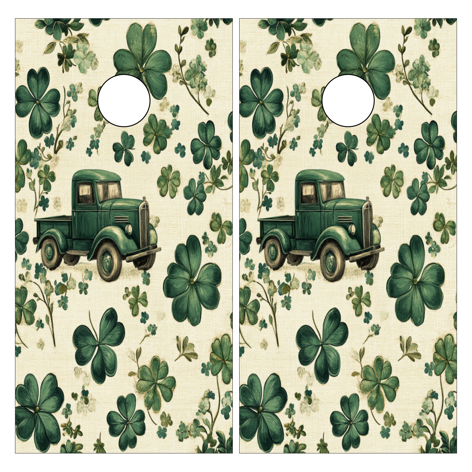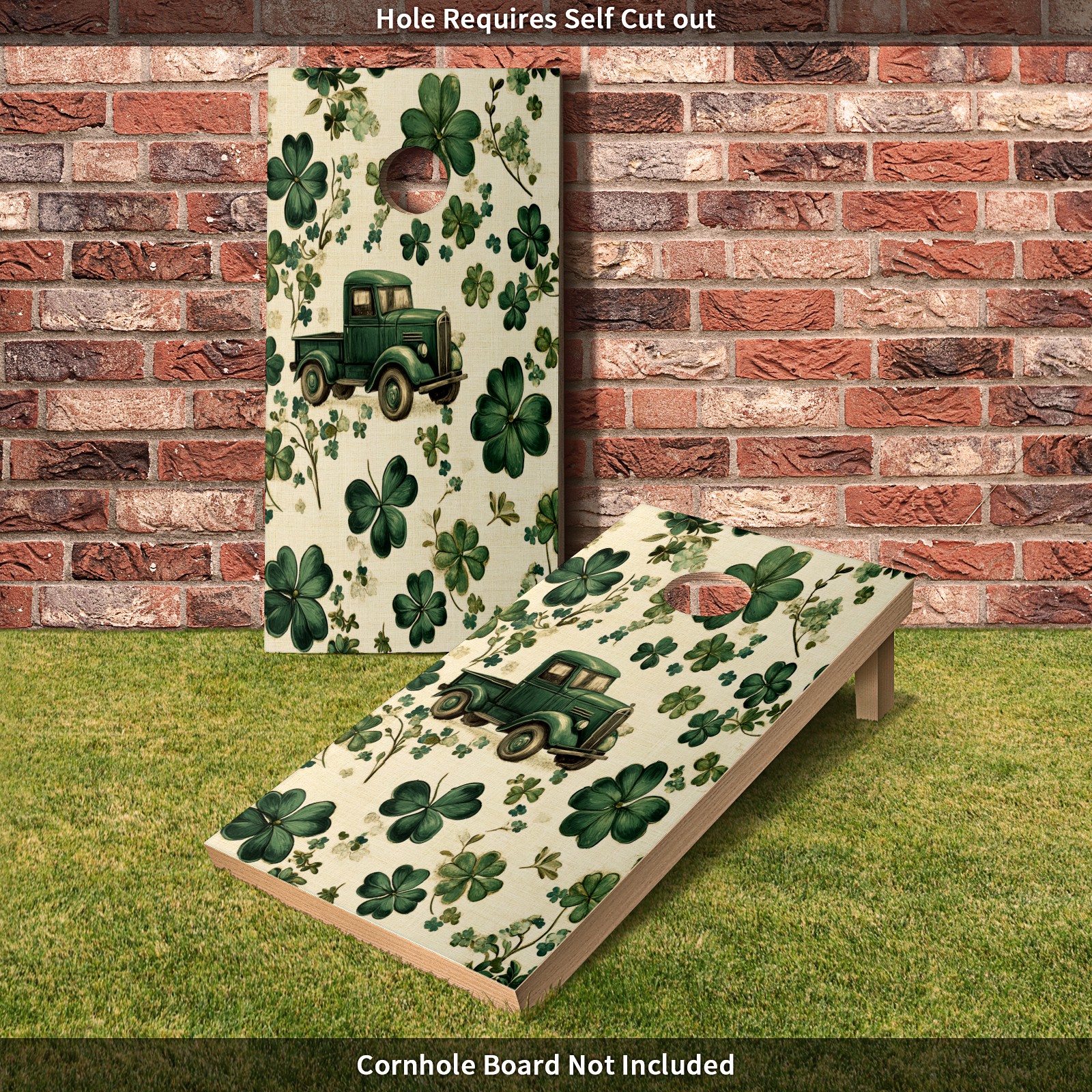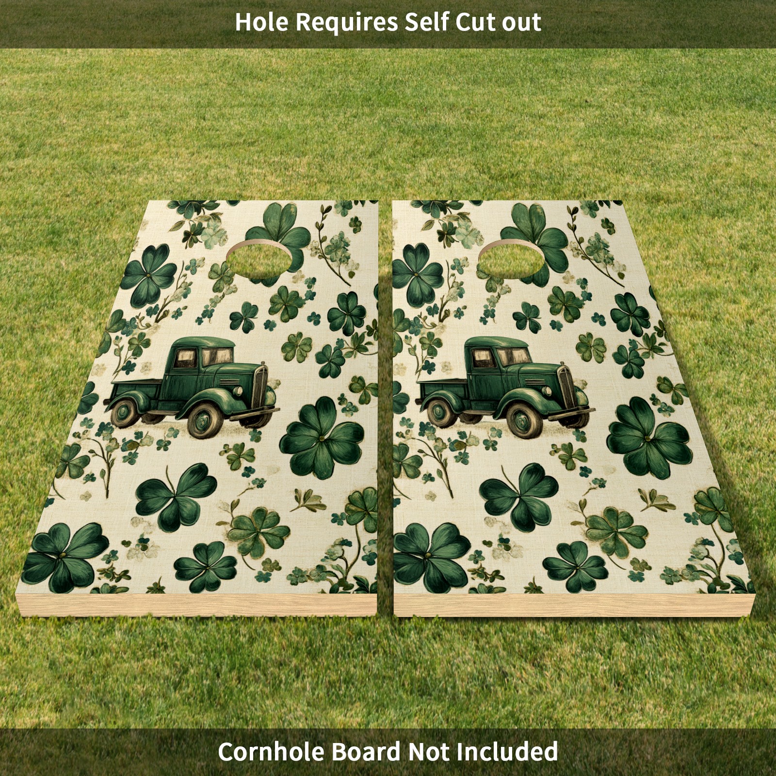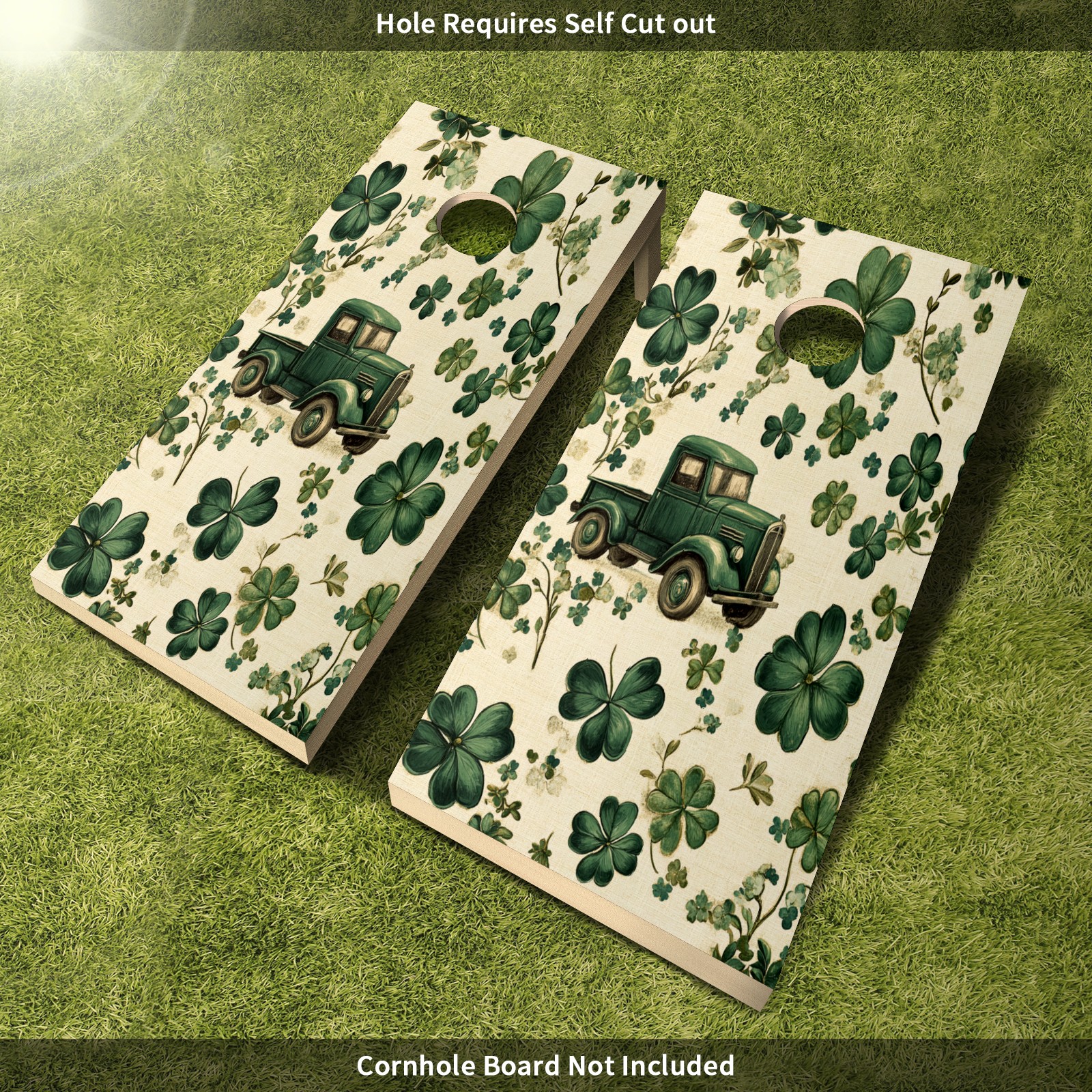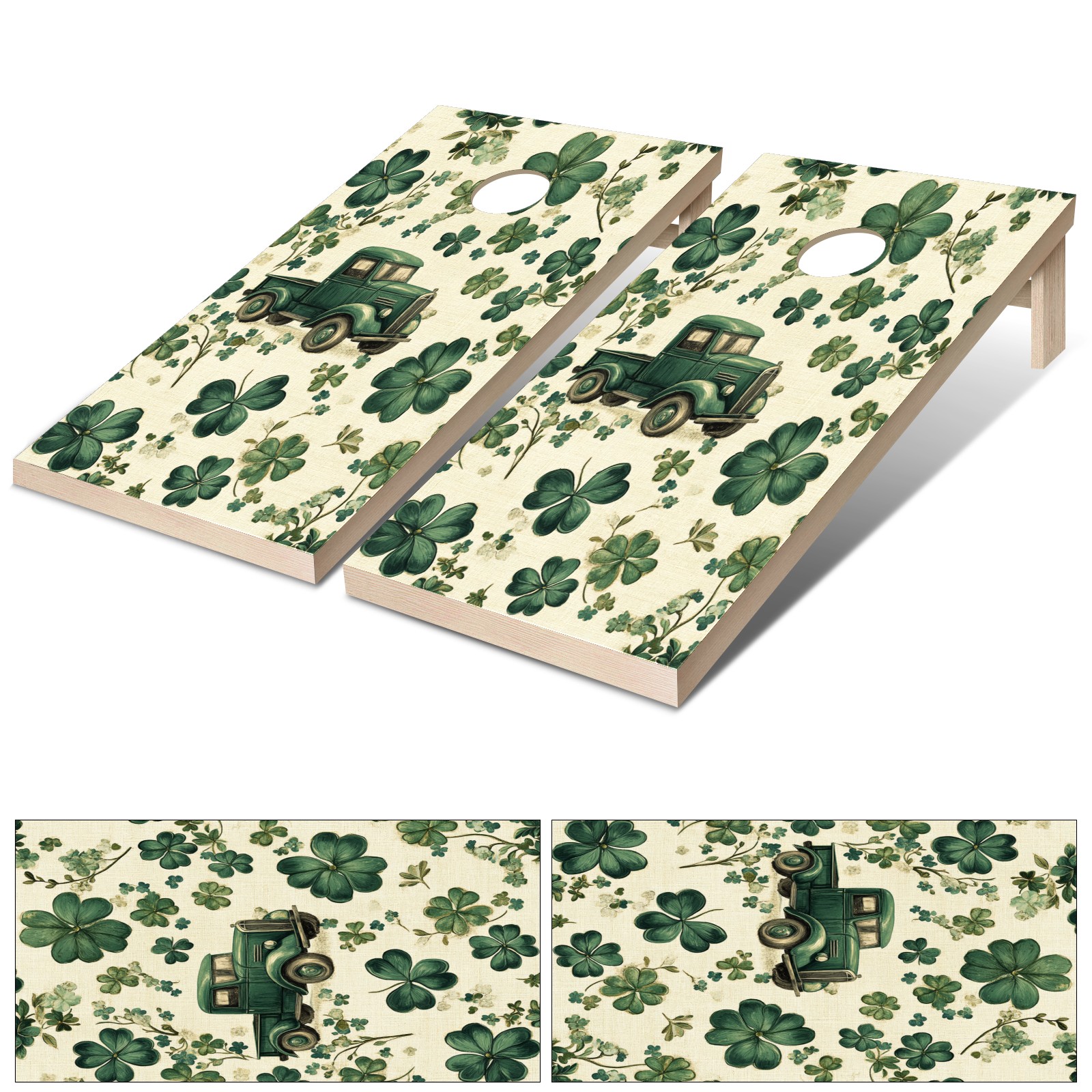 Portable 4x2 Cornhole Set with Two-piece Pack Boards - Cornhole Game Sticker Included - Yard Travel Outdoor Toss Board for Adults Outside Activities Green Truck Clover Pattern
