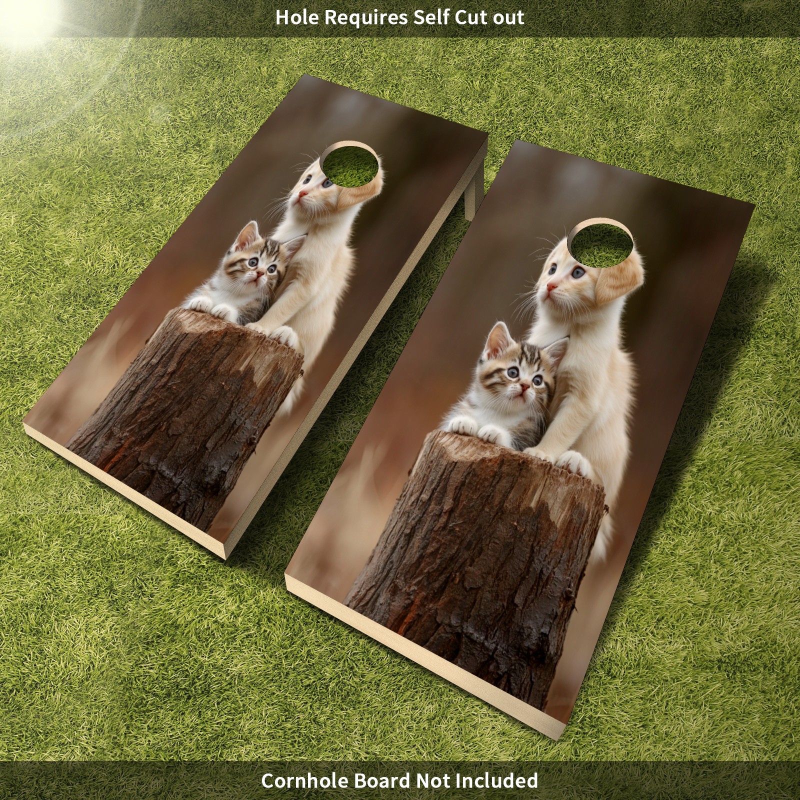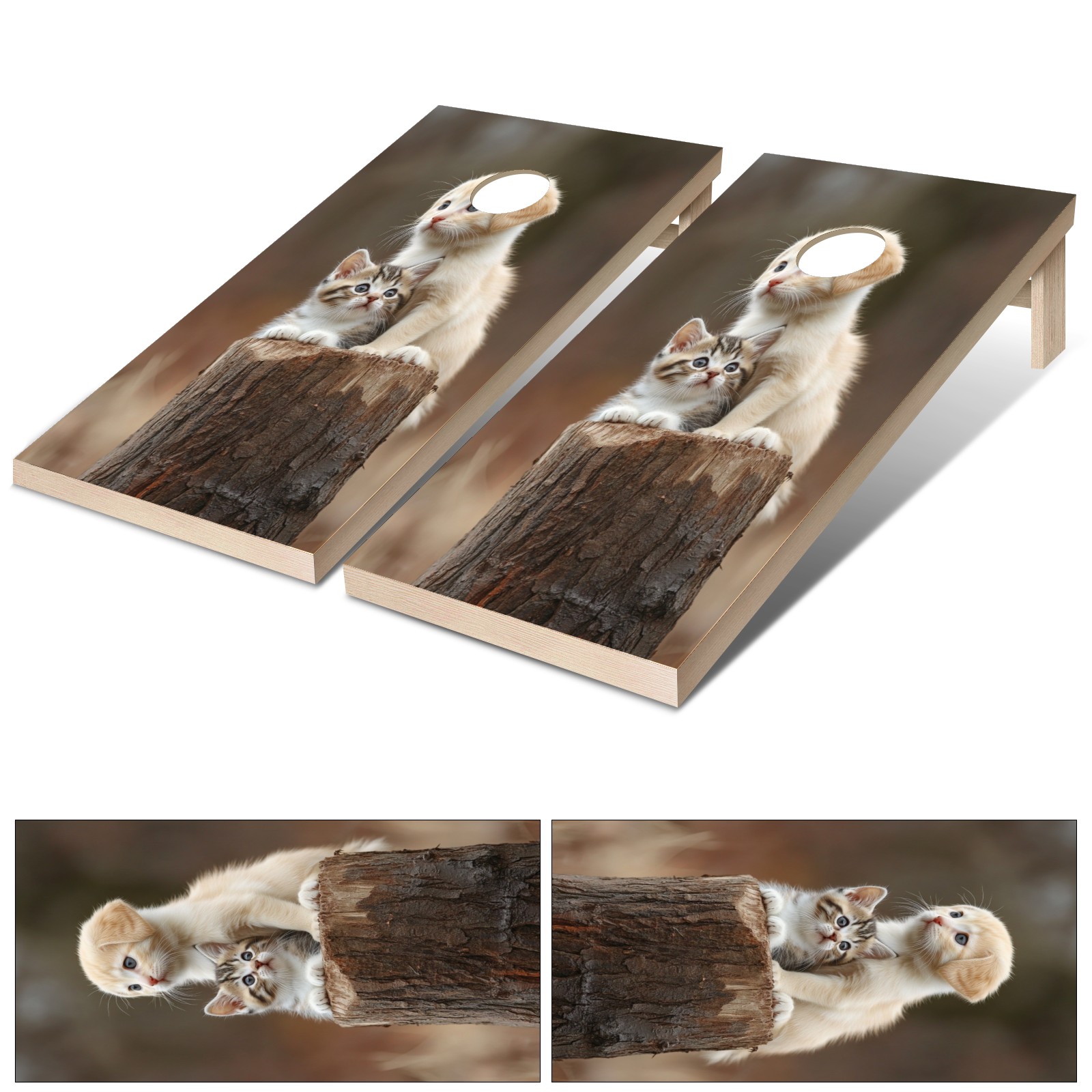 Portable 4x2 Cornhole Set with Two-piece Pack Boards - Cornhole Game Sticker Included - Yard Travel Outdoor Toss Board for Adults Outside Activities Tree Stump Animal Pattern