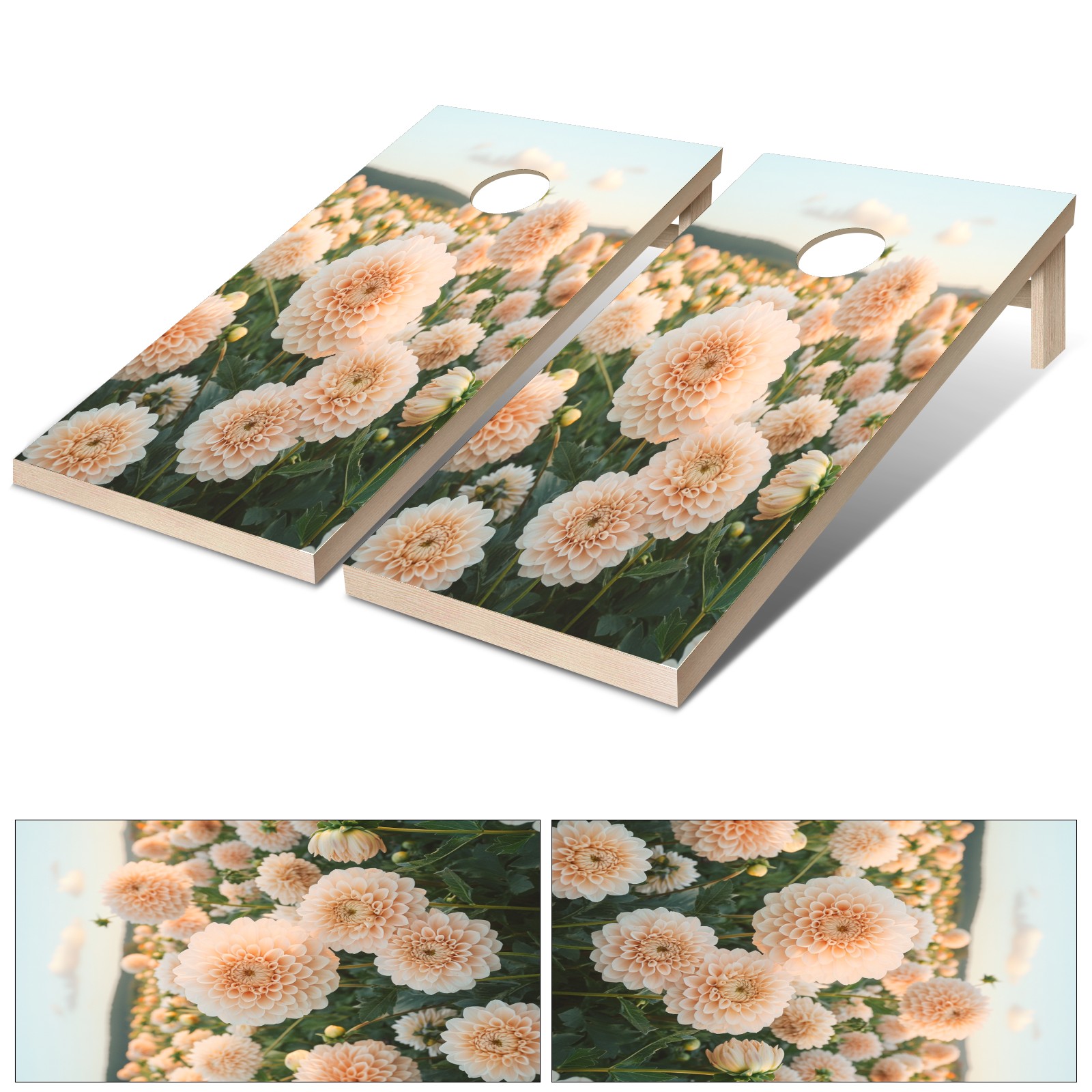 Portable 4x2 Cornhole Set with Two-piece Pack Boards - Cornhole Game Sticker Included - Yard Travel Outdoor Toss Board for Adults Outside Activities Pink Chrysanthemum Pattern