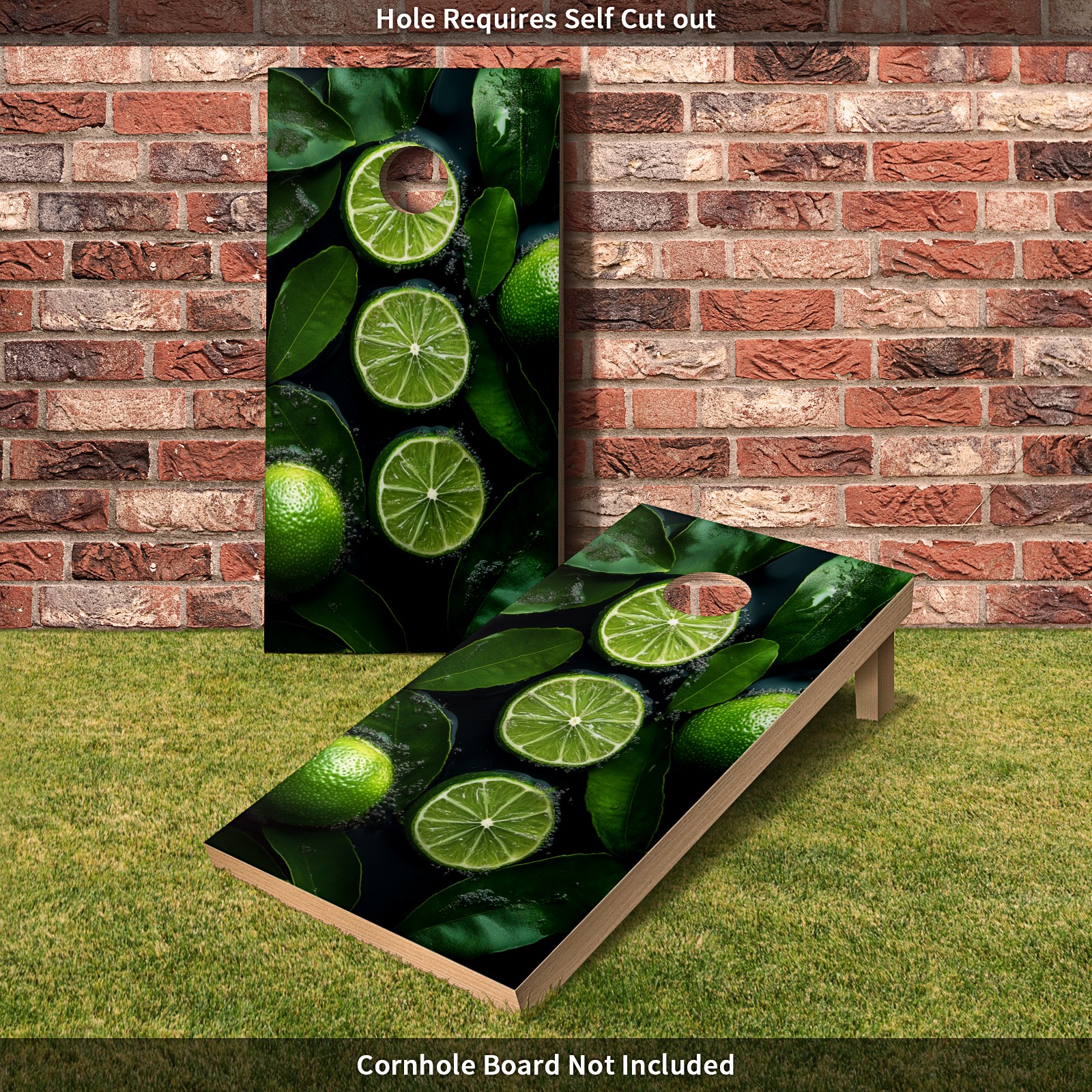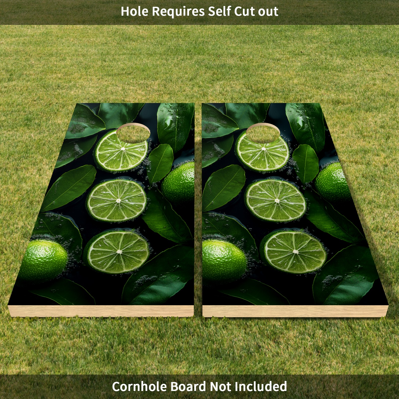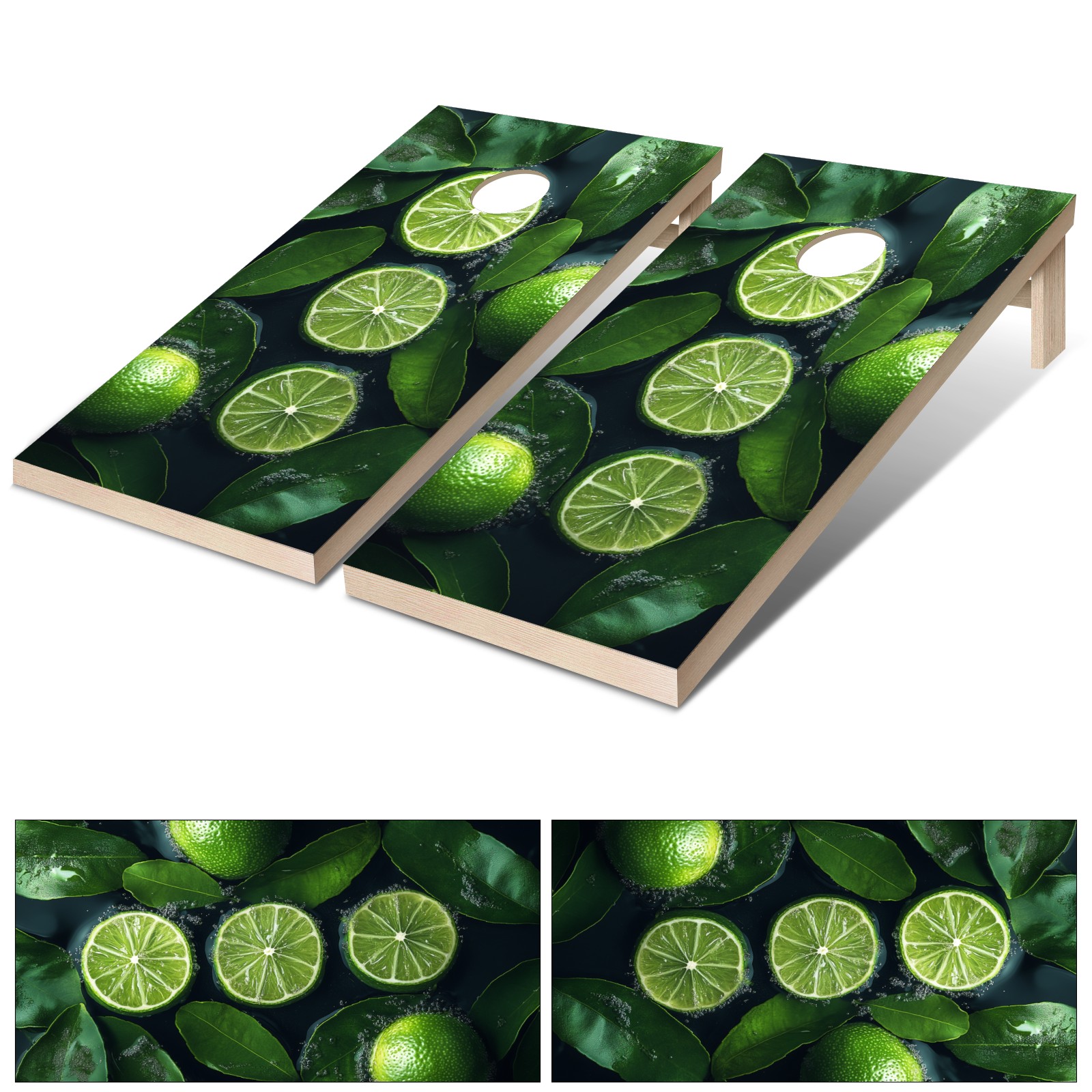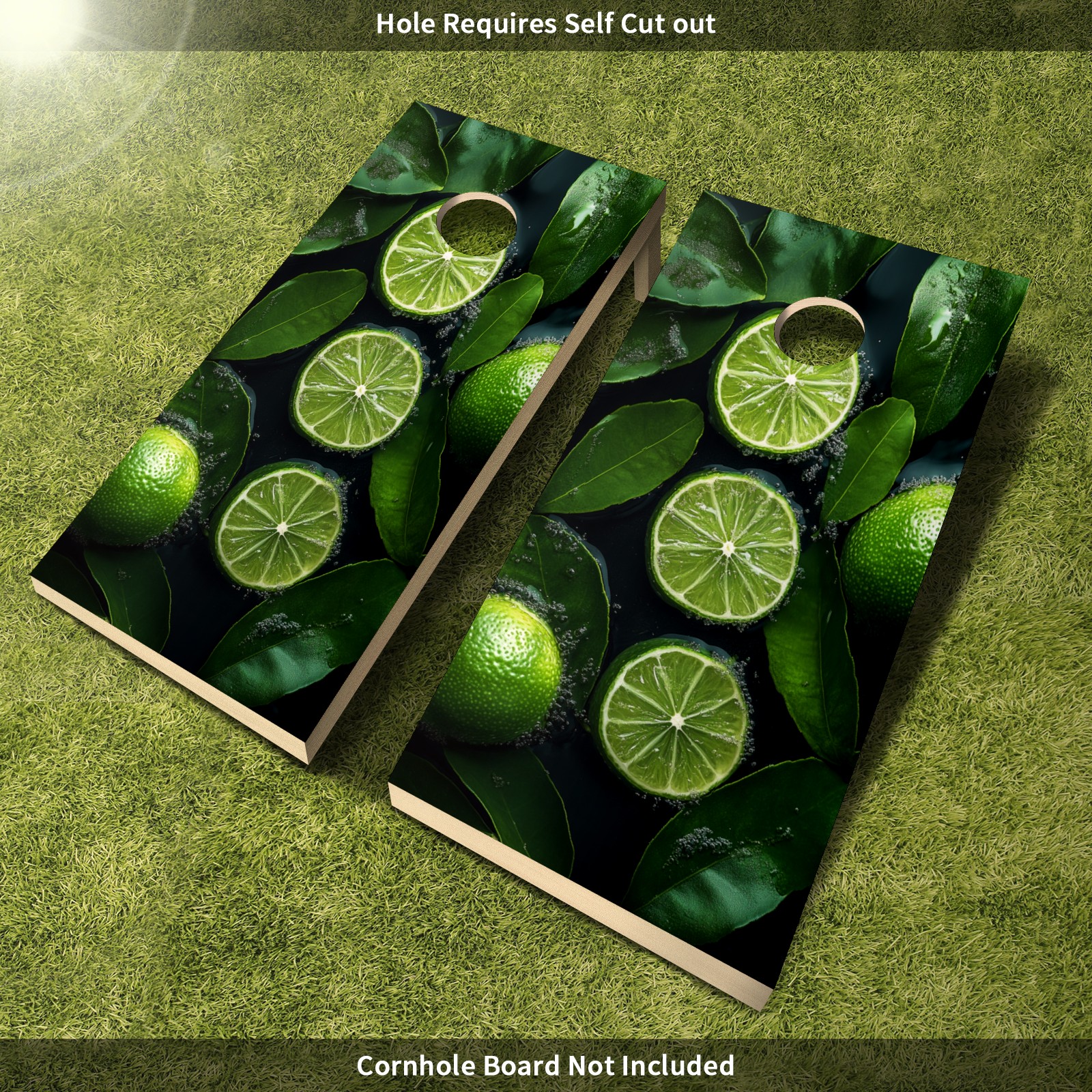 Portable 4x2 Cornhole Set with Two-piece Pack Boards - Cornhole Game Sticker Included - Yard Travel Outdoor Toss Board for Adults Outside Activities Green Lemon Slices Pattern