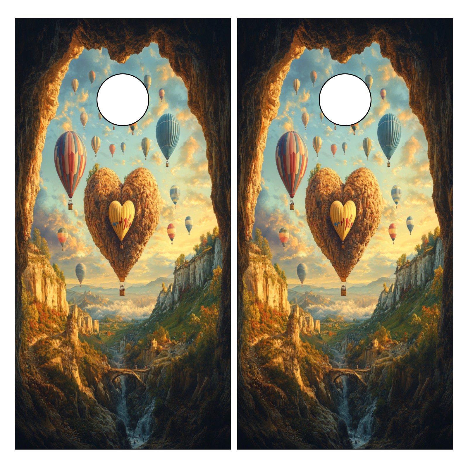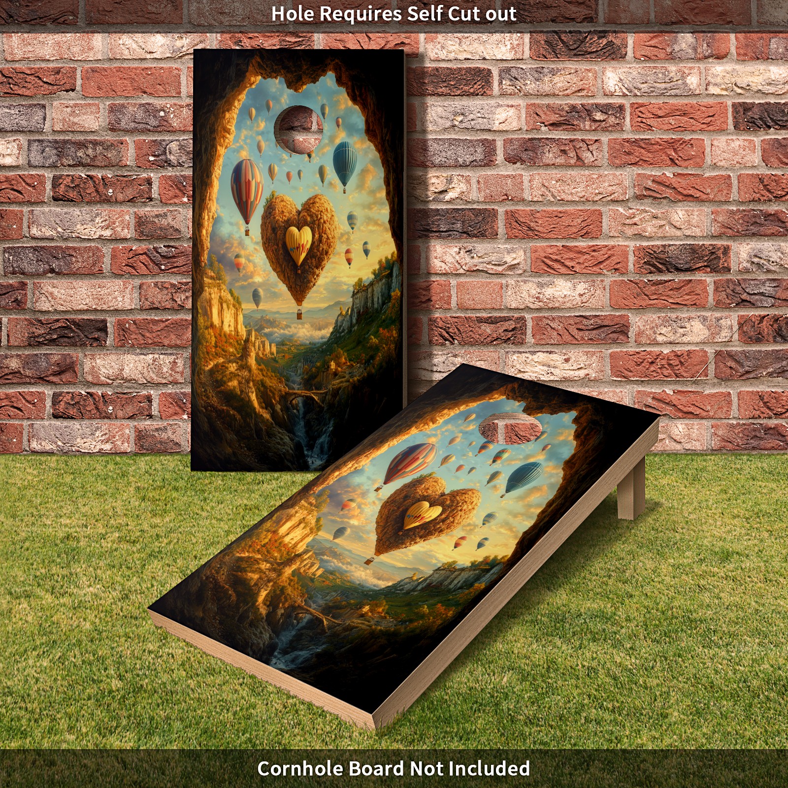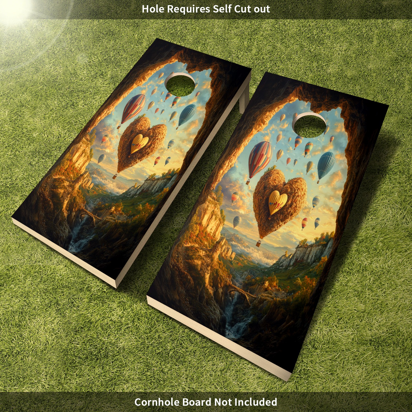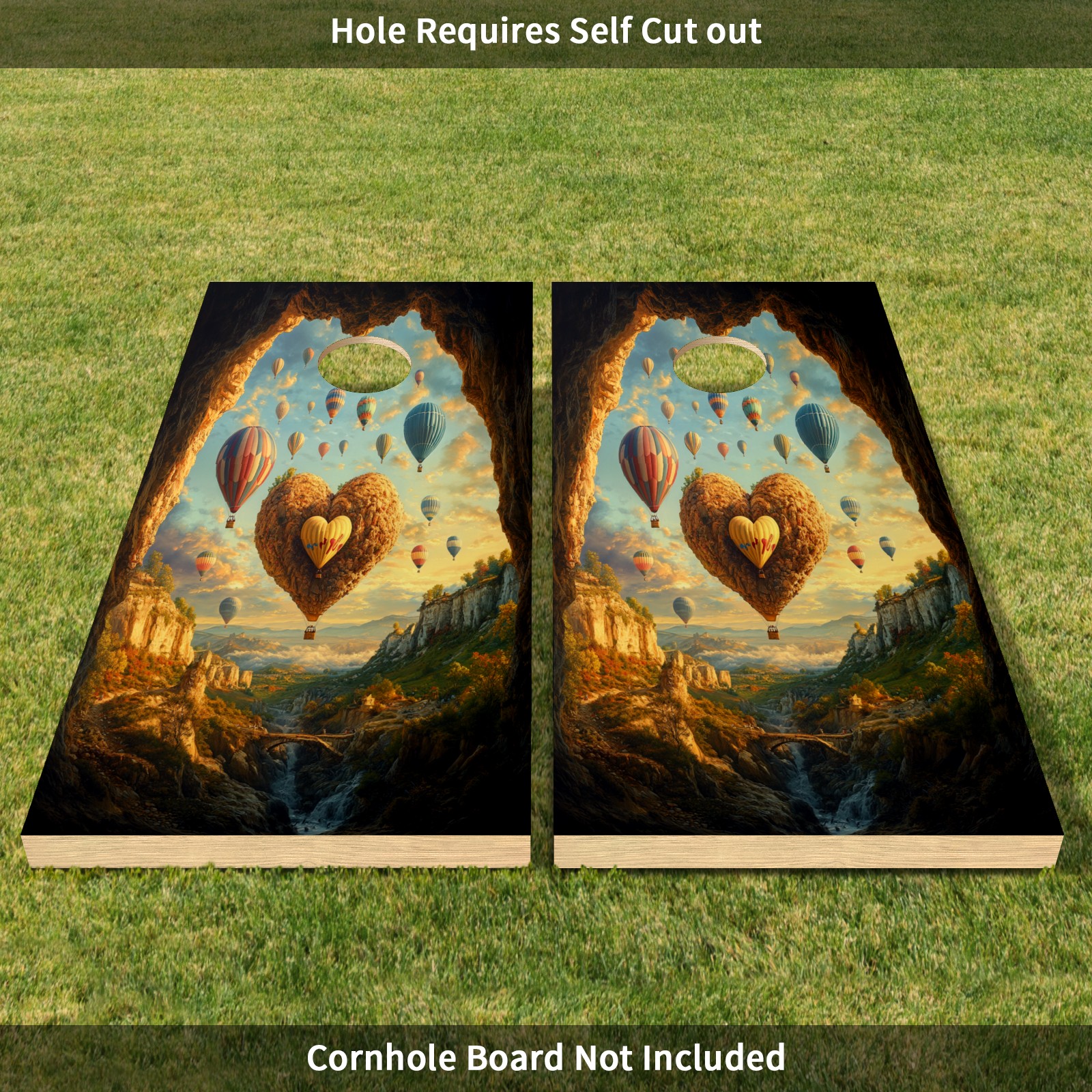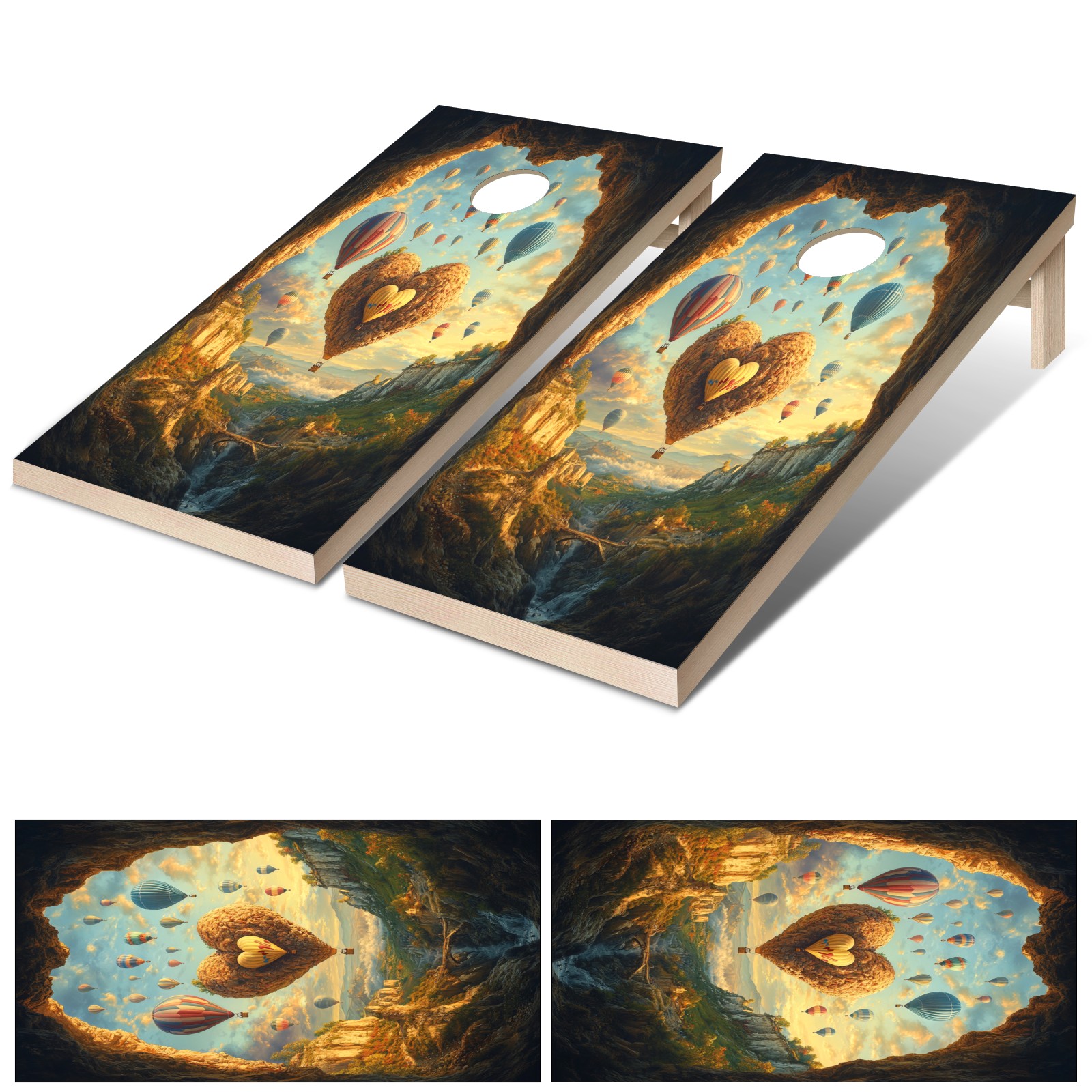 Portable 4x2 Cornhole Set with Two-piece Pack Boards - Cornhole Game Sticker Included - Yard Travel Outdoor Toss Board for Adults Outside Activities Hot Air Balloons Pattern