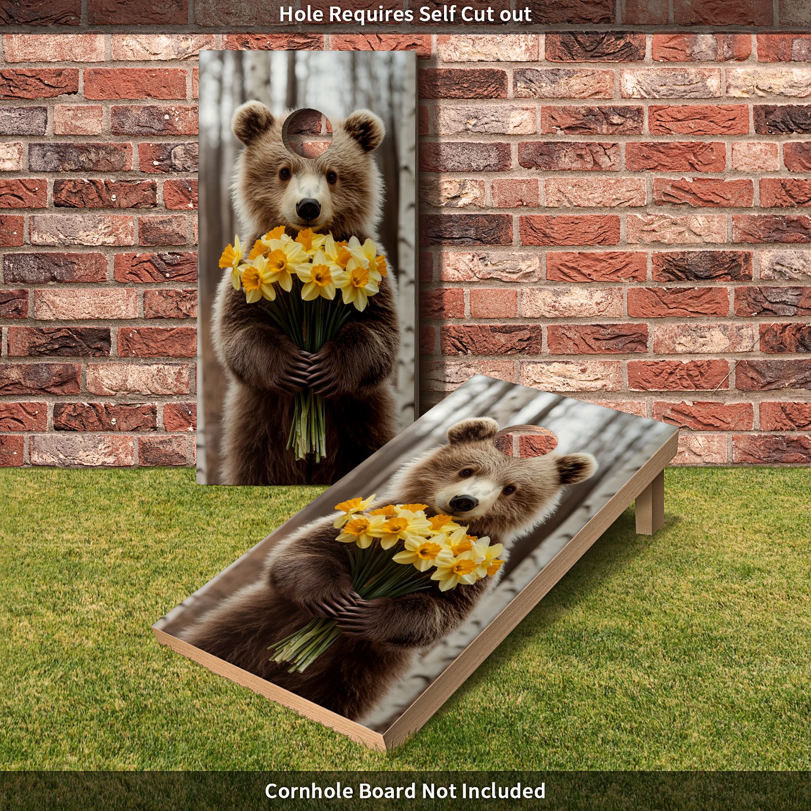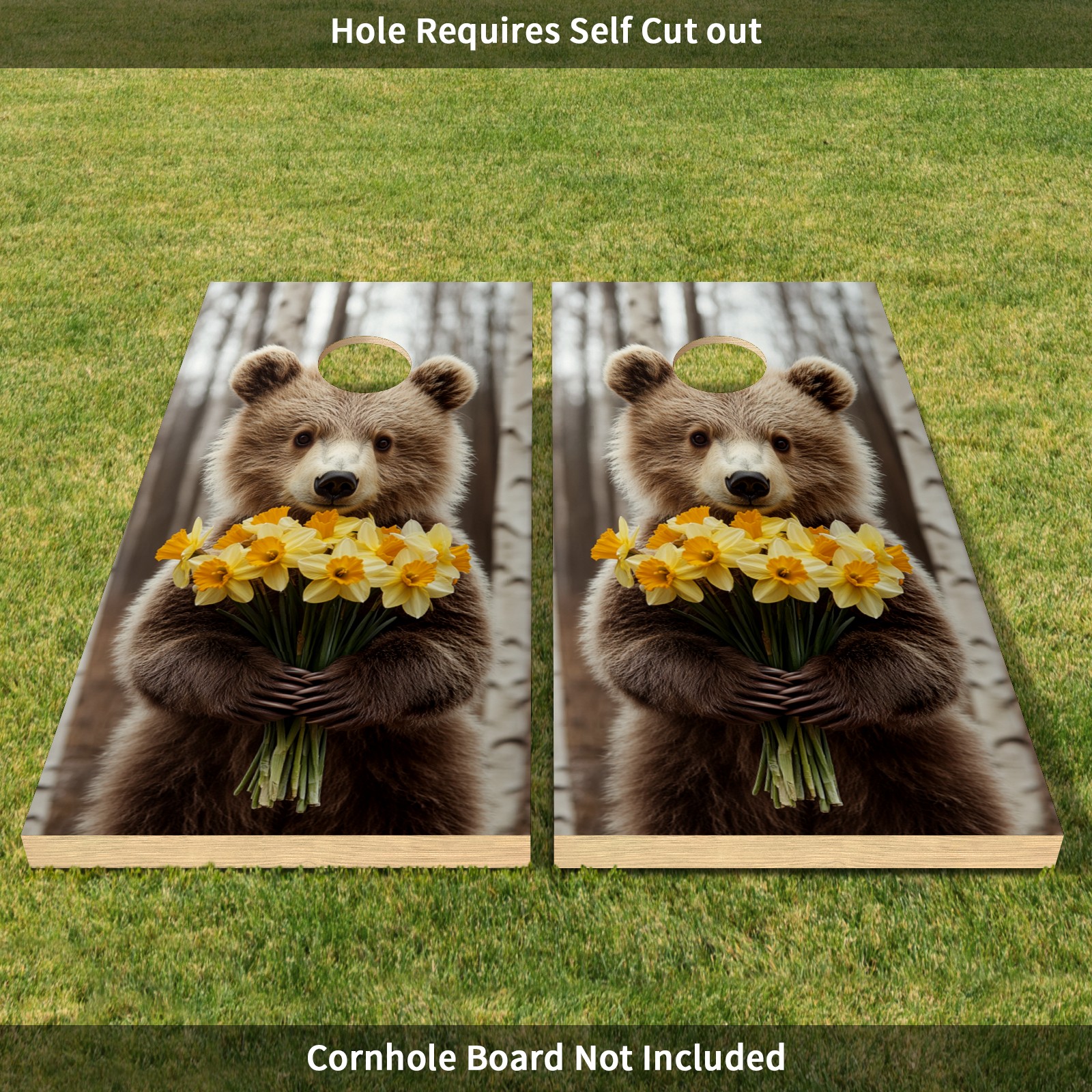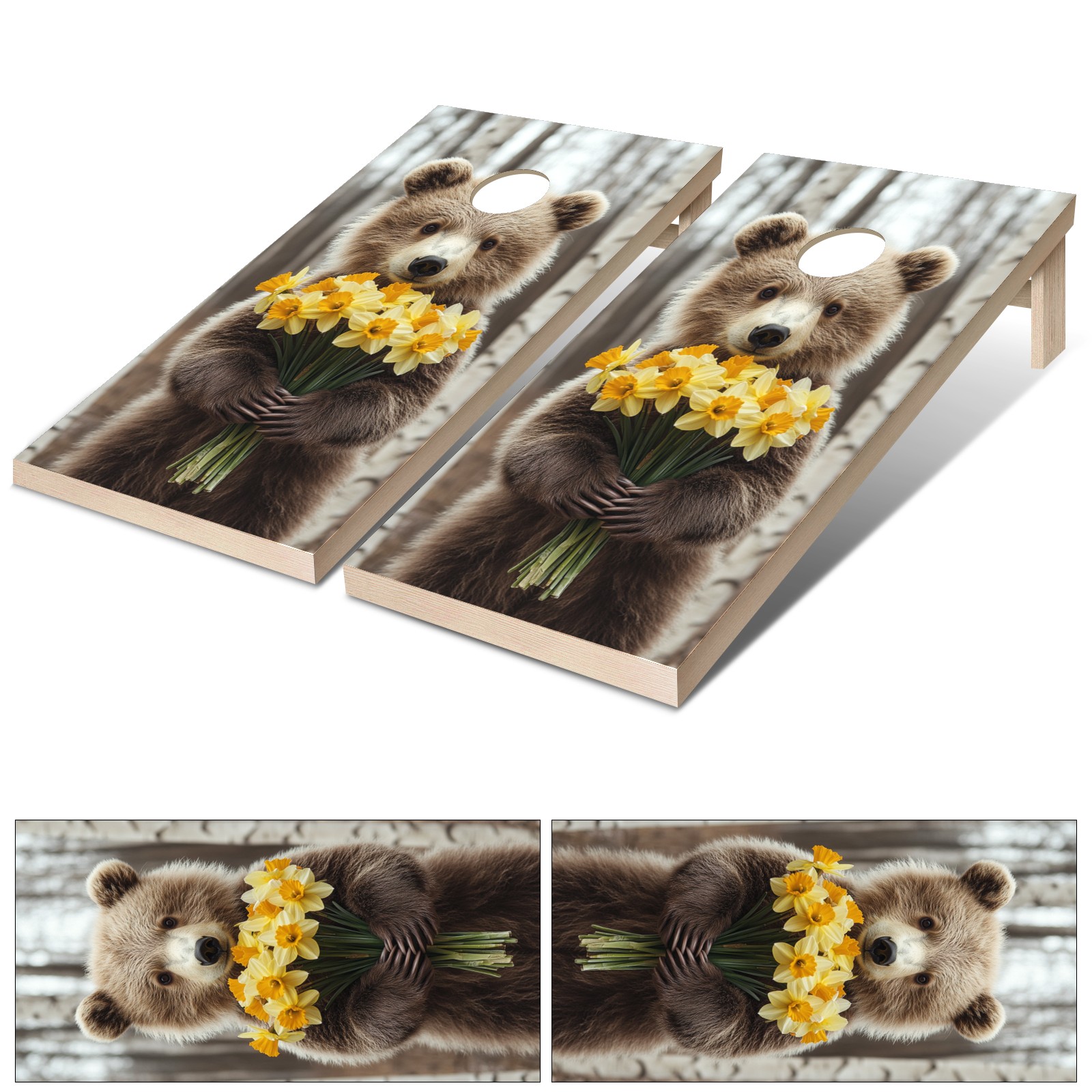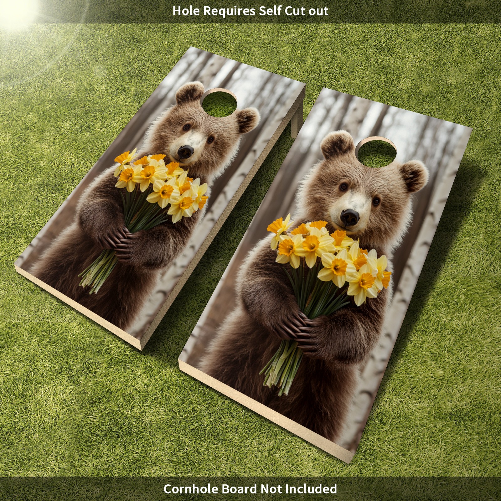 Portable 4x2 Cornhole Set with Two-piece Pack Boards - Cornhole Game Sticker Included - Yard Travel Outdoor Toss Board for Adults Outside Activities Cute Bear Flower Pattern