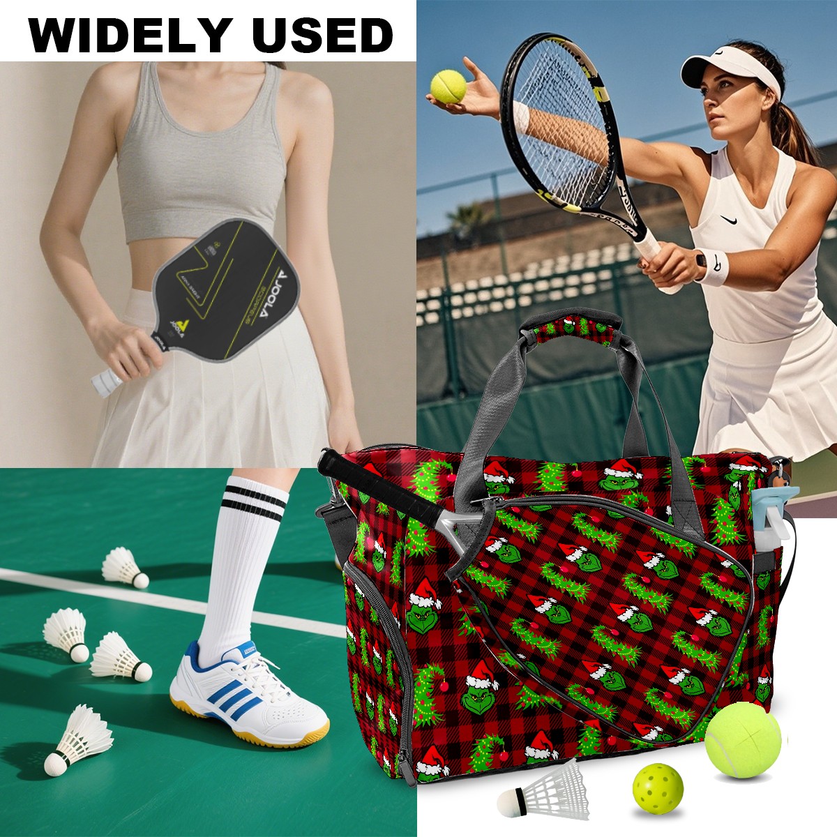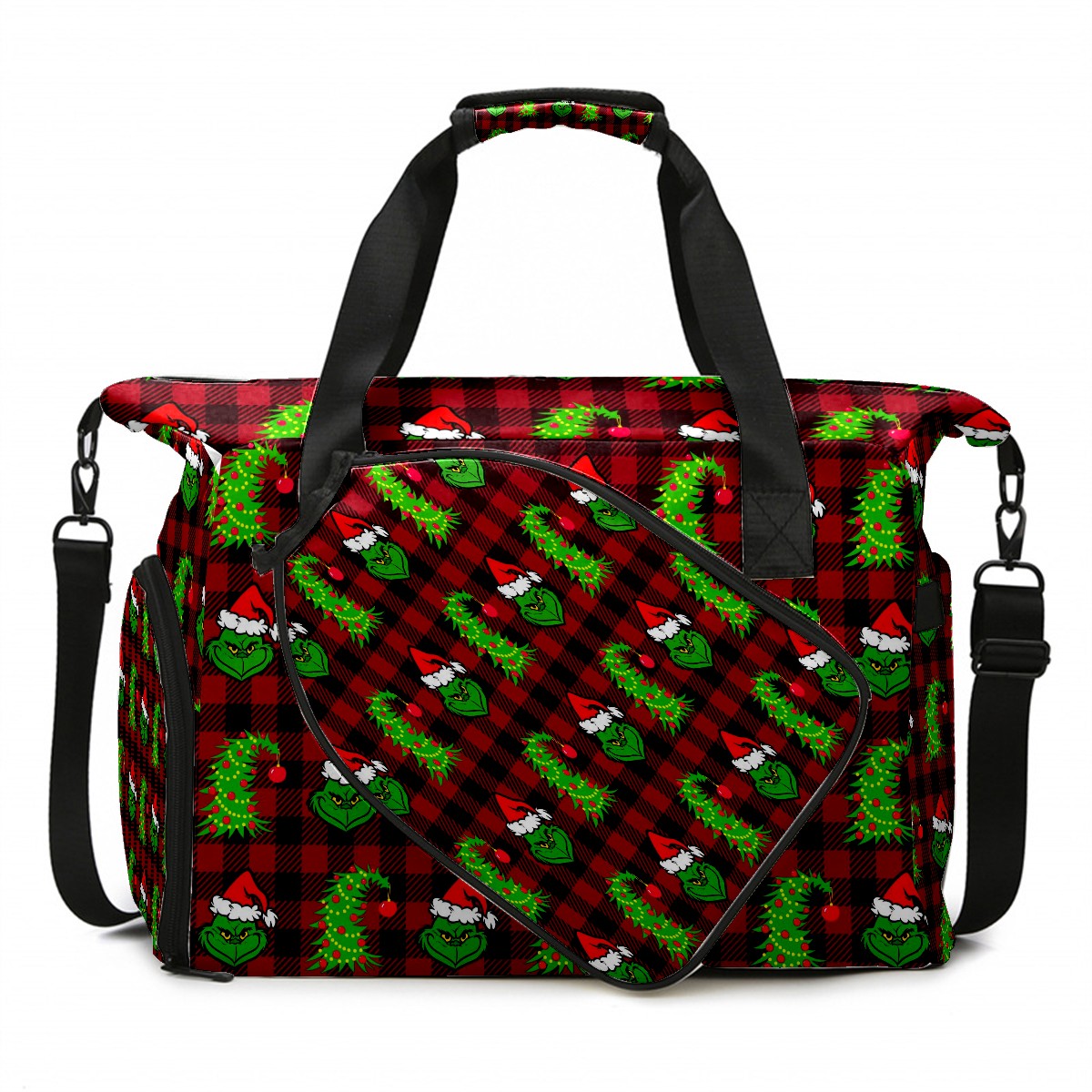 Pickleball Bag Backpack - Twill Fabric Gym Bag with Ventilated Shoe Compartment & Wet Pocket, Multiuse for Pickleball Gear, Travel, Workout Red And Black Buffalo Plaid Grinchmas Tree