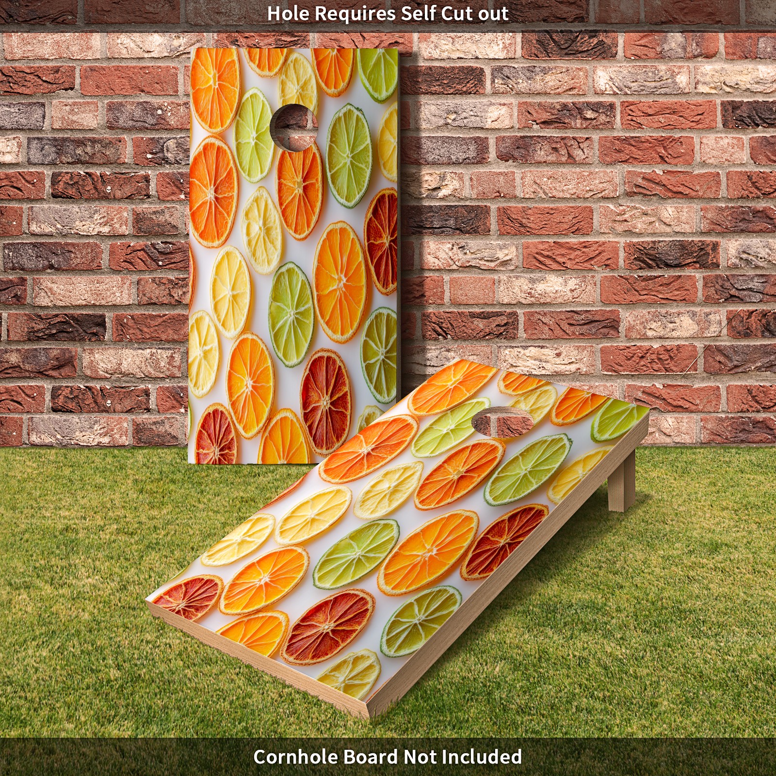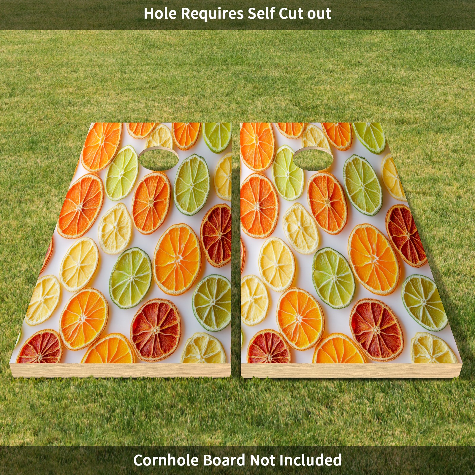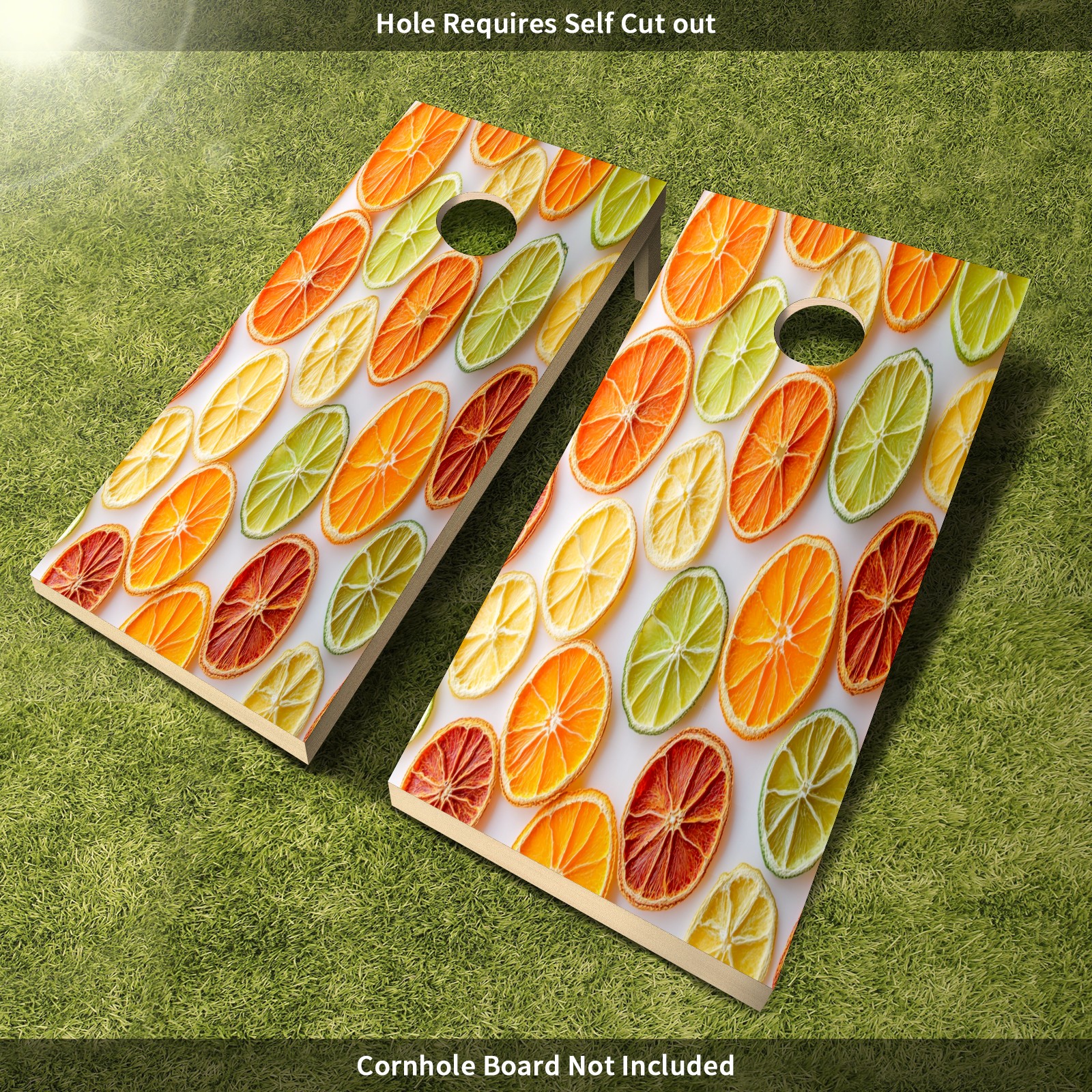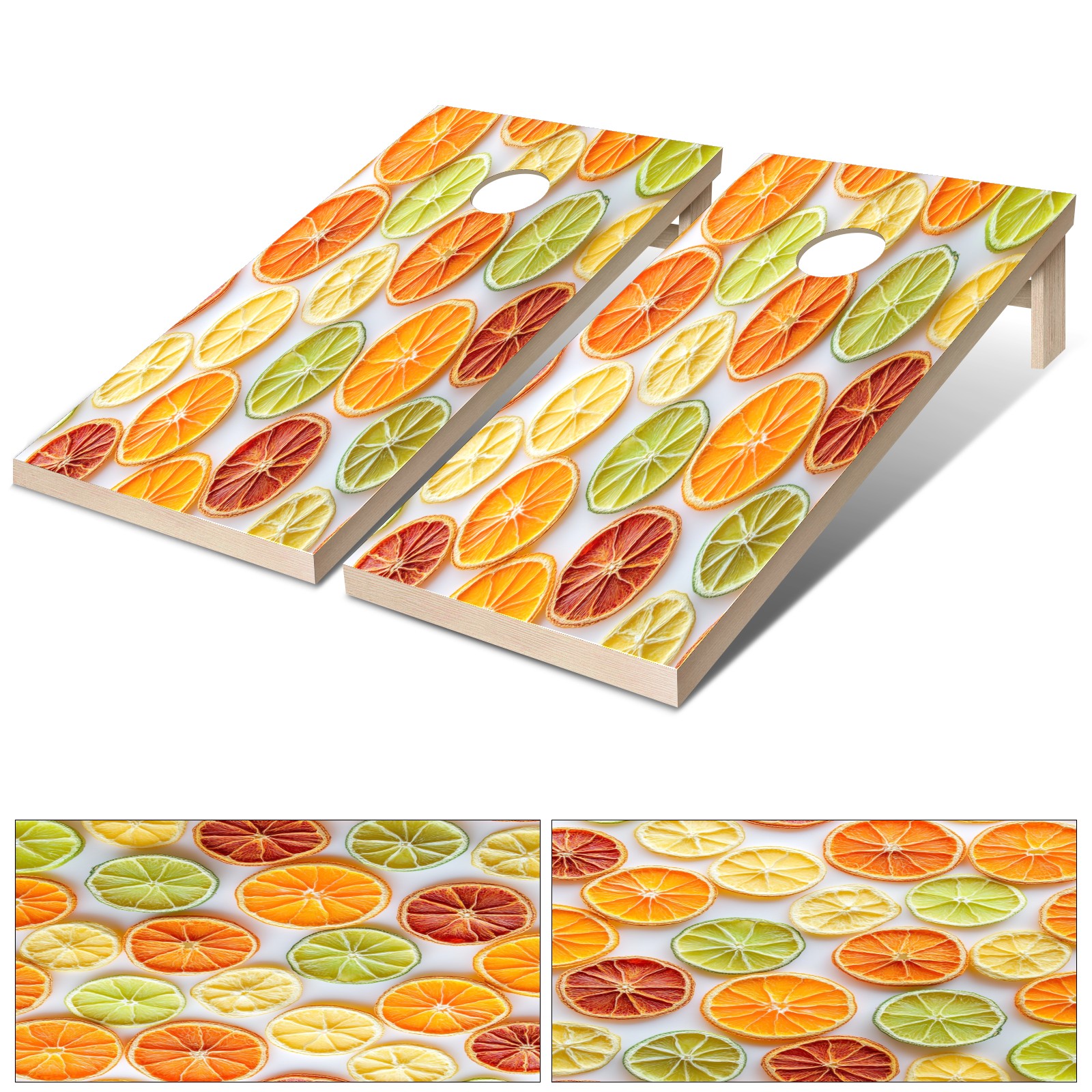 Portable 4x2 Cornhole Set with Two-piece Pack Boards - Cornhole Game Sticker Included - Yard Travel Outdoor Toss Board for Adults Outside Activities Orange Slices Pattern