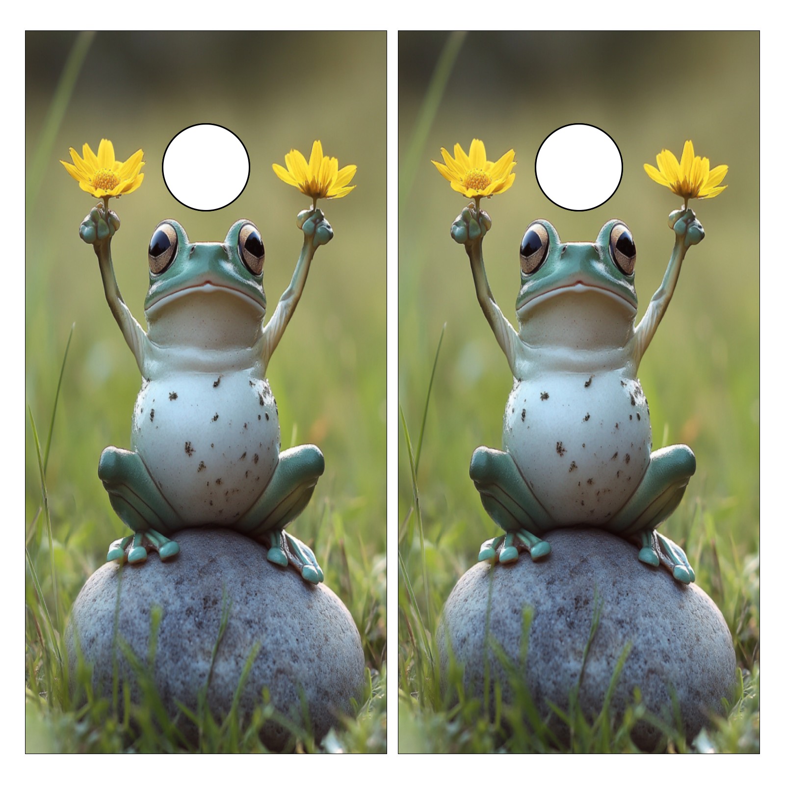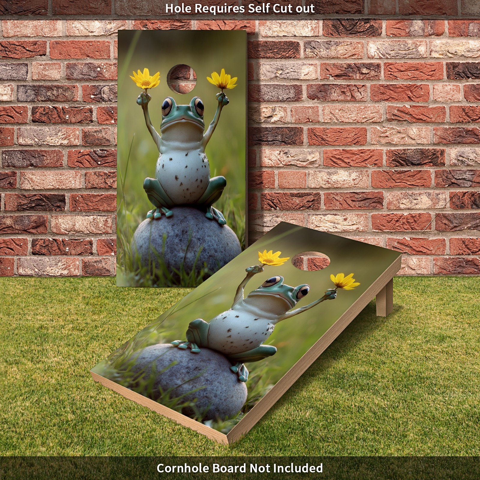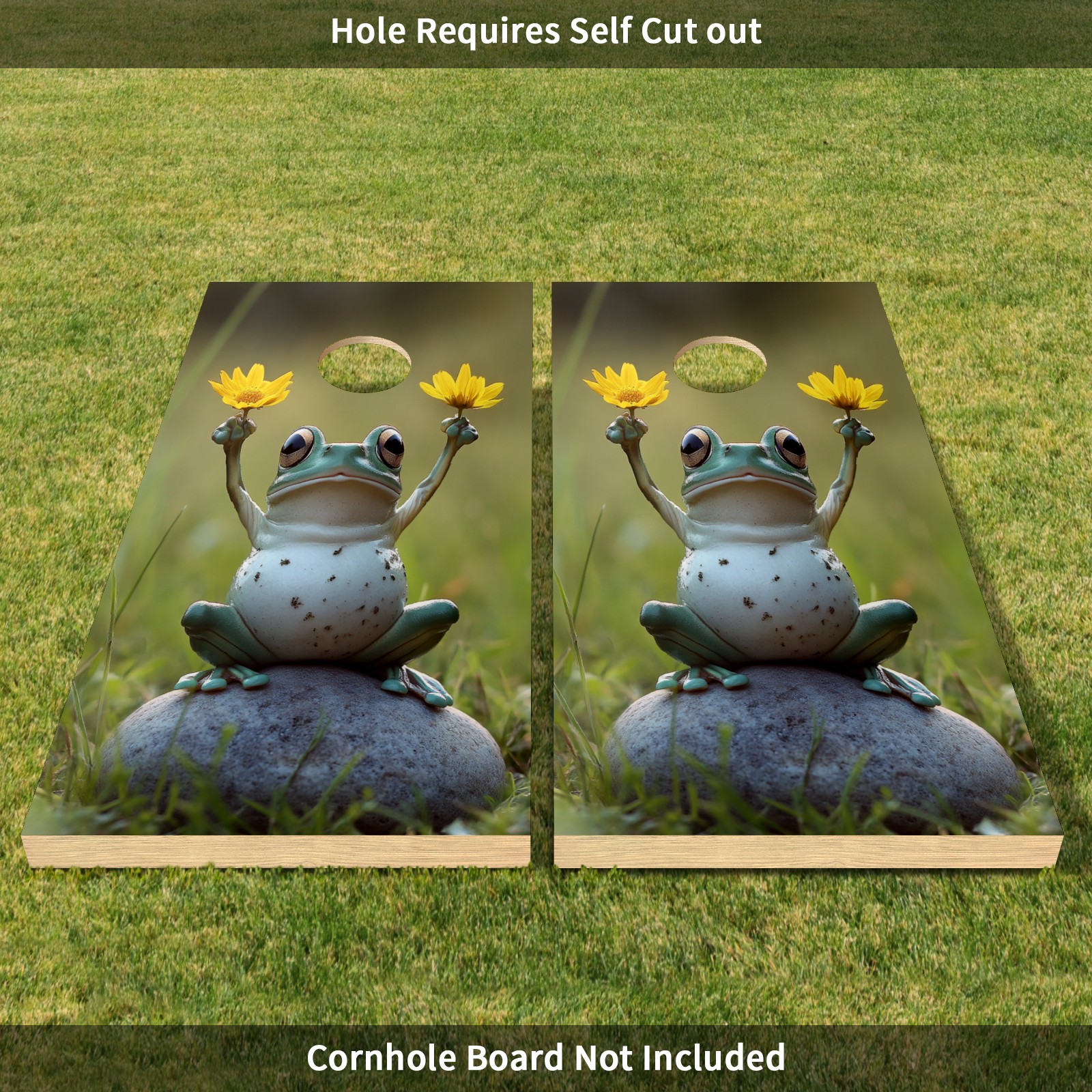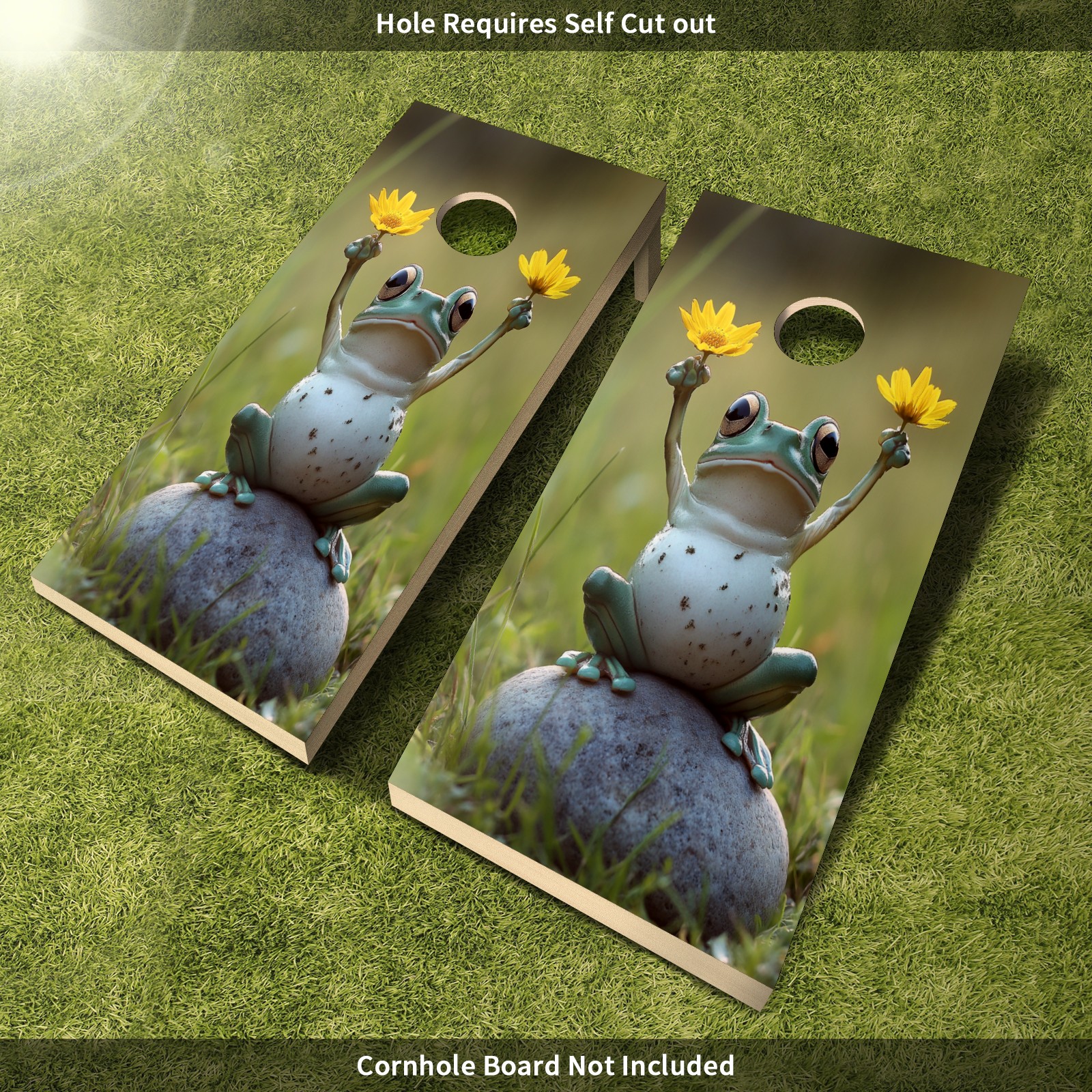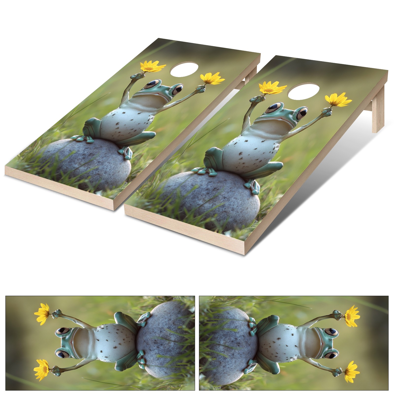 Portable 4x2 Cornhole Set with Two-piece Pack Boards - Cornhole Game Sticker Included - Yard Travel Outdoor Toss Board for Adults Outside Activities Frog Flower Pattern