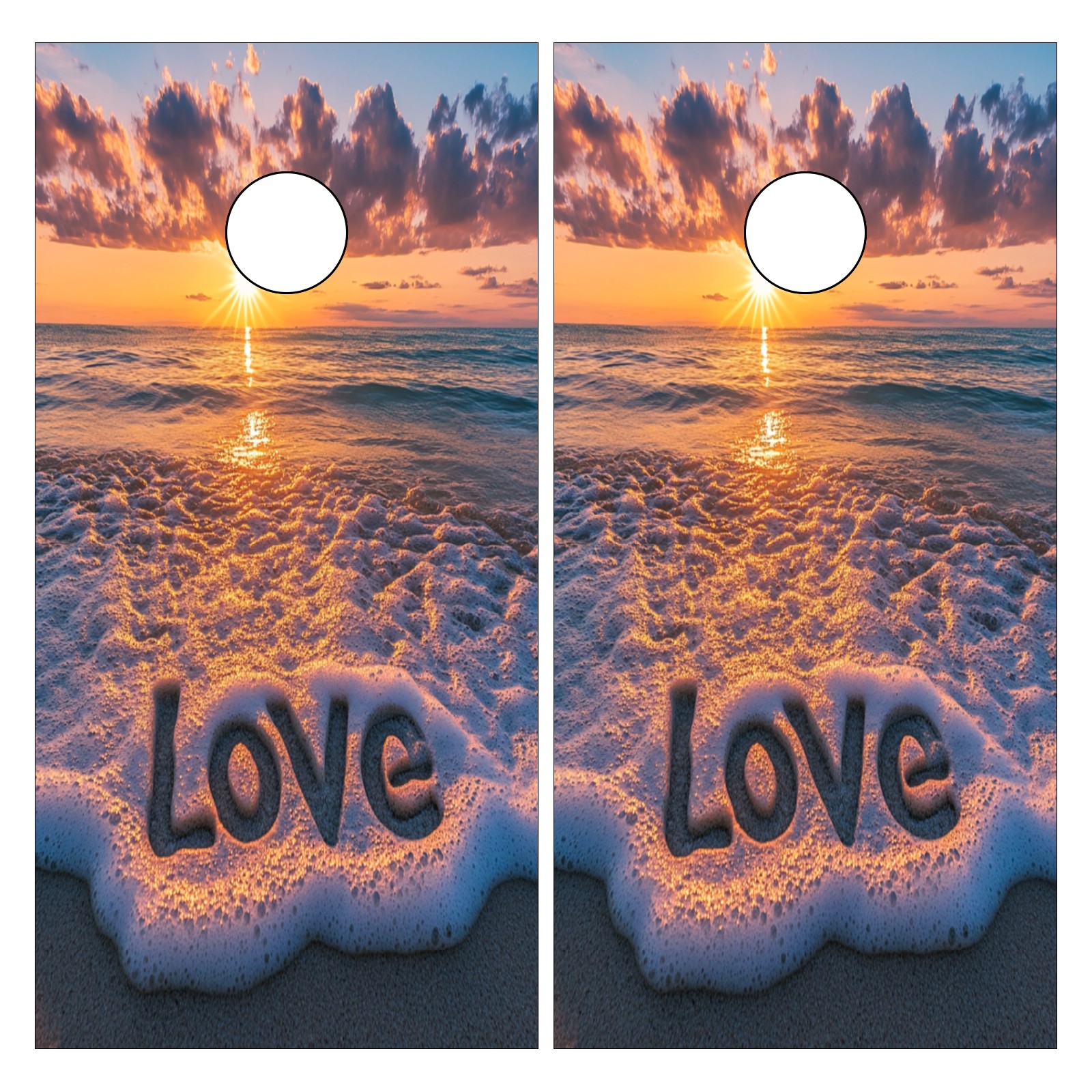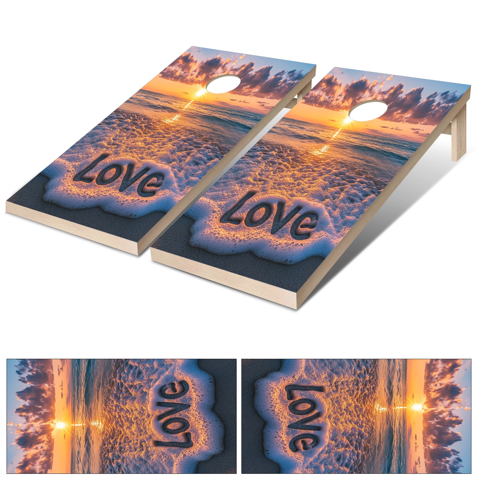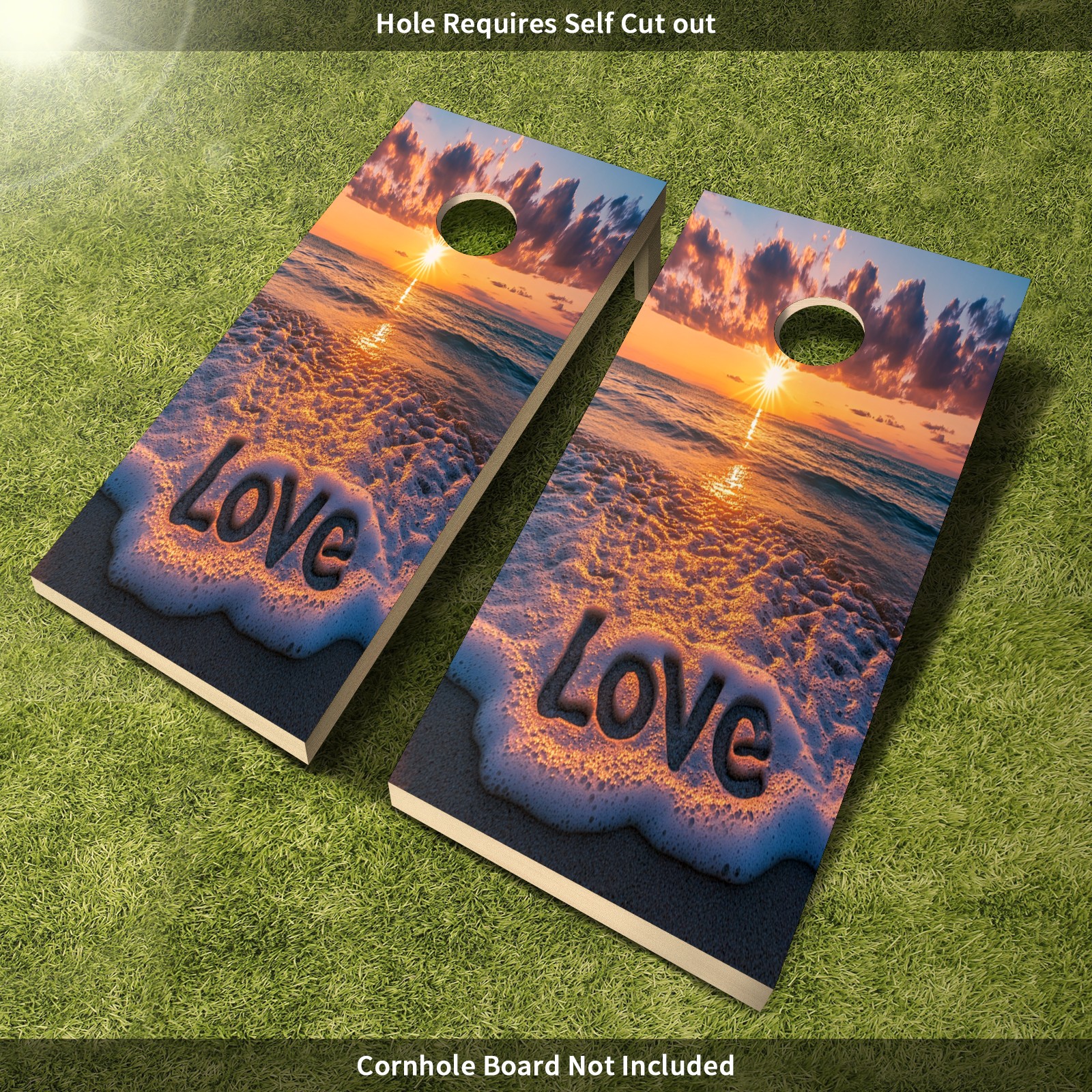Portable 4x2 Cornhole Set with Two-piece Pack Boards - Cornhole Game Sticker Included - Yard Travel Outdoor Toss Board for Adults Outside Activities Sunset Sea Pattern