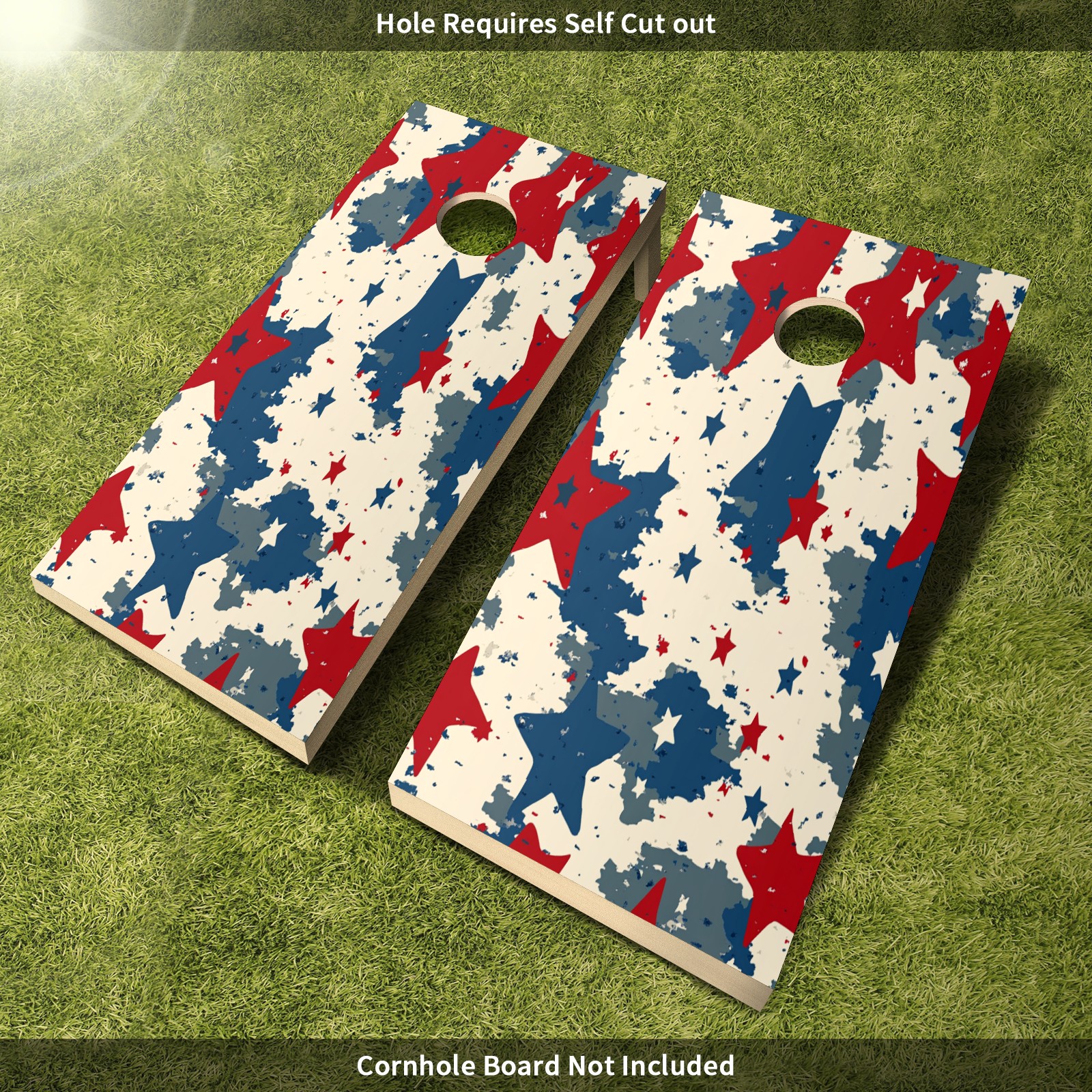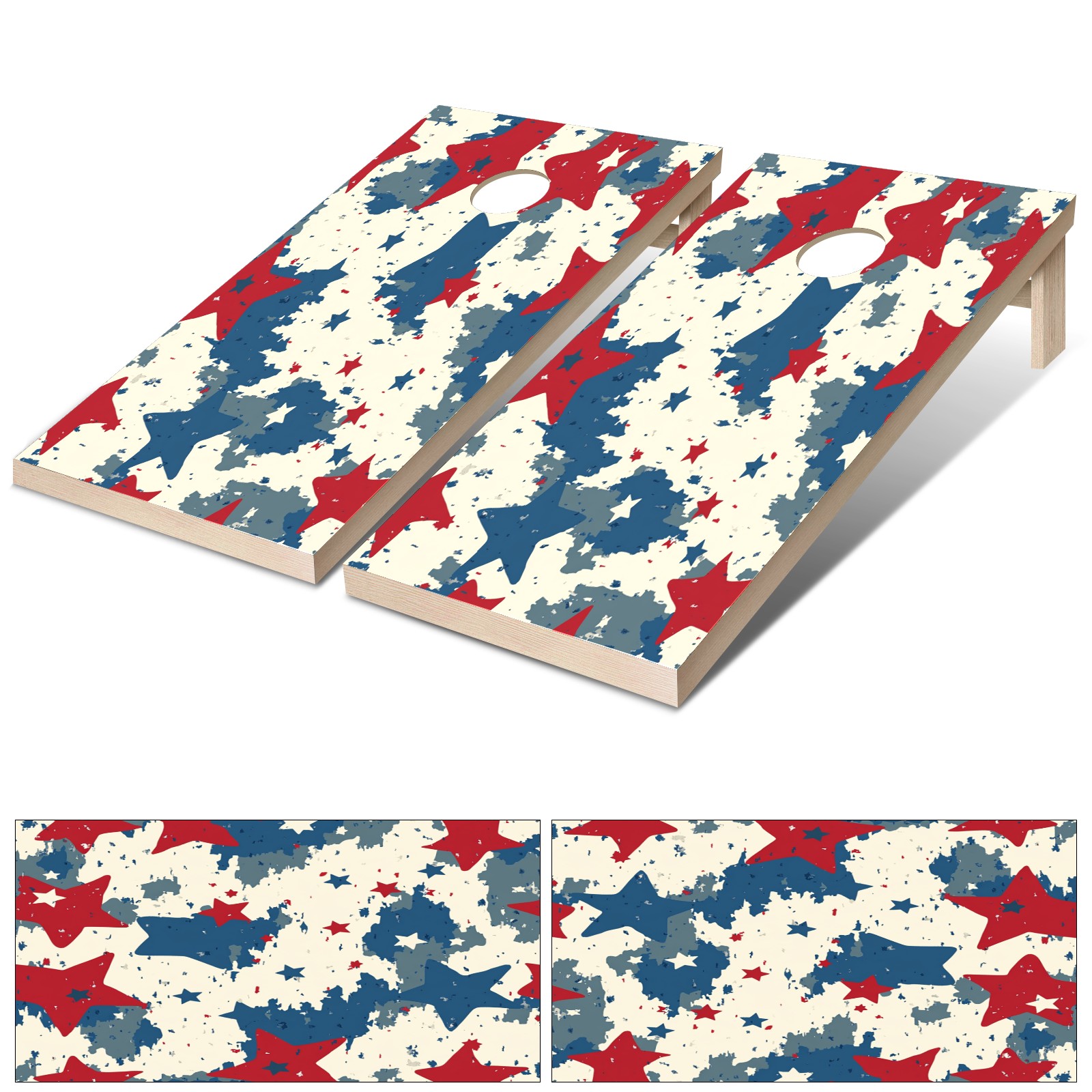 Portable 4x2 Cornhole Set with Two-piece Pack Boards - Cornhole Game Sticker Included - Yard Travel Outdoor Toss Board for Adults Outside Activities Red Blue Star Pattern