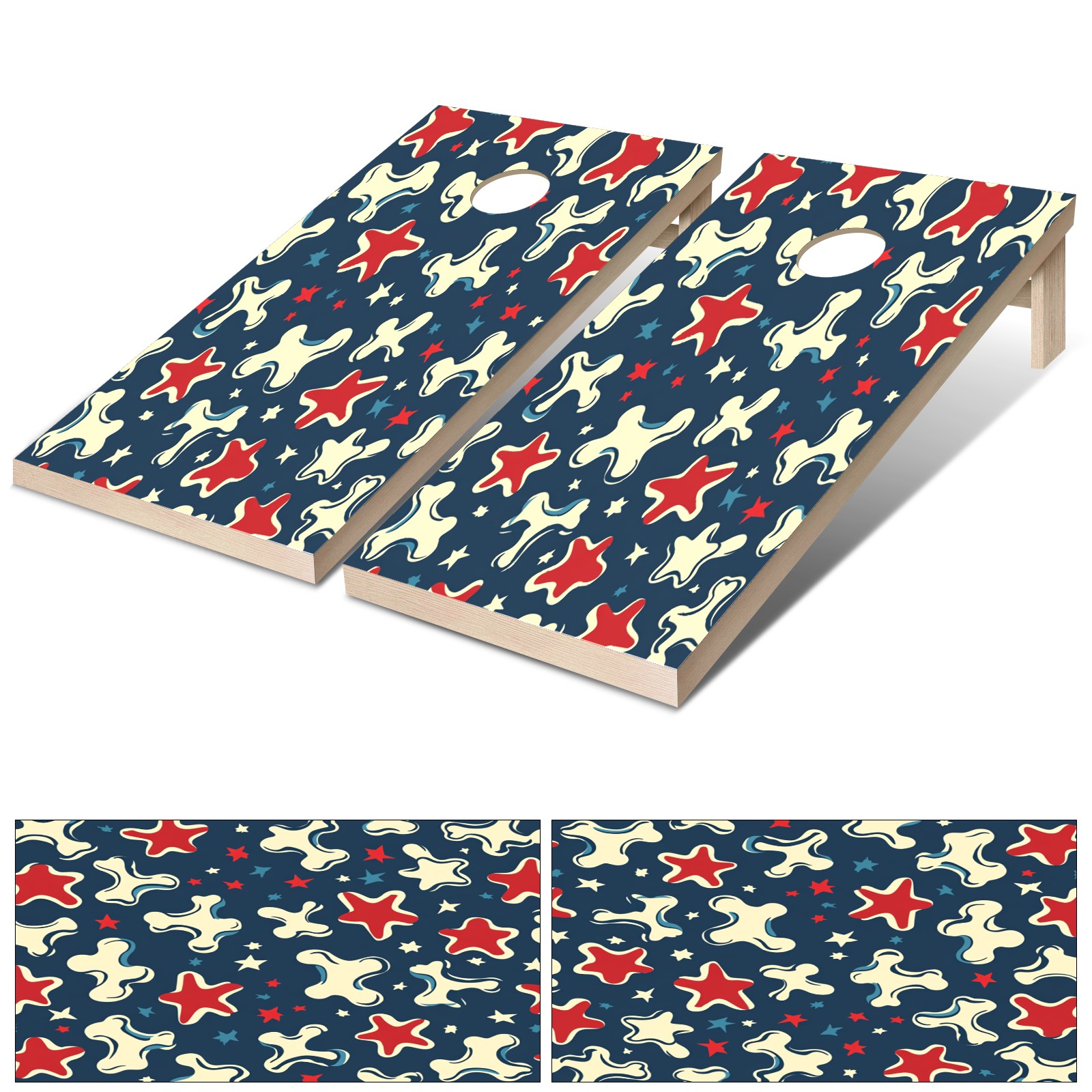 Portable 4x2 Cornhole Set with Two-piece Pack Boards - Cornhole Game Sticker Included - Yard Travel Outdoor Toss Board for Adults Outside Activities Bone Star Pattern2