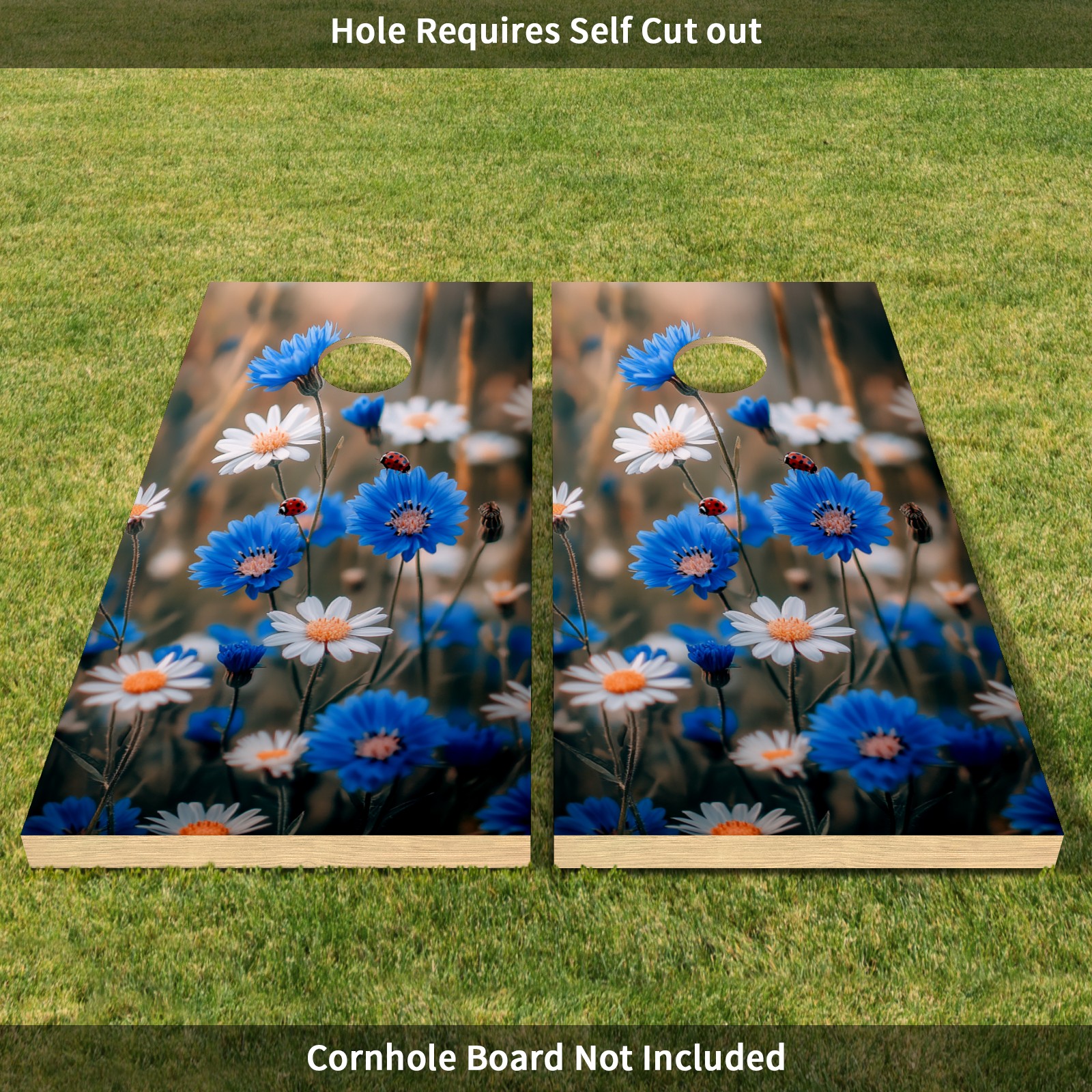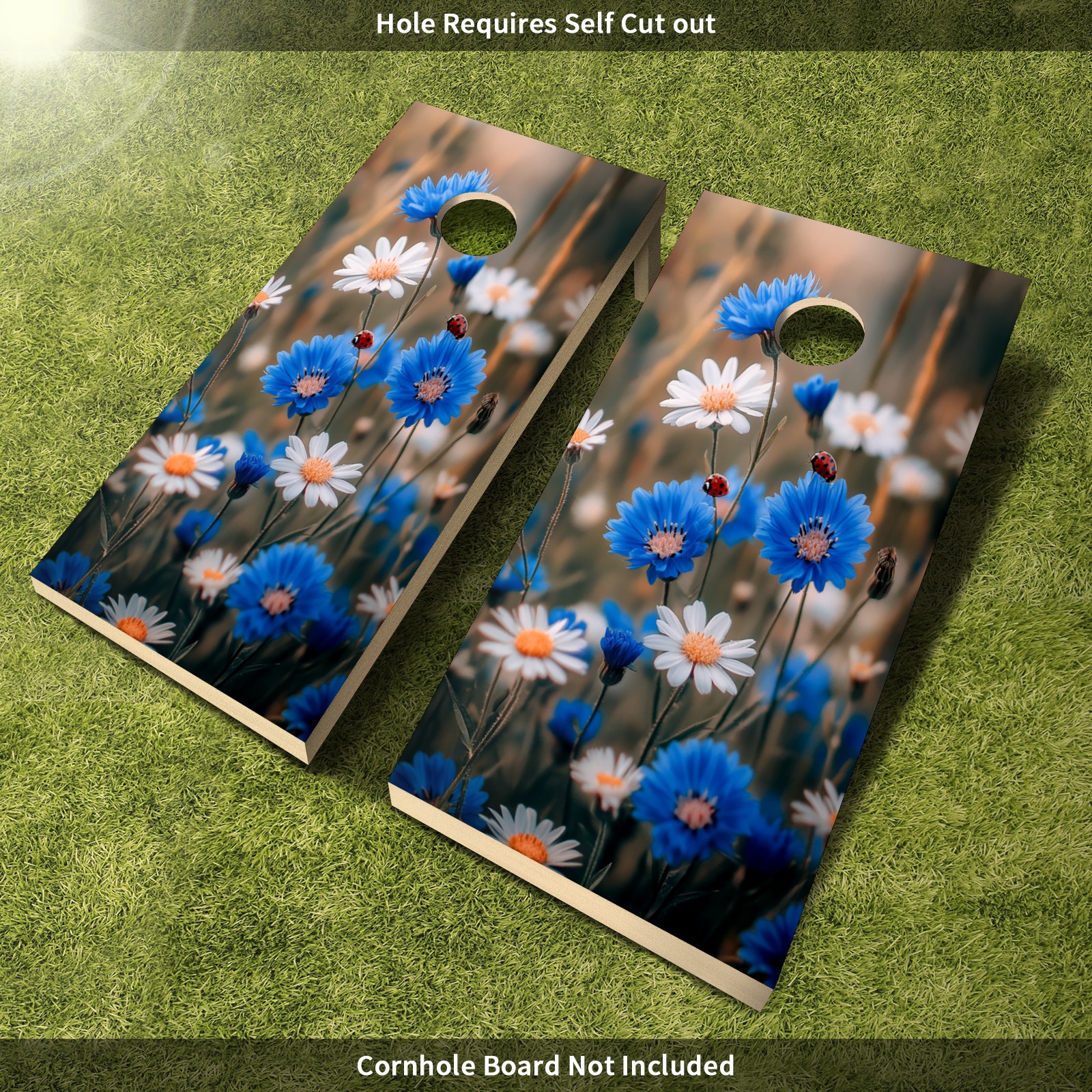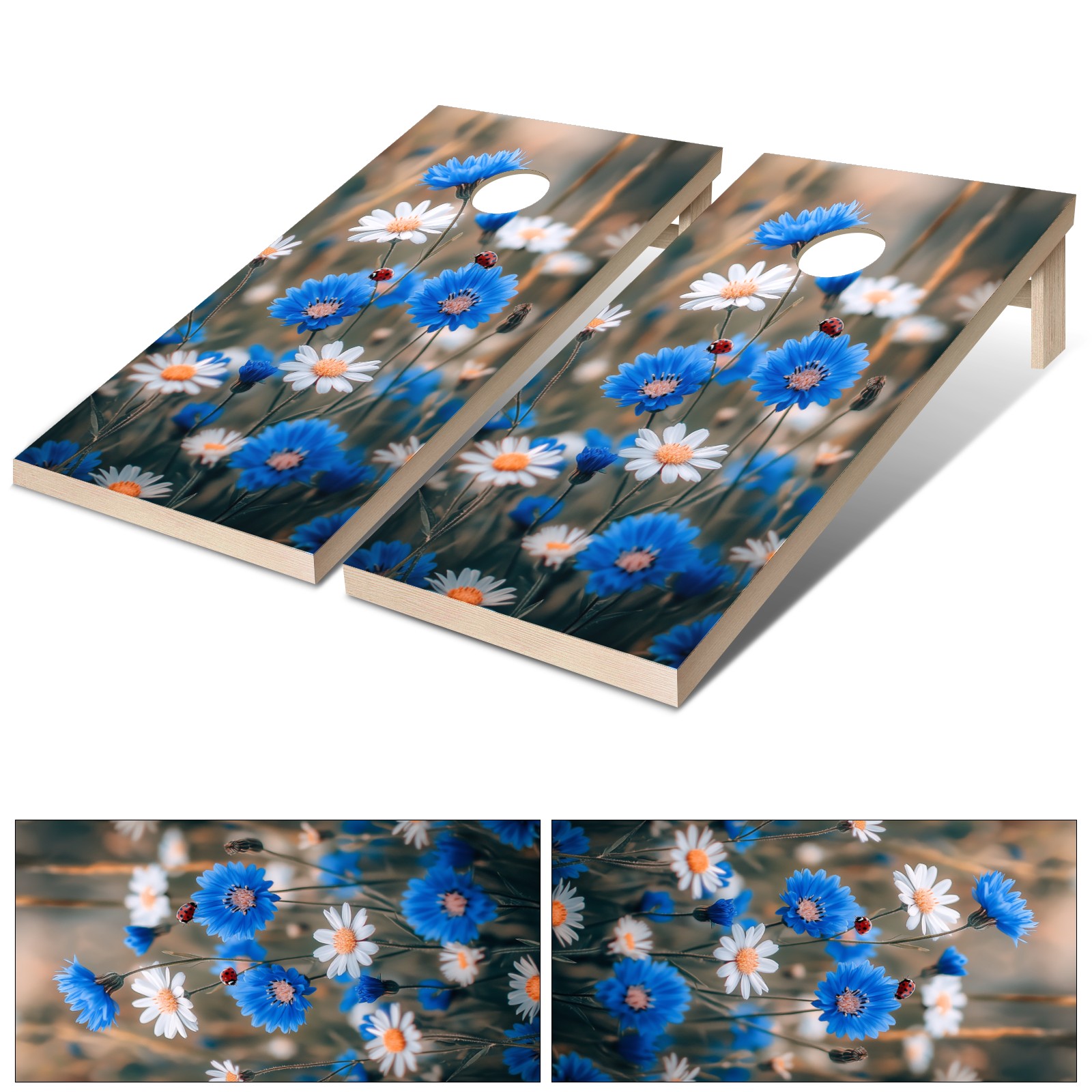 Portable 4x2 Cornhole Set with Two-piece Pack Boards - Cornhole Game Sticker Included - Yard Travel Outdoor Toss Board for Adults Outside Activities Blue Daisy Pattern