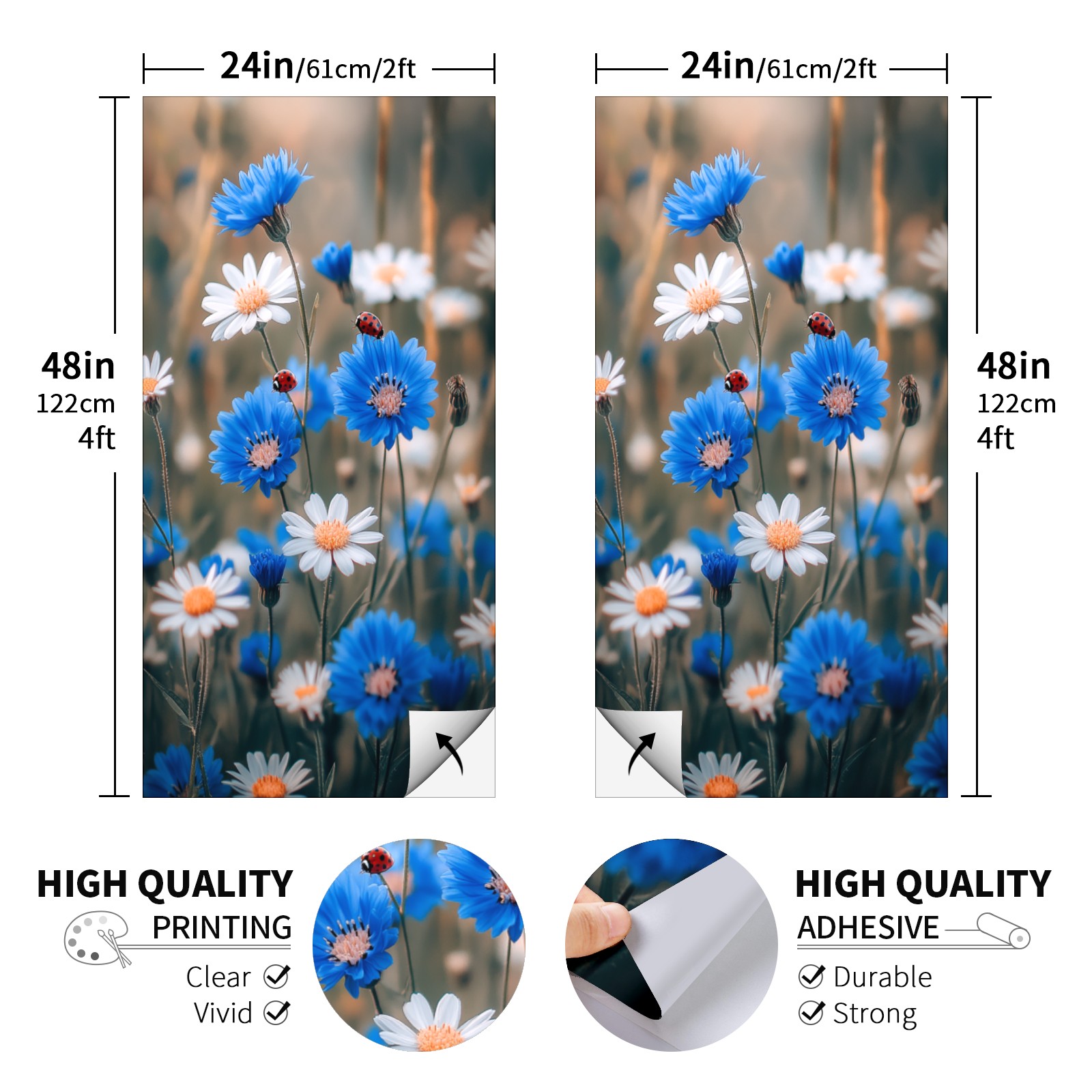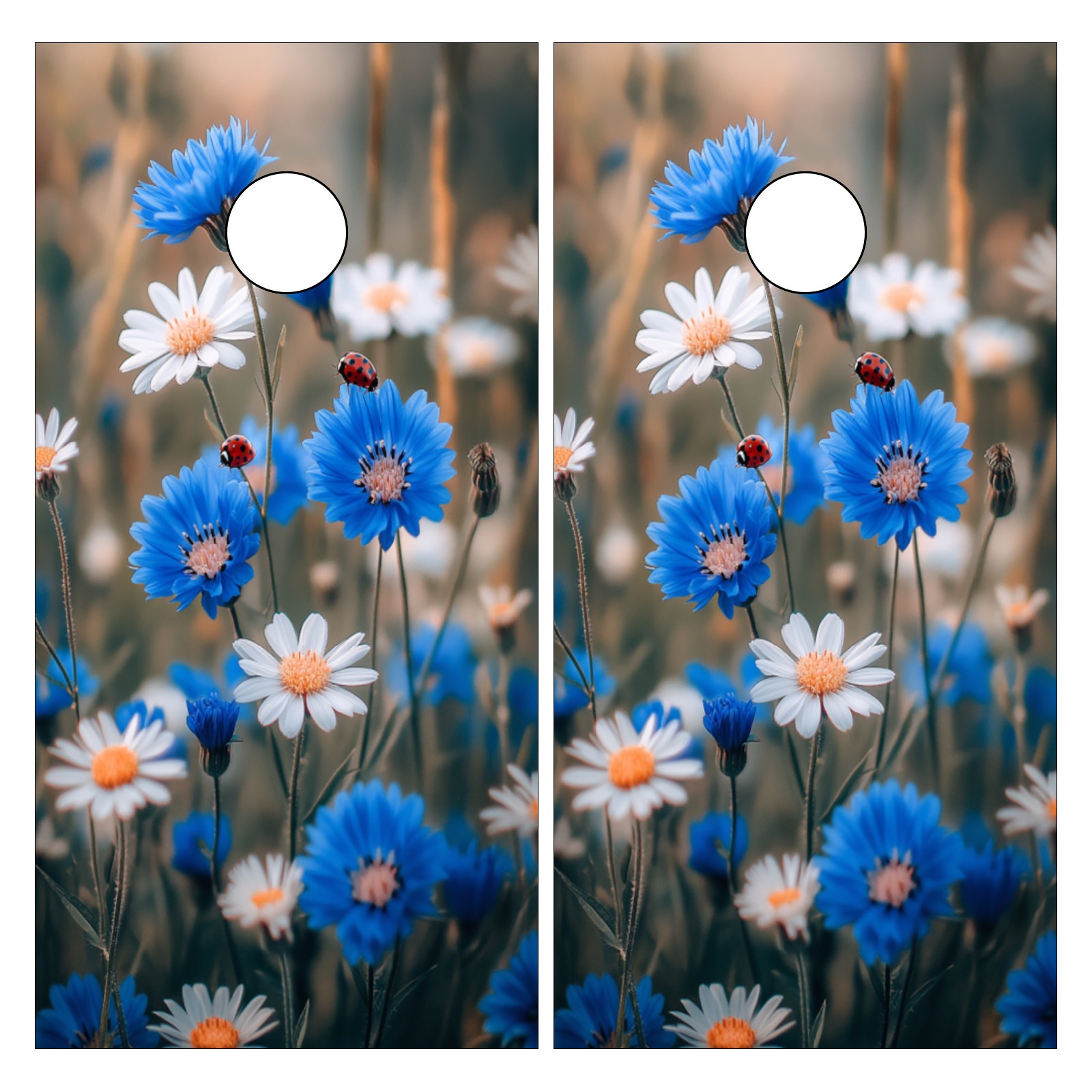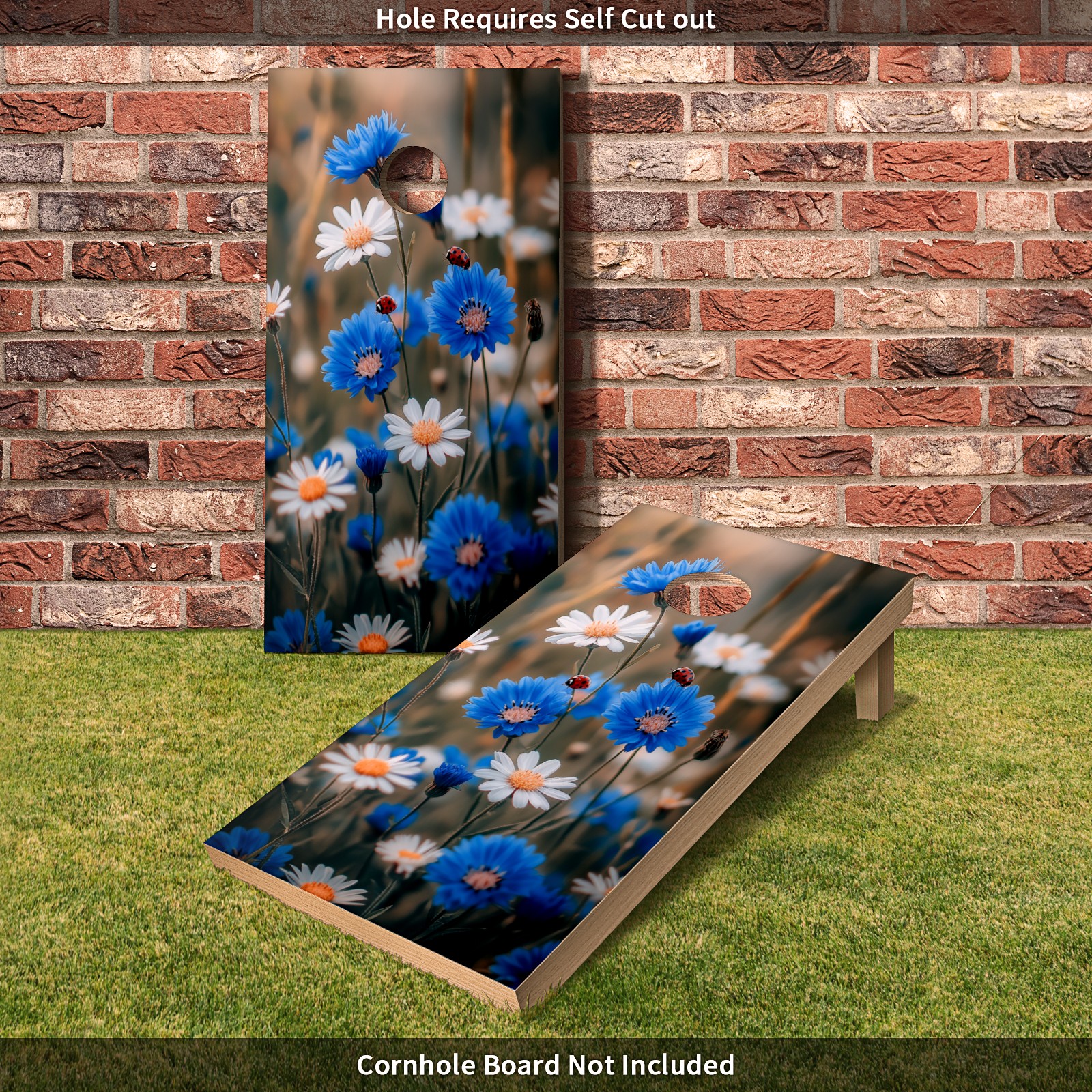 Portable 4x2 Cornhole Set with Two-piece Pack Boards - Cornhole Game Sticker Included - Yard Travel Outdoor Toss Board for Adults Outside Activities Blue Daisy Pattern