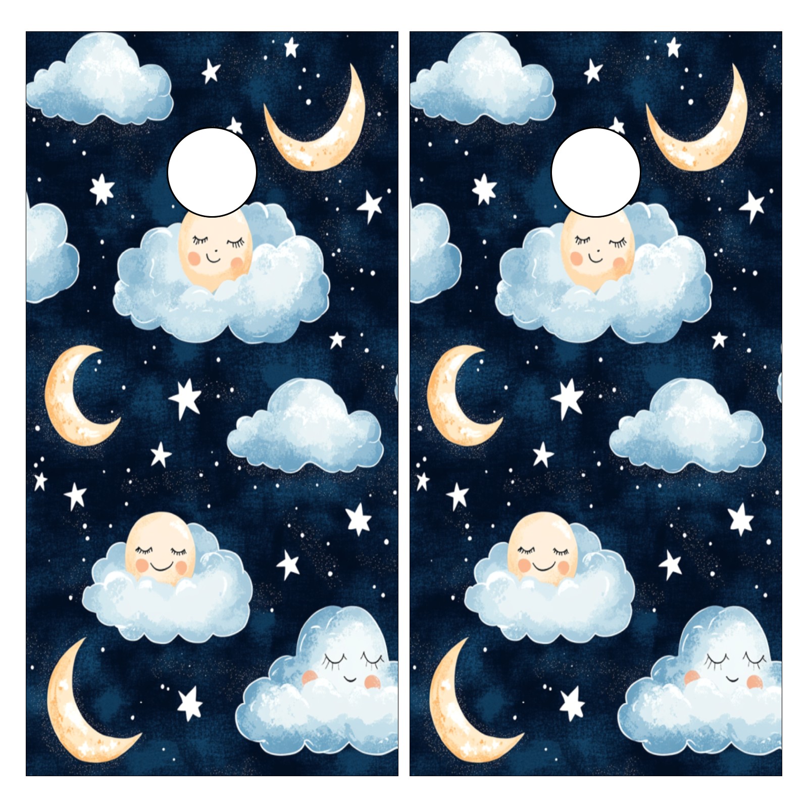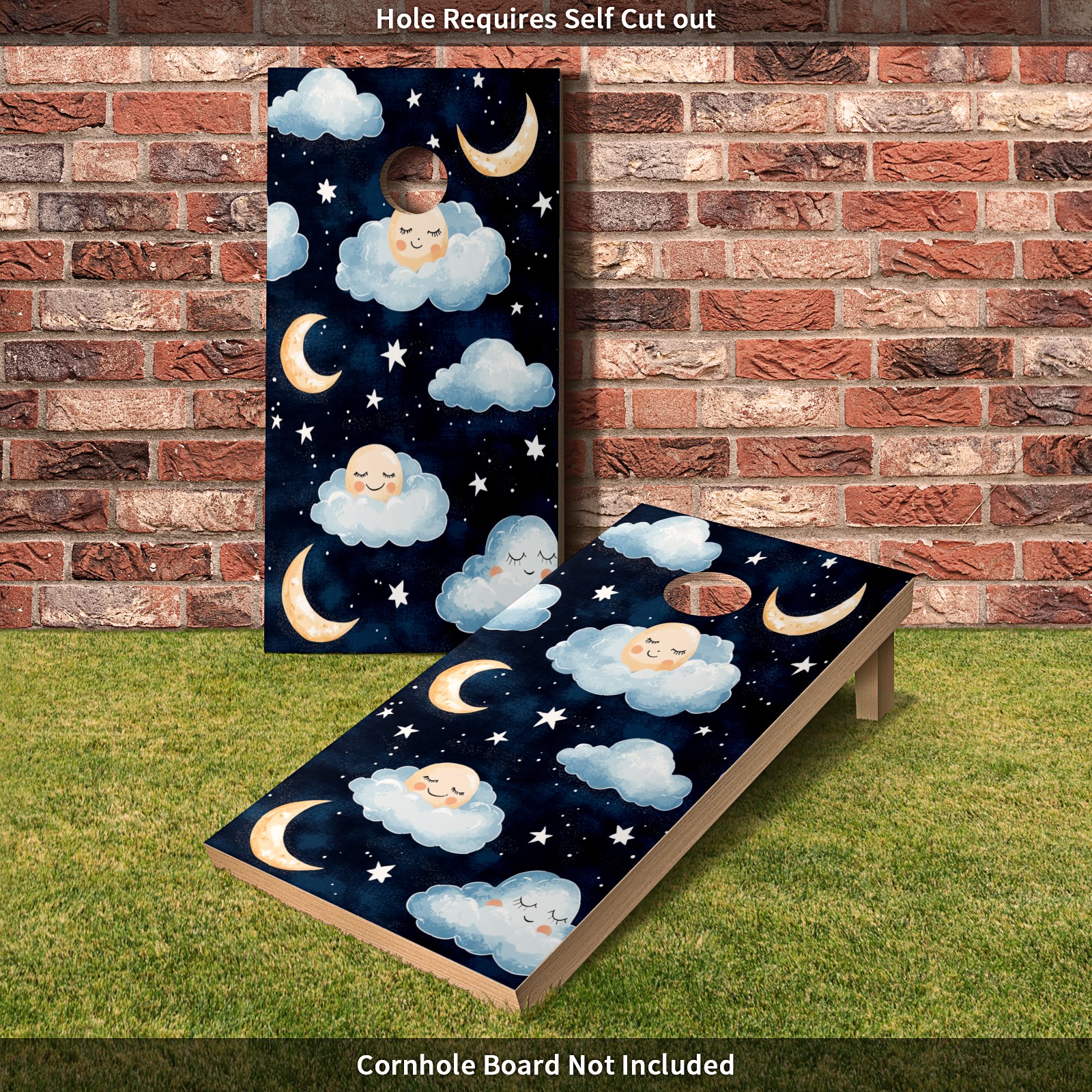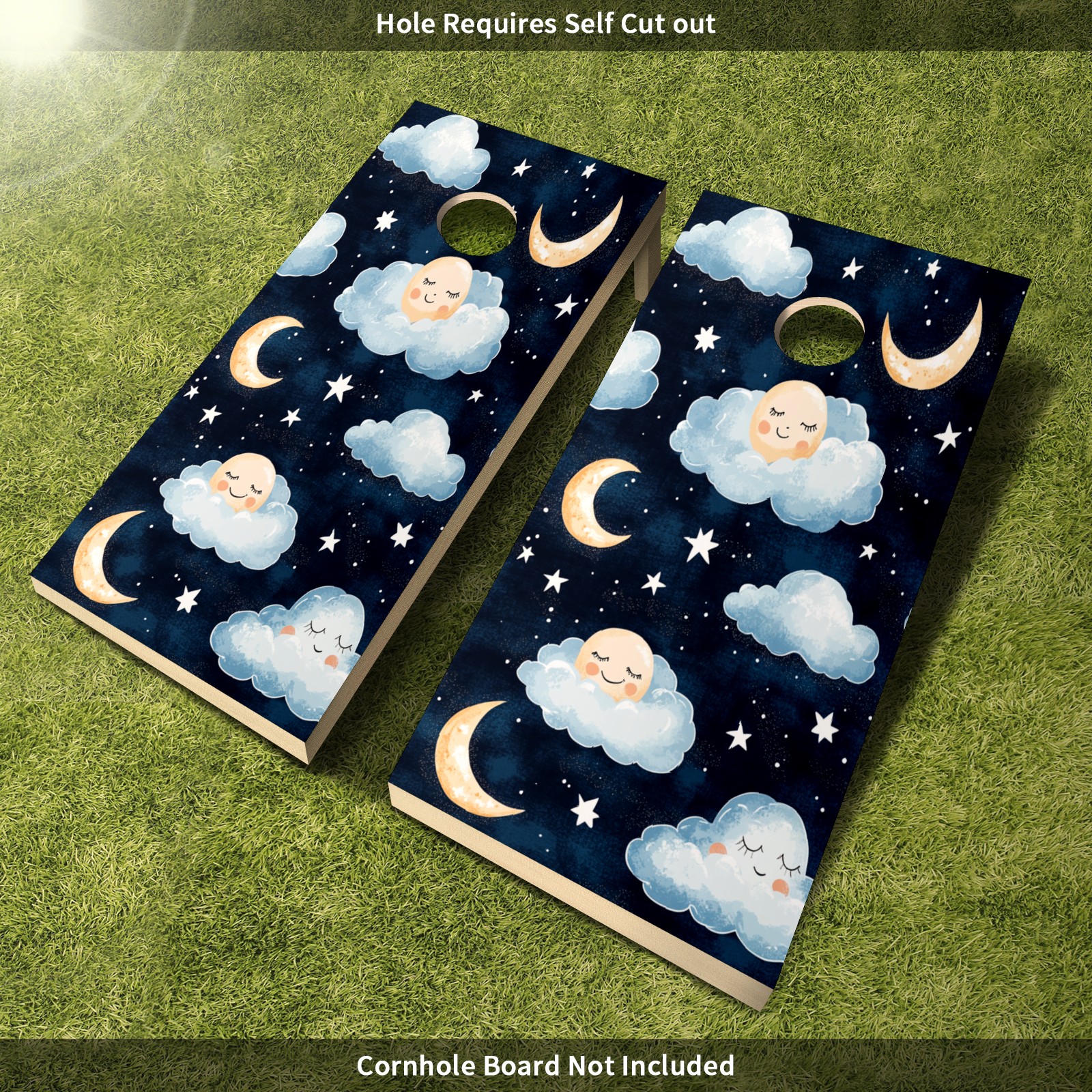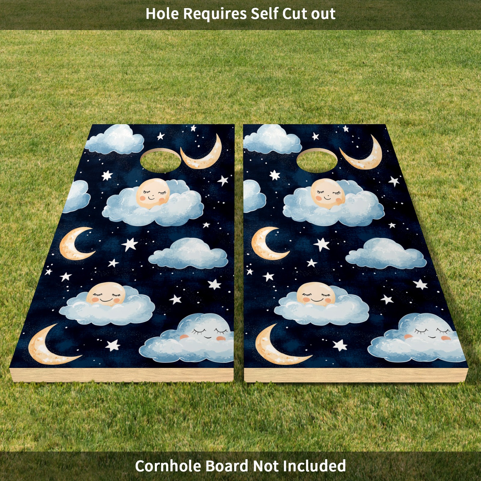 Portable 4x2 Cornhole Set with Two-piece Pack Boards - Cornhole Game Sticker Included - Yard Travel Outdoor Toss Board for Adults Outside Activities Moon Cloud Pattern5