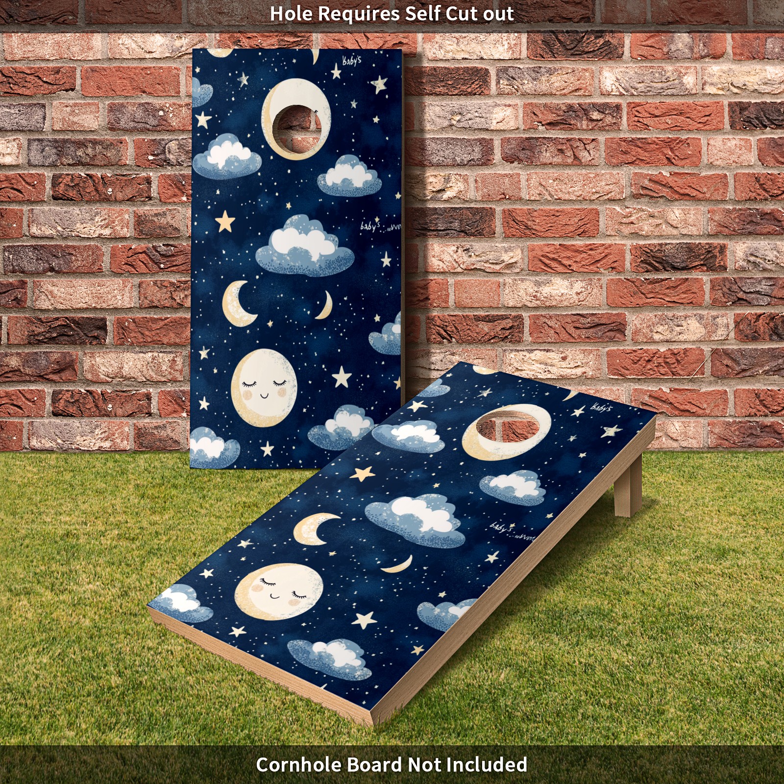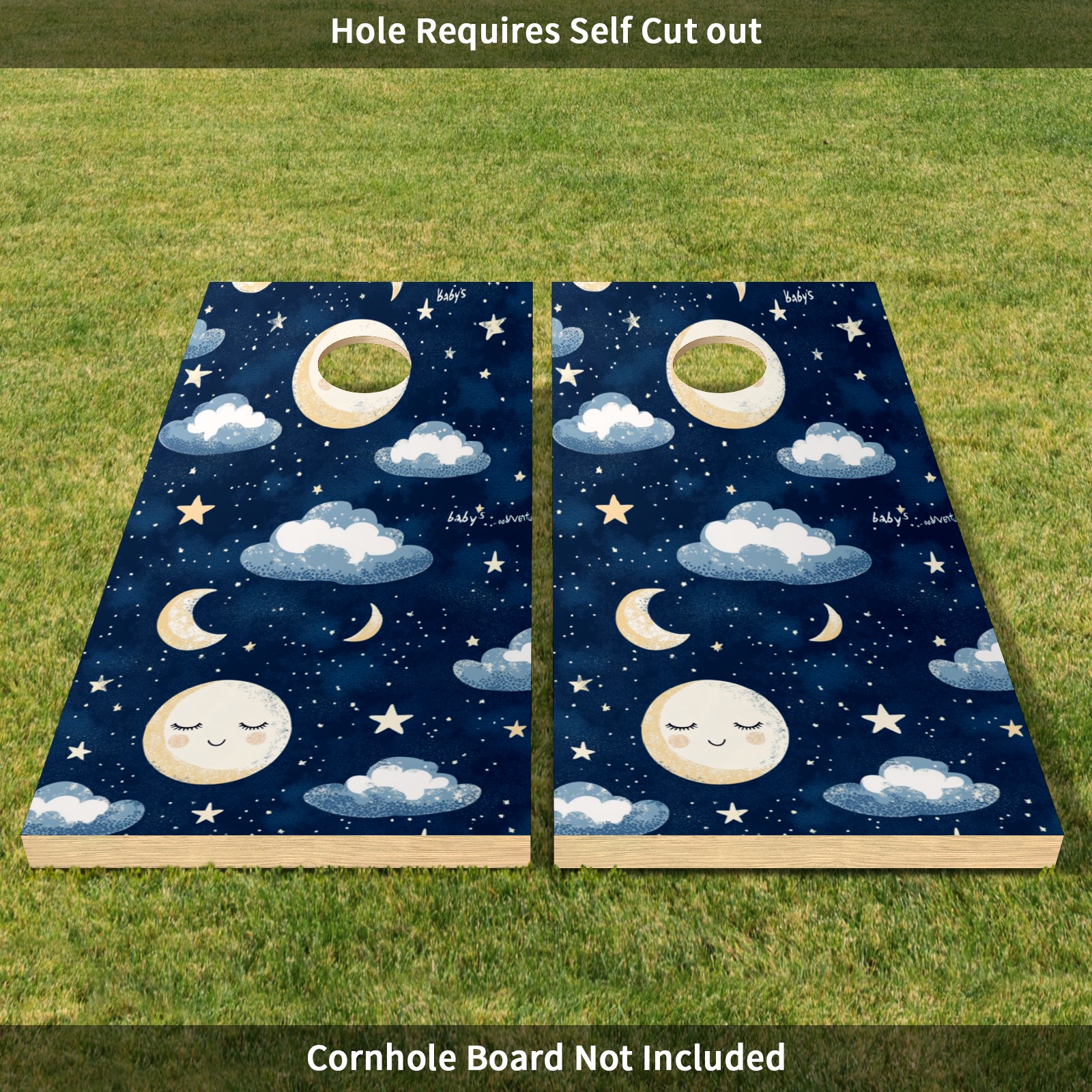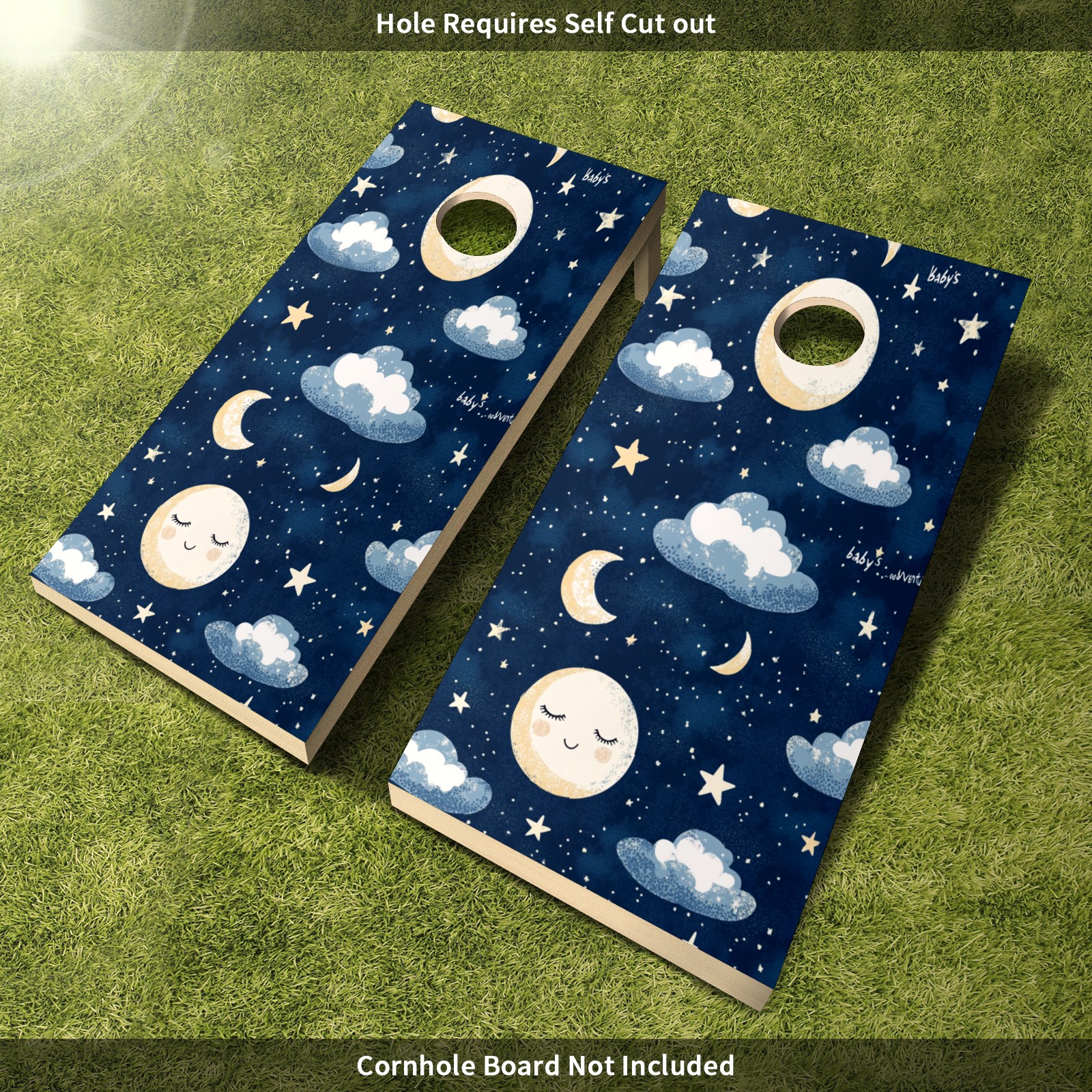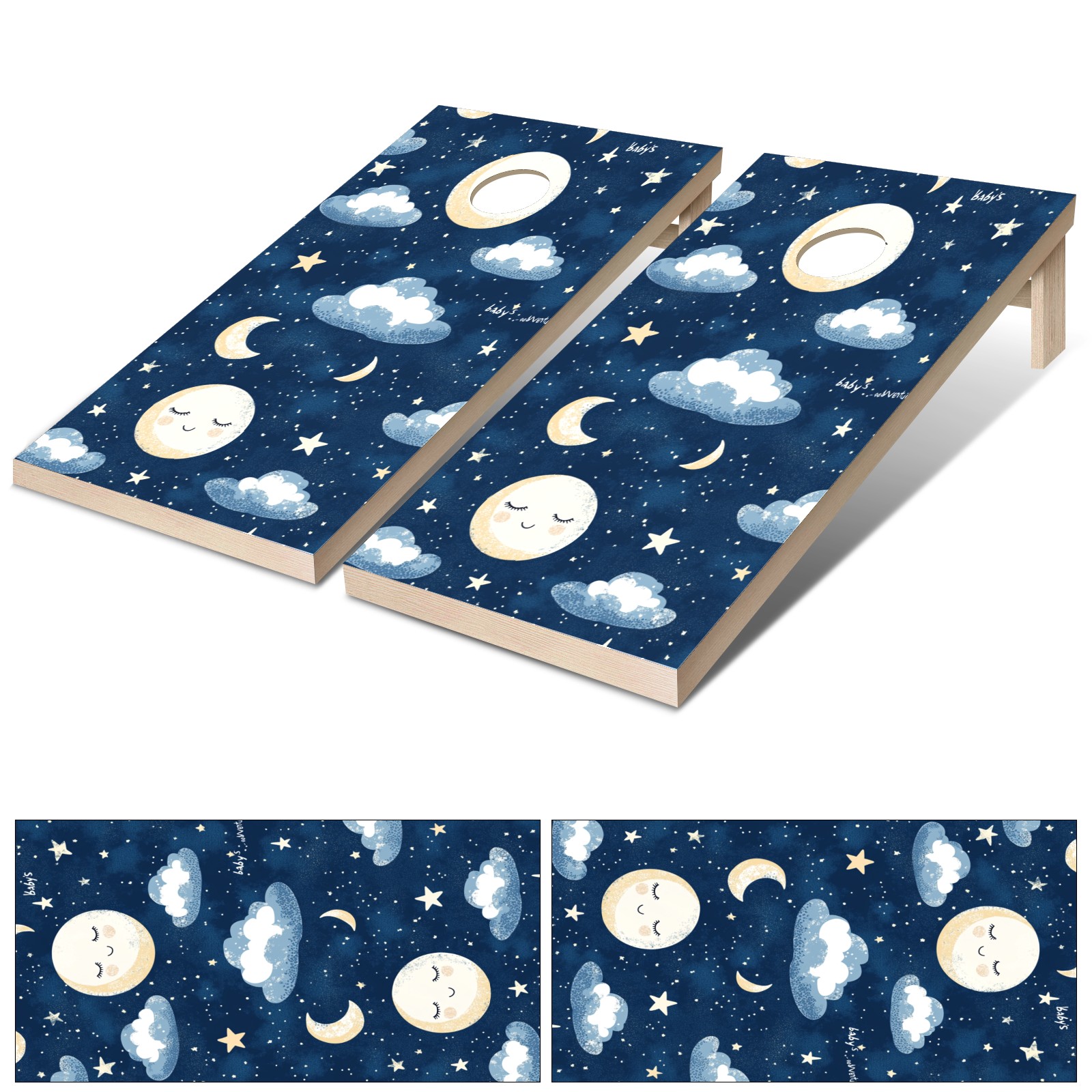 Portable 4x2 Cornhole Set with Two-piece Pack Boards - Cornhole Game Sticker Included - Yard Travel Outdoor Toss Board for Adults Outside Activities Moon Cloud Pattern4