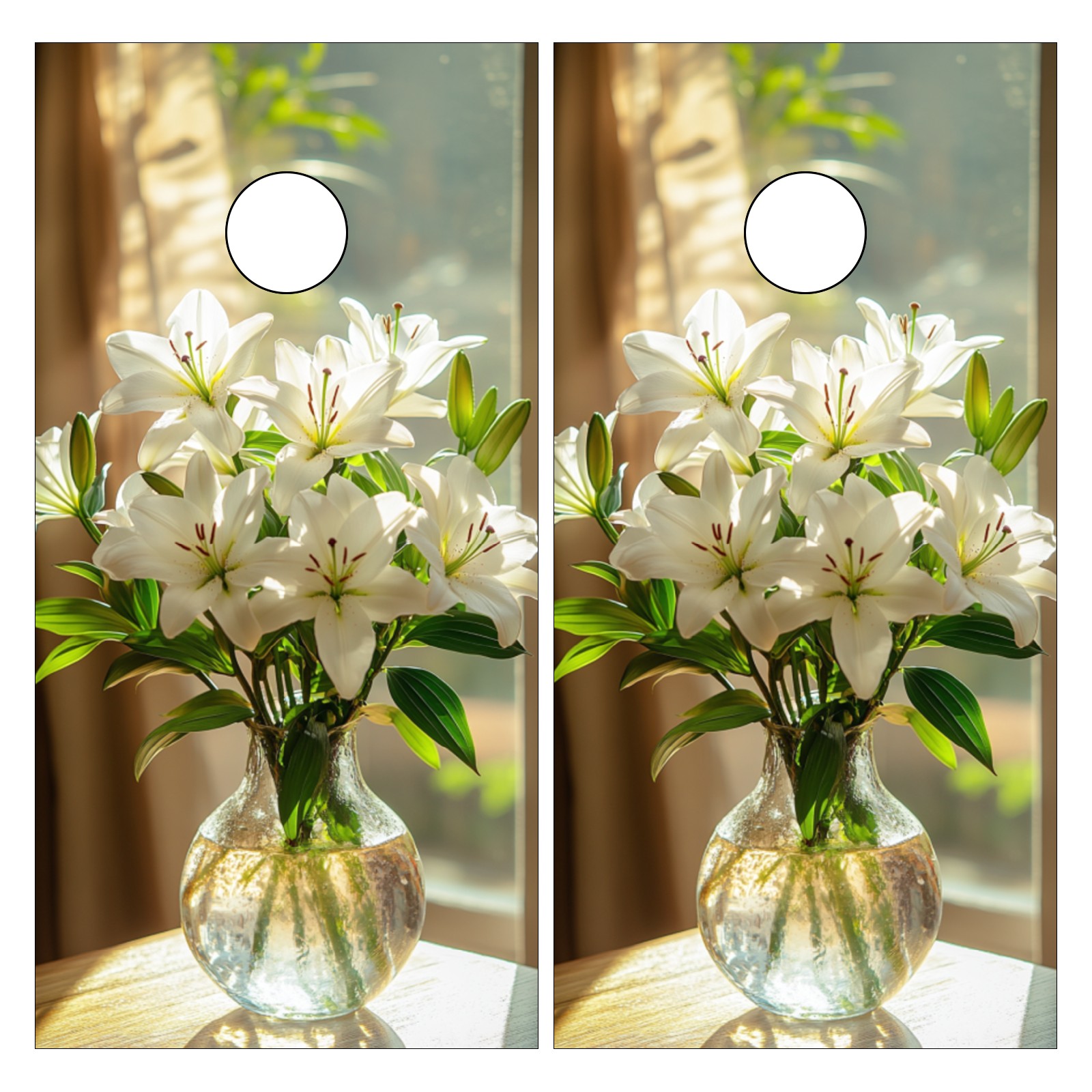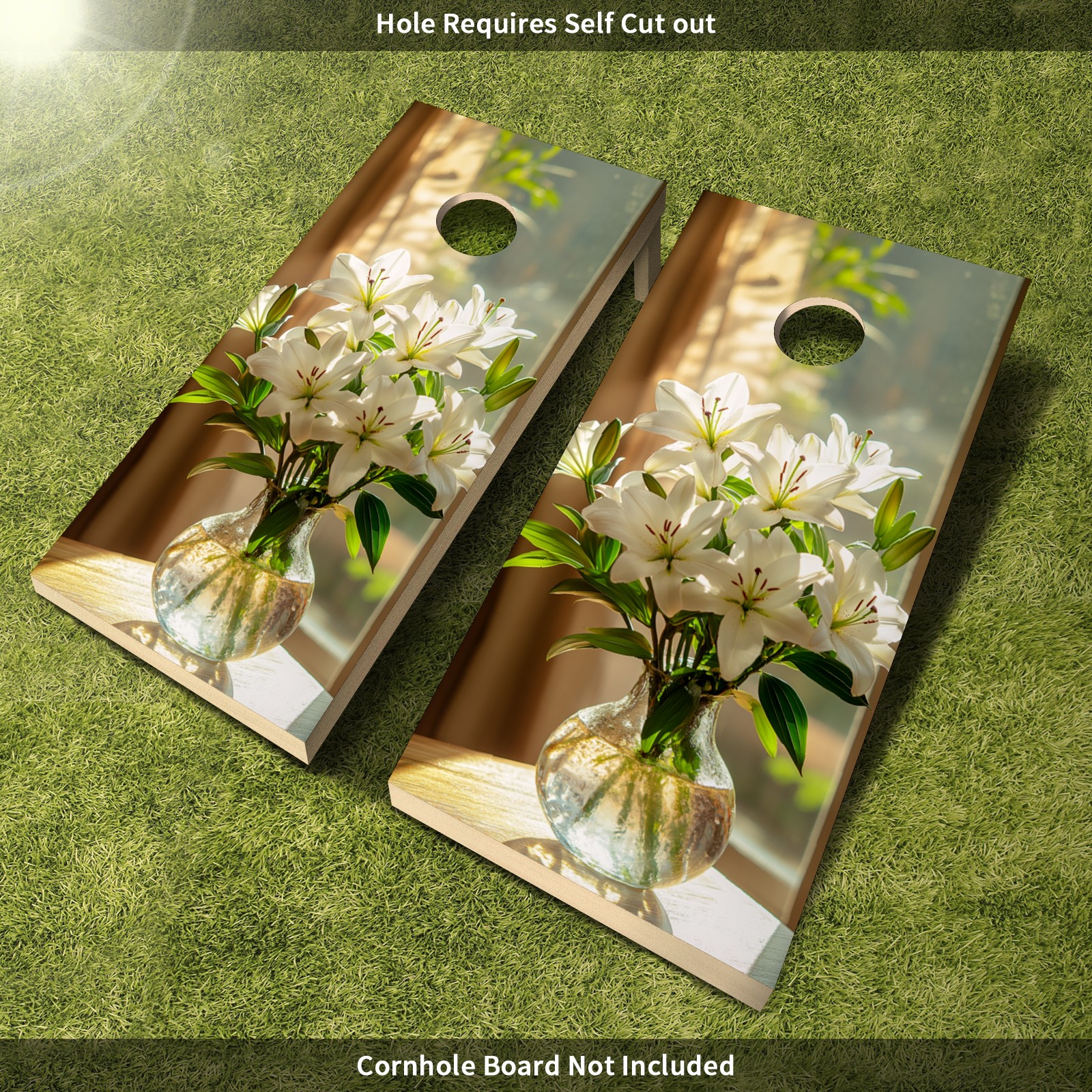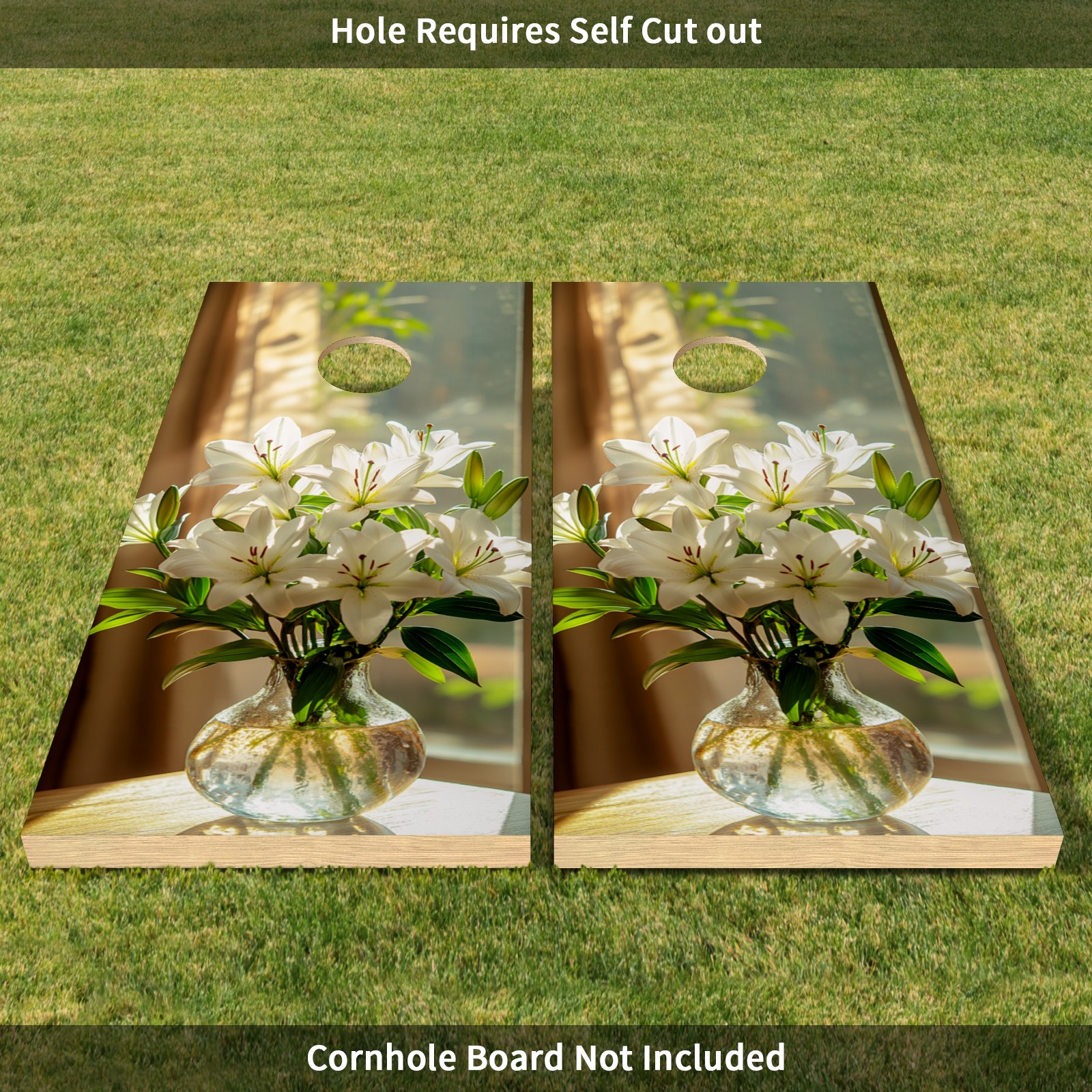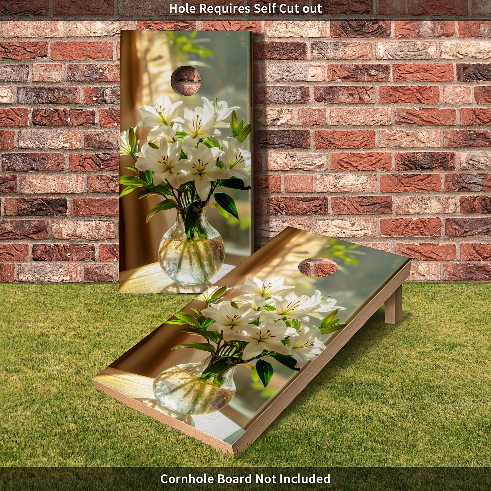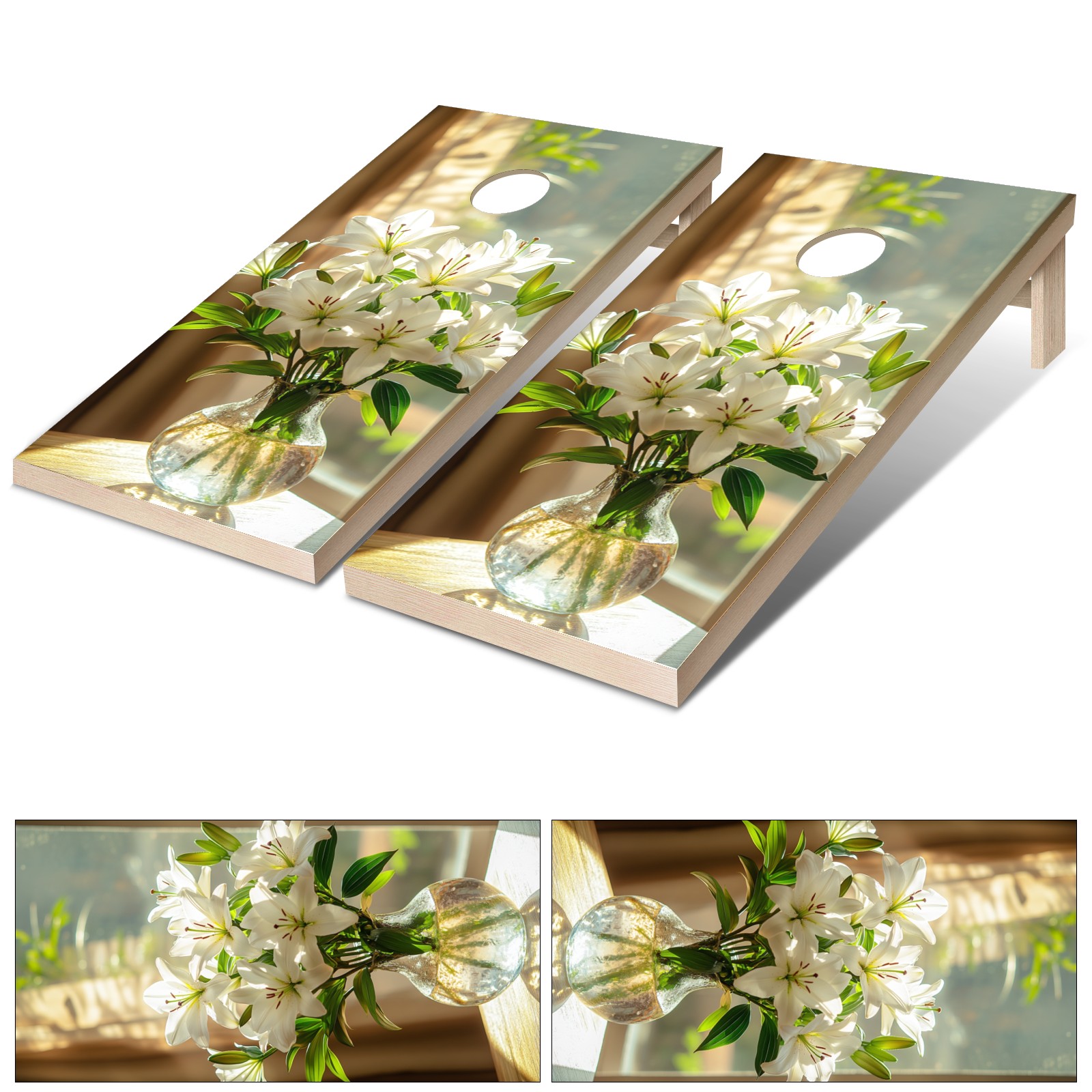 Portable 4x2 Cornhole Set with Two-piece Pack Boards - Cornhole Game Sticker Included - Yard Travel Outdoor Toss Board for Adults Outside Activities White Lily Pattern