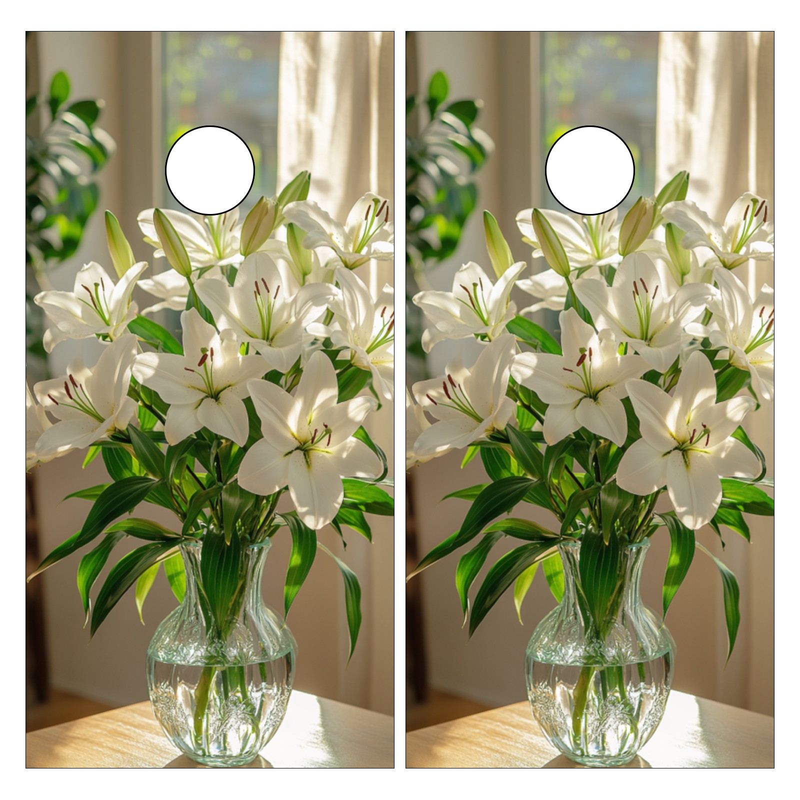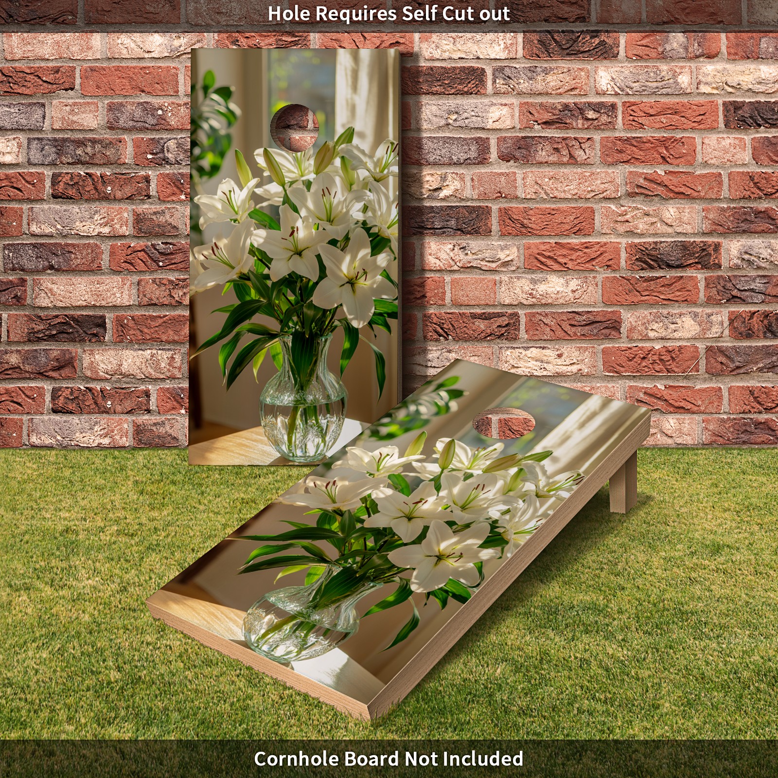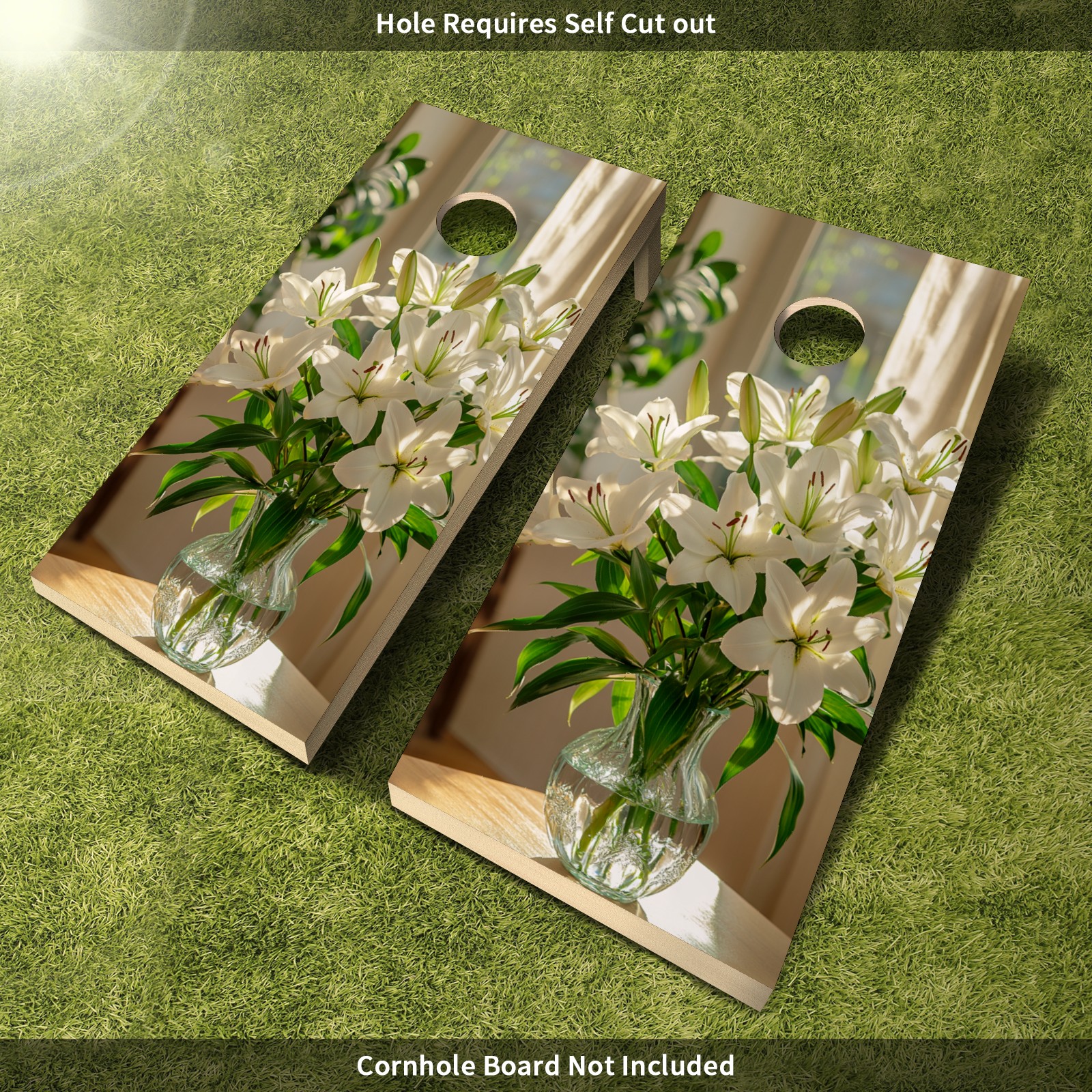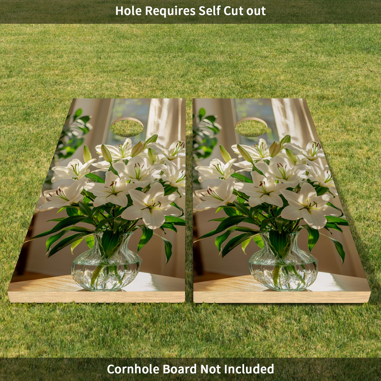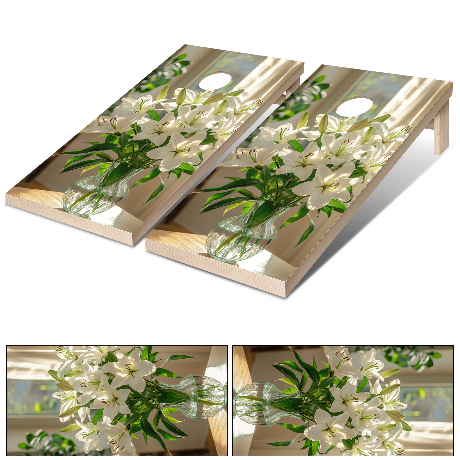Portable 4x2 Cornhole Set with Two-piece Pack Boards - Cornhole Game Sticker Included - Yard Travel Outdoor Toss Board for Adults Outside Activities White Lily Pattern