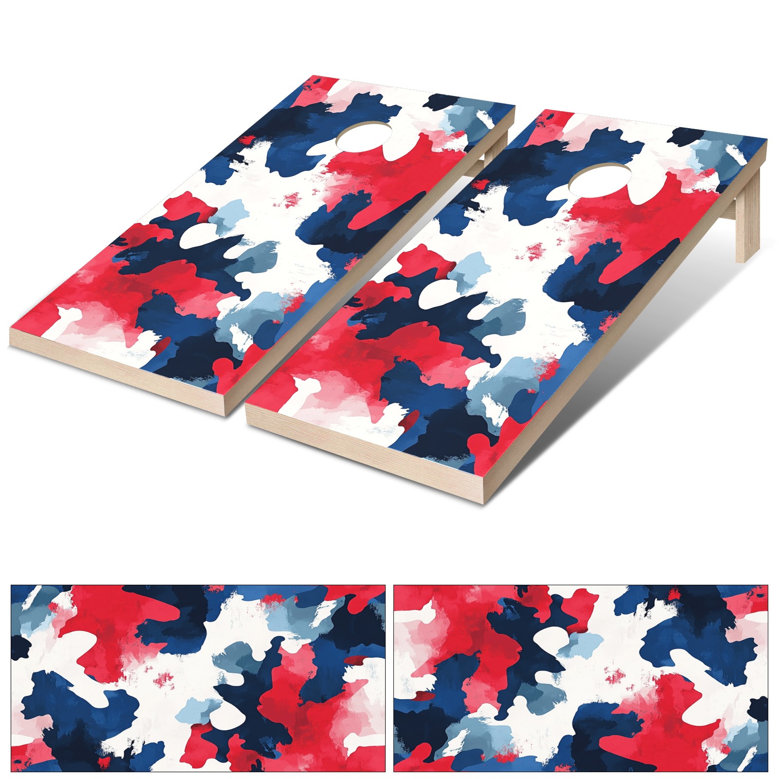 Portable 4x2 Cornhole Set with Two-piece Pack Boards - Cornhole Game Sticker Included - Yard Travel Outdoor Toss Board for Adults Outside Activities Red Blue Camouflage Pattern