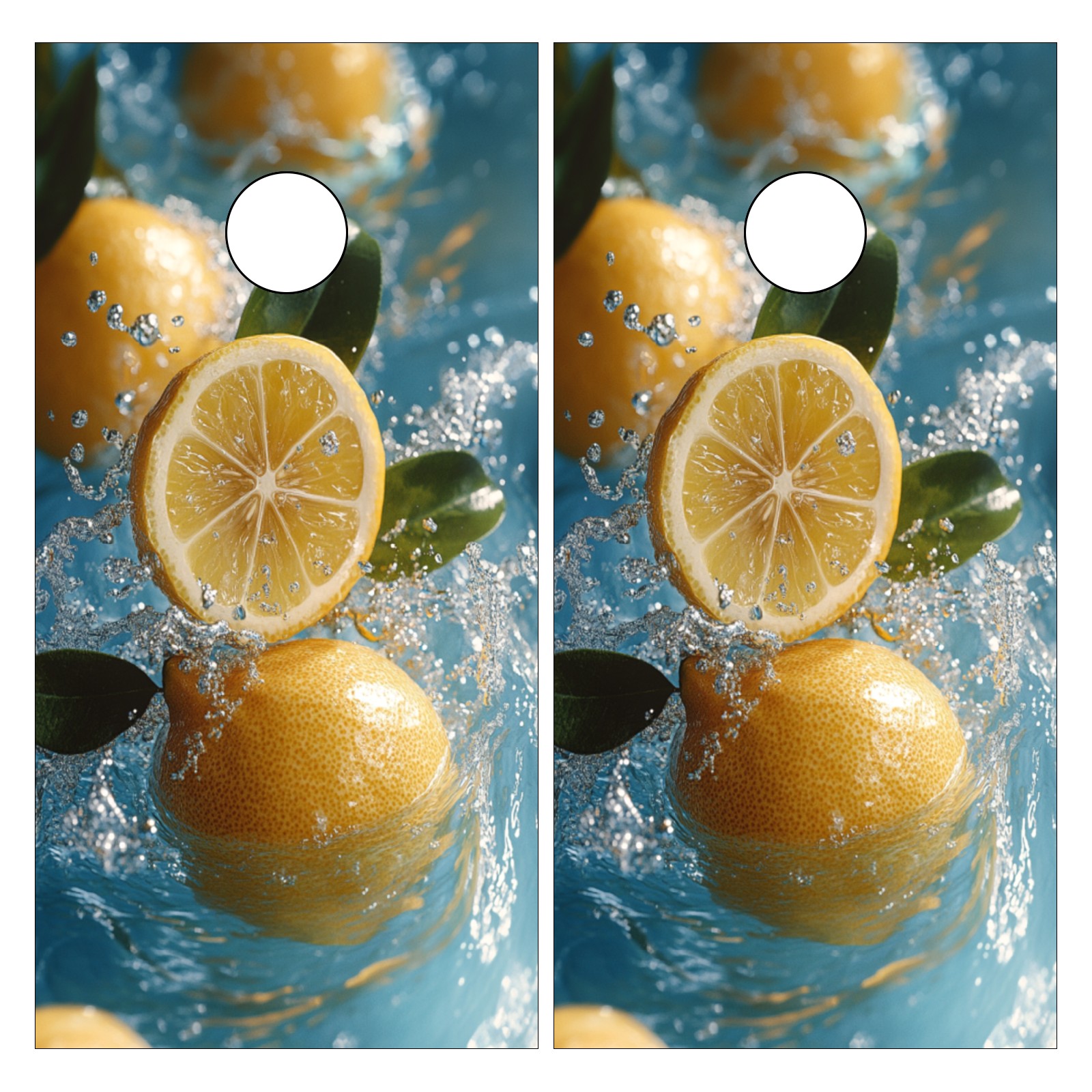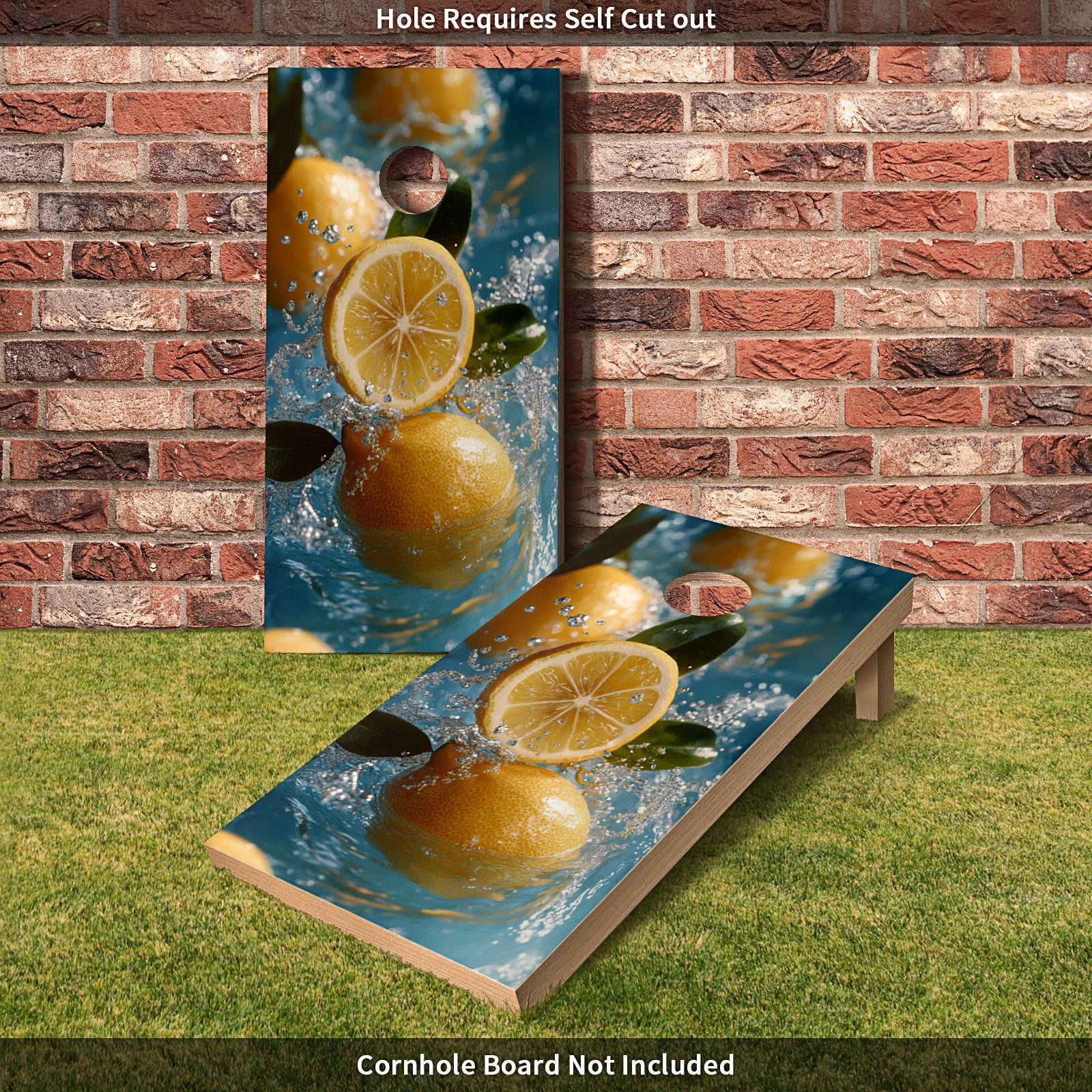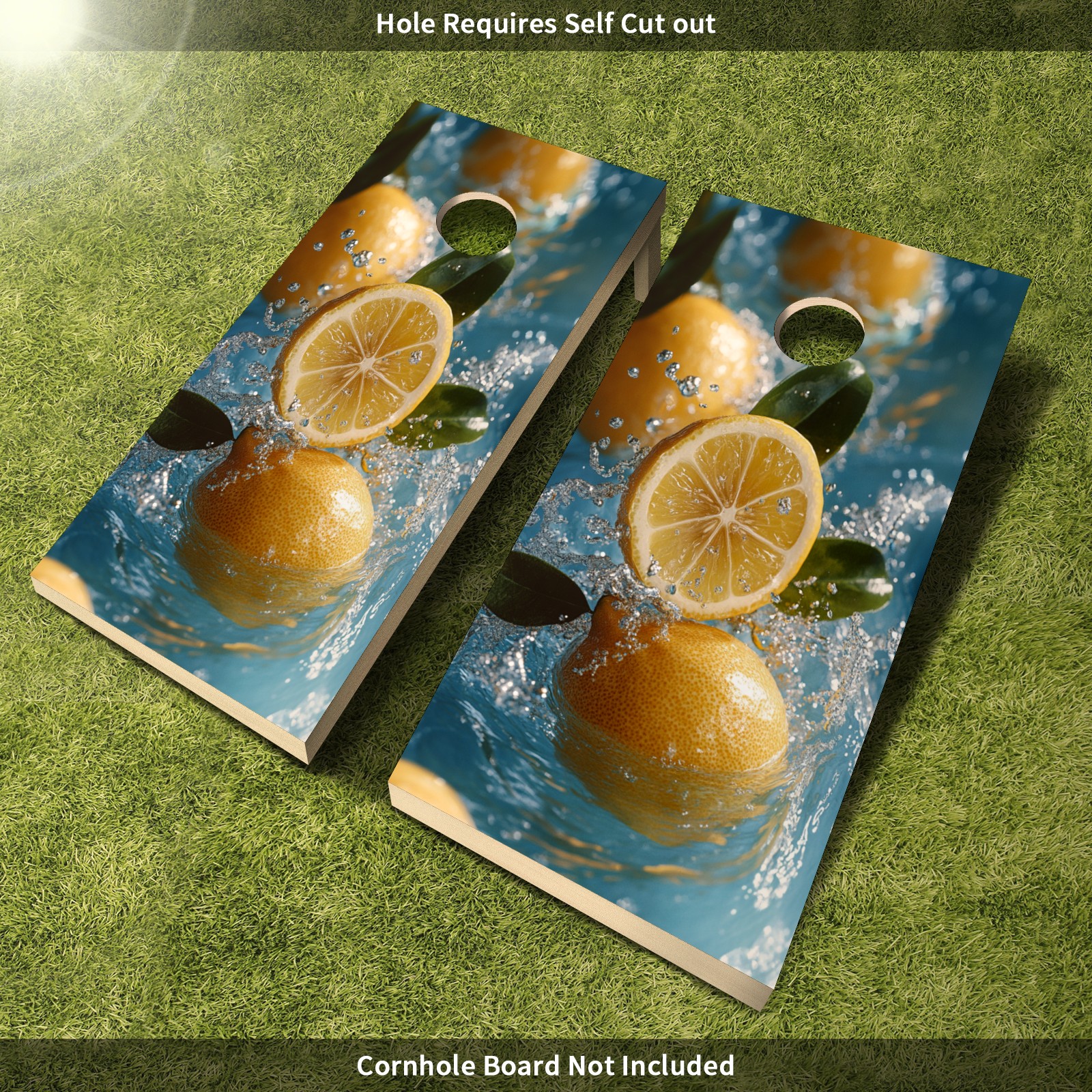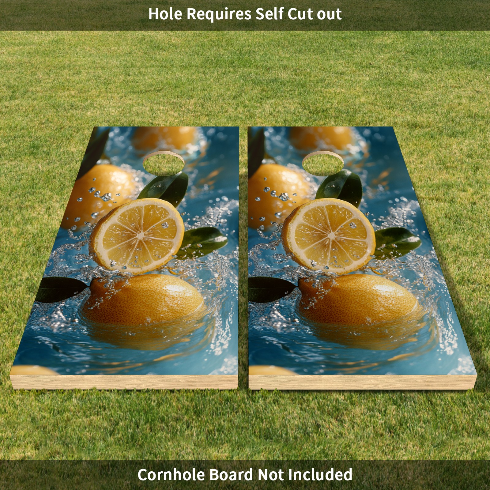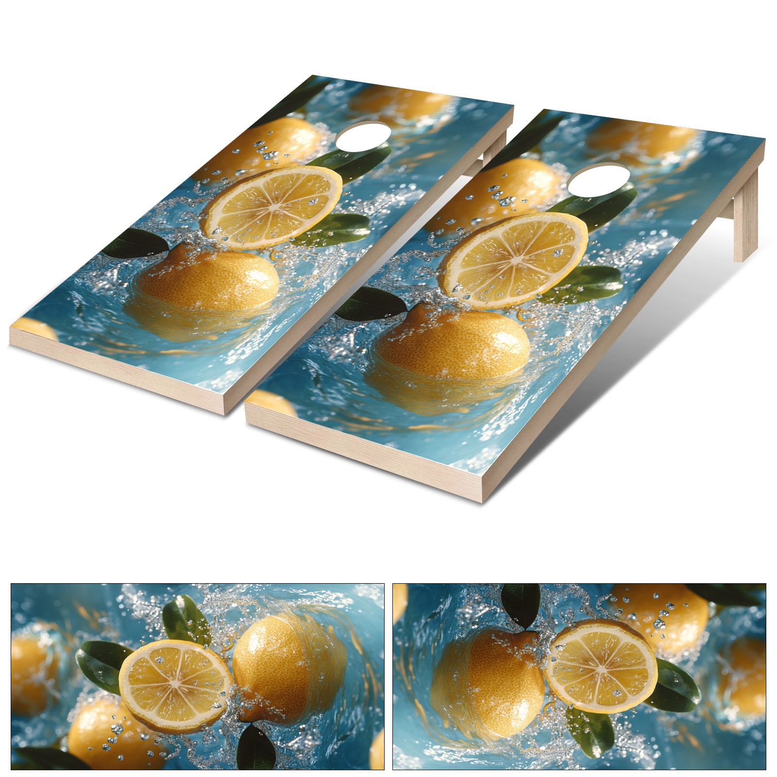Portable 4x2 Cornhole Set with Two-piece Pack Boards - Cornhole Game Sticker Included - Yard Travel Outdoor Toss Board for Adults Outside Activities Lemon Slices Pattern