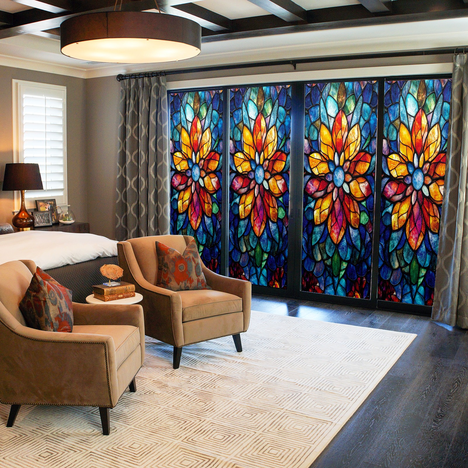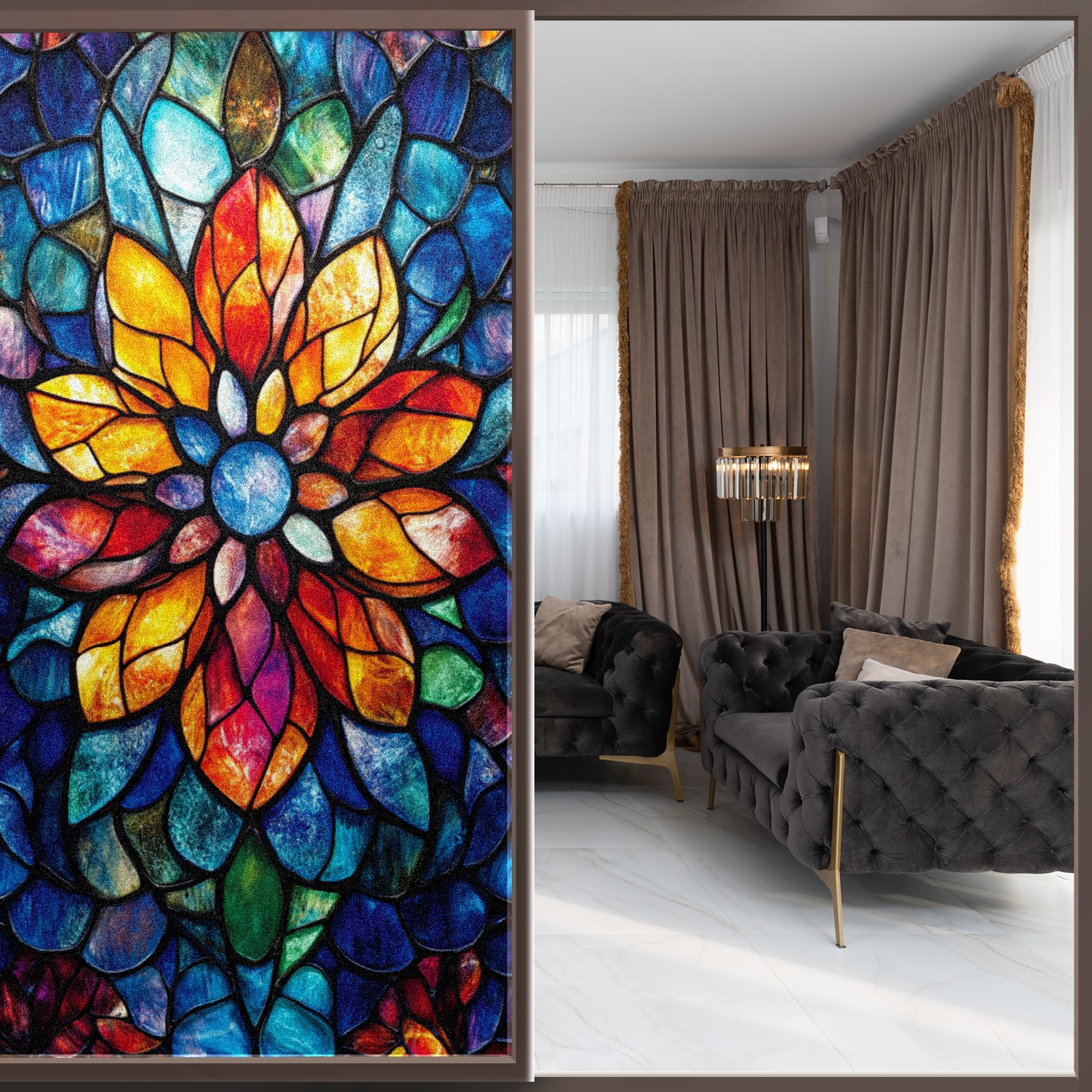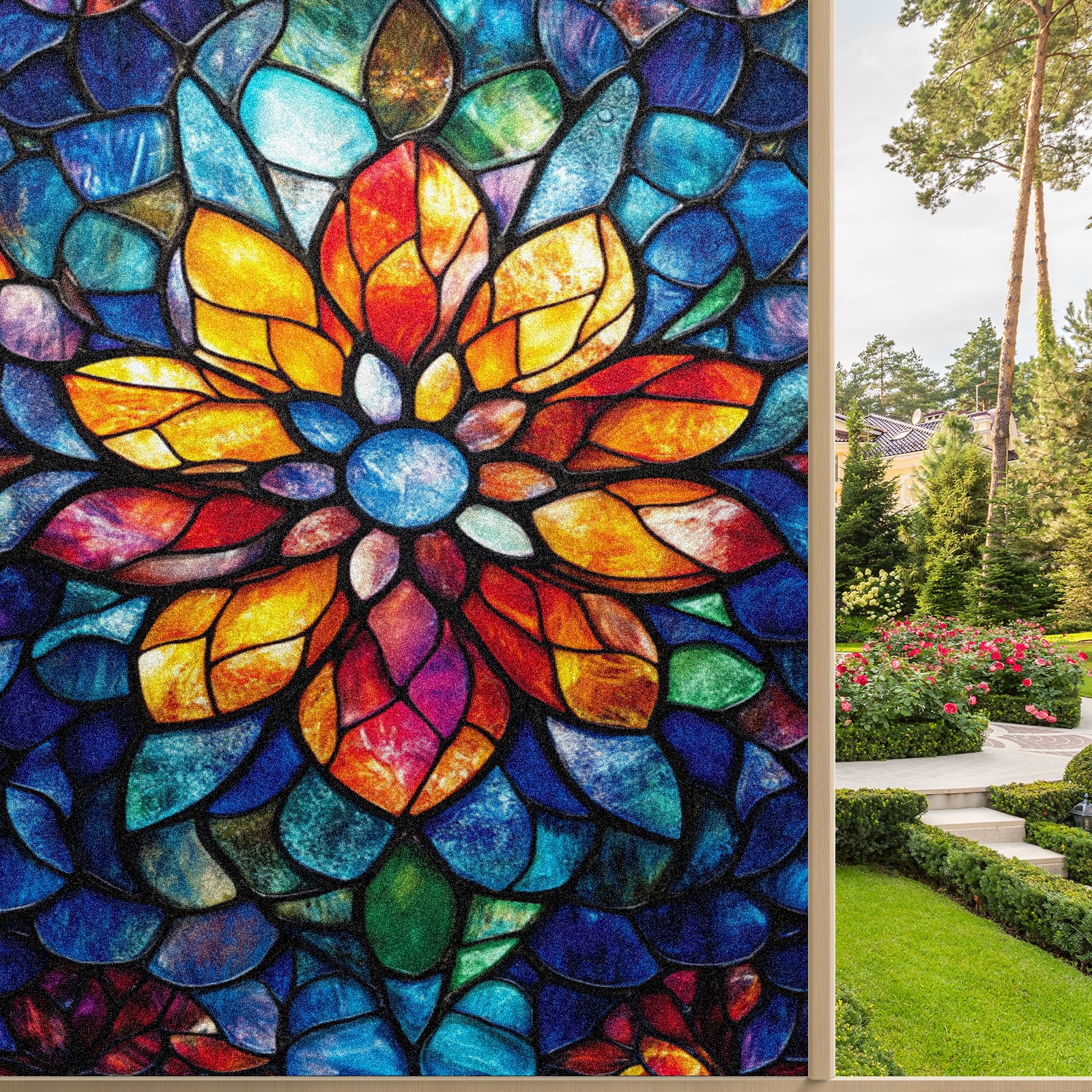 <p>Our stained glass privacy window film combines daytime privacy with soft, natural light, blocking unwanted views without the need for heavy curtains! Made from premium PET material with a single-sided frosted finish, it blocks 90% of UV rays and 86% of infrared rays, effectively protecting you and your furniture. This window film requires no adhesive, is environmentally friendly, and reusable (leaving no residue after removal). Available in six sizes, it's suitable for sliding doors, bathrooms, living rooms, offices, hotels, and more. It's the ideal choice for creating a bright, private, and secure space!</p>