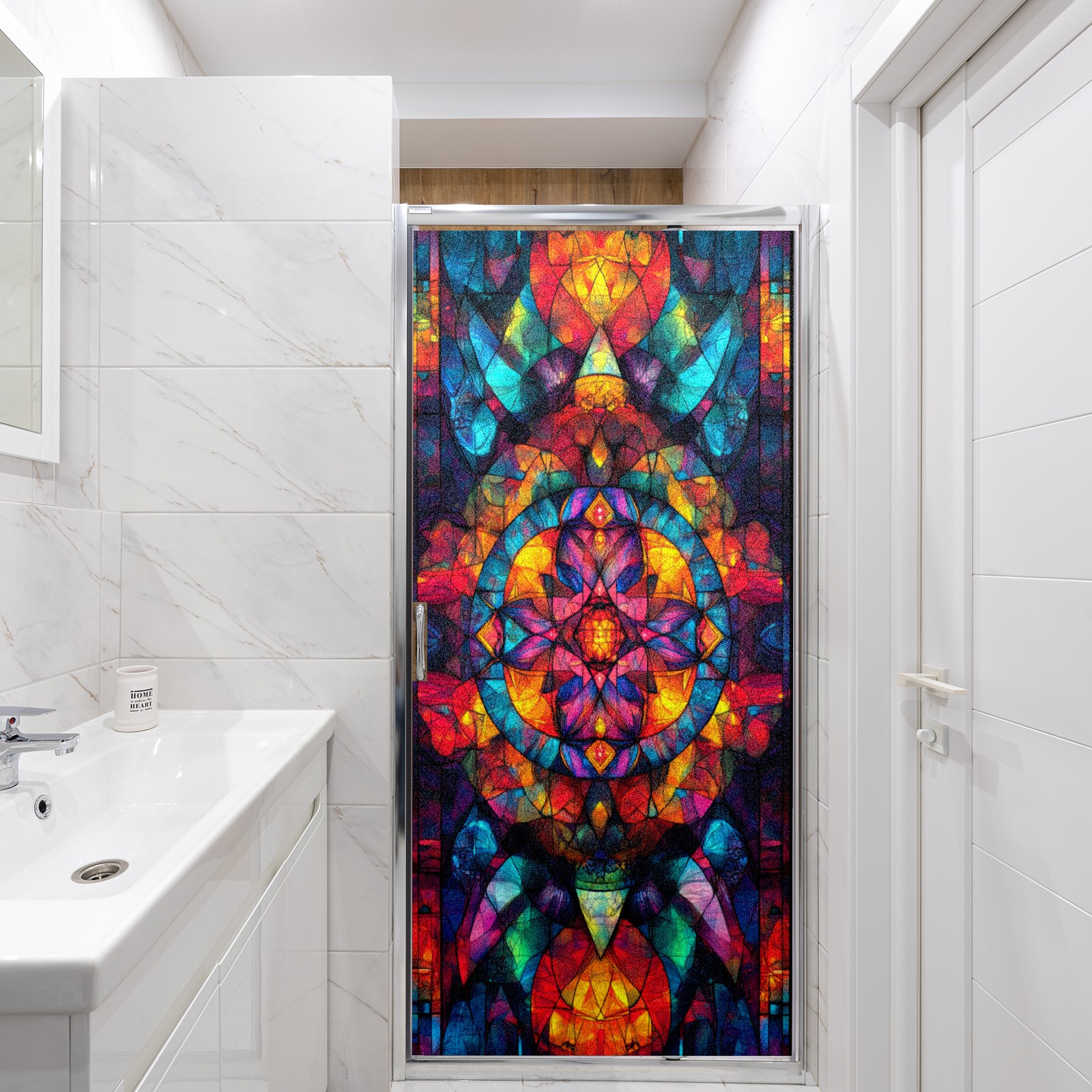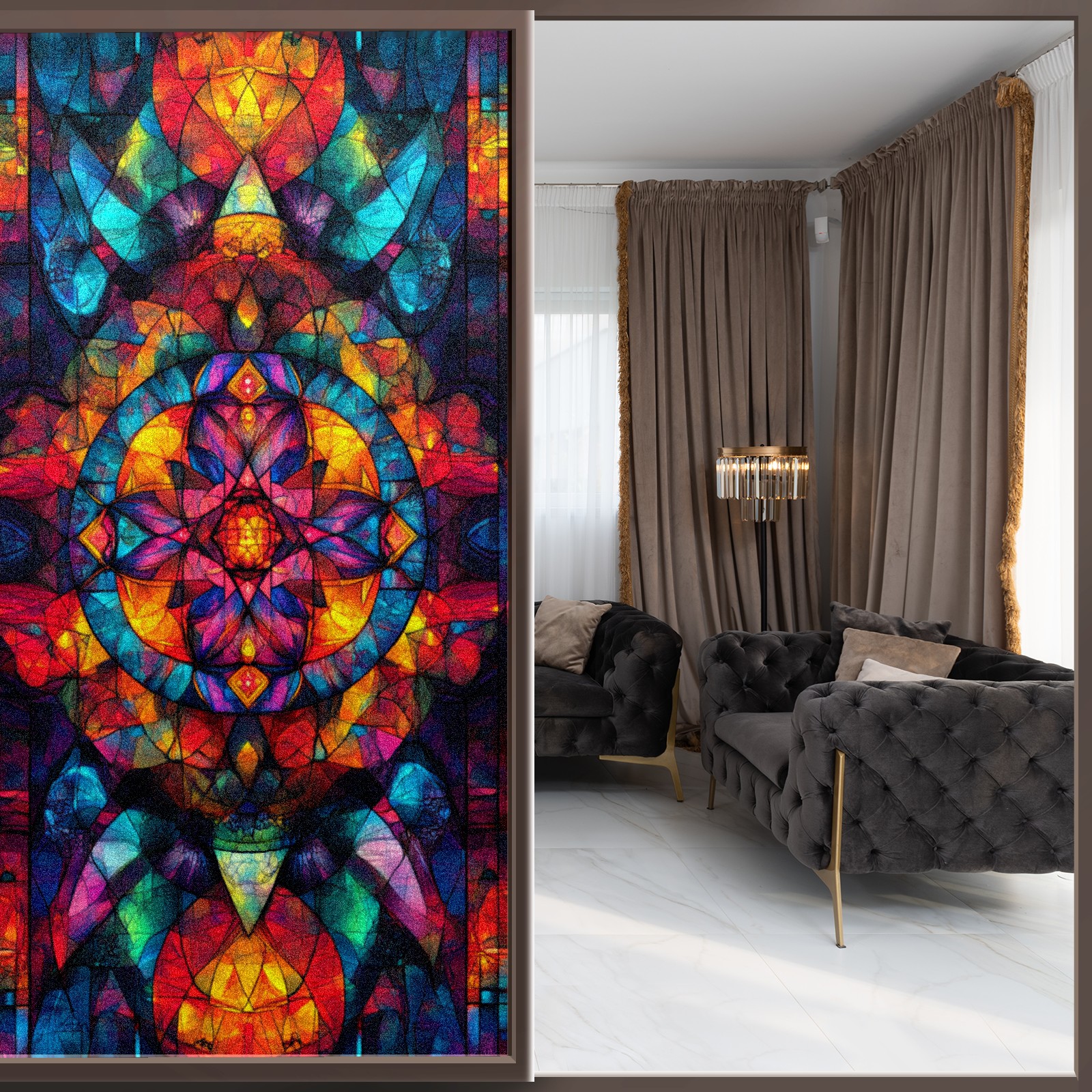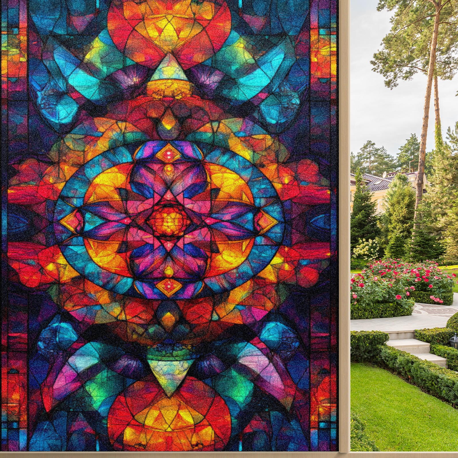 Window Privacy Colored Iris Decorative Window Stickers Colorful Mandala Suitable Home & Office Anti-Sunlight Stickers 35.4x78.7in
