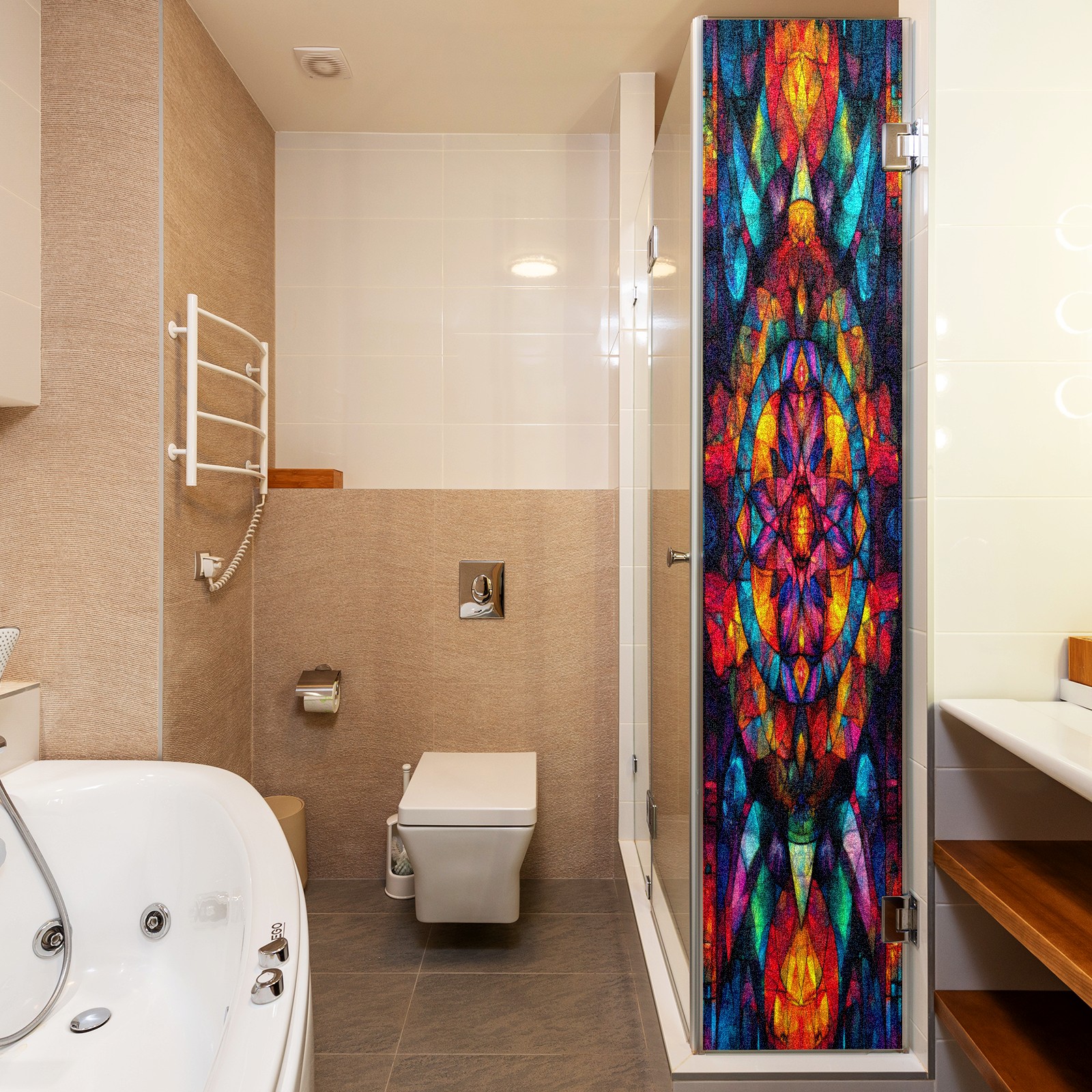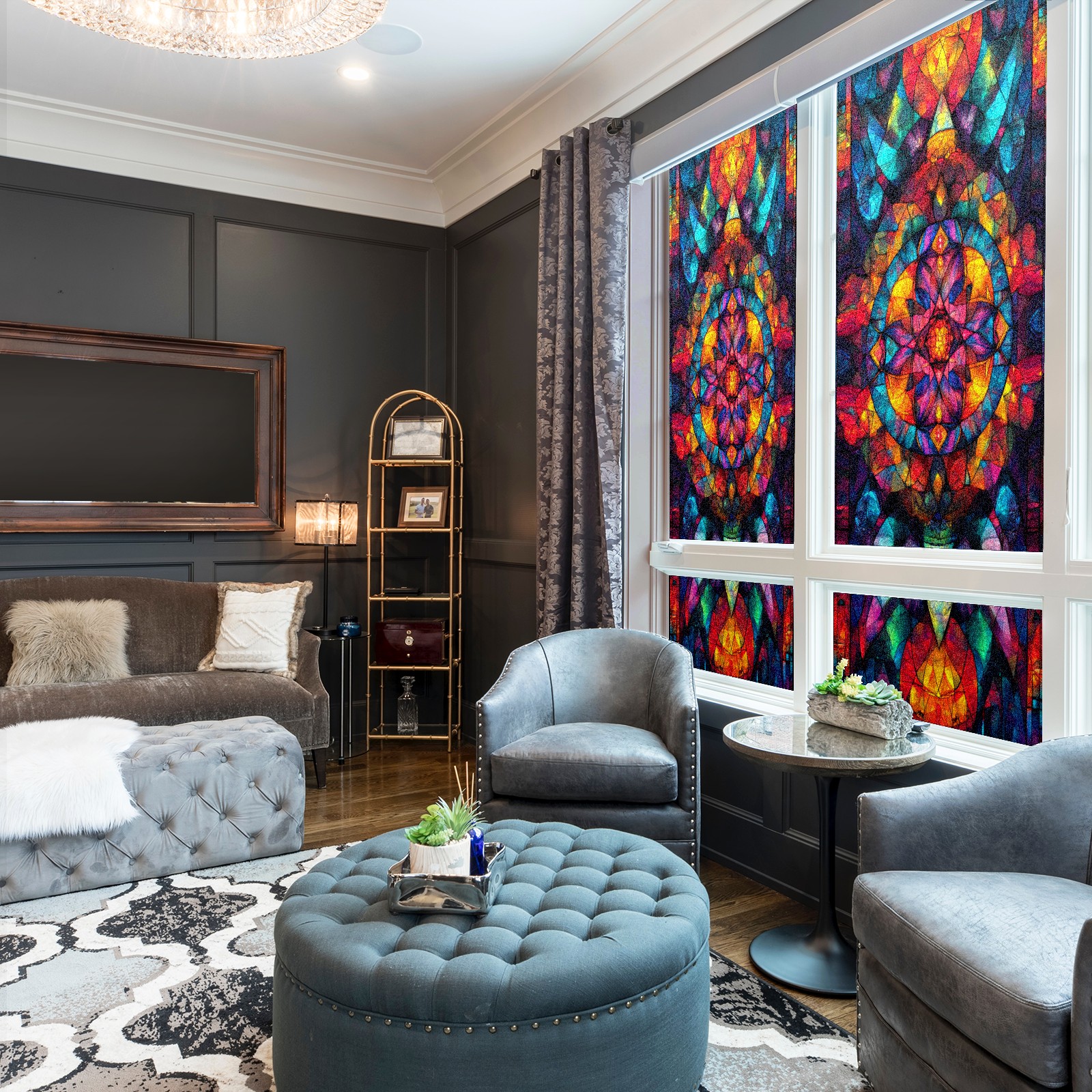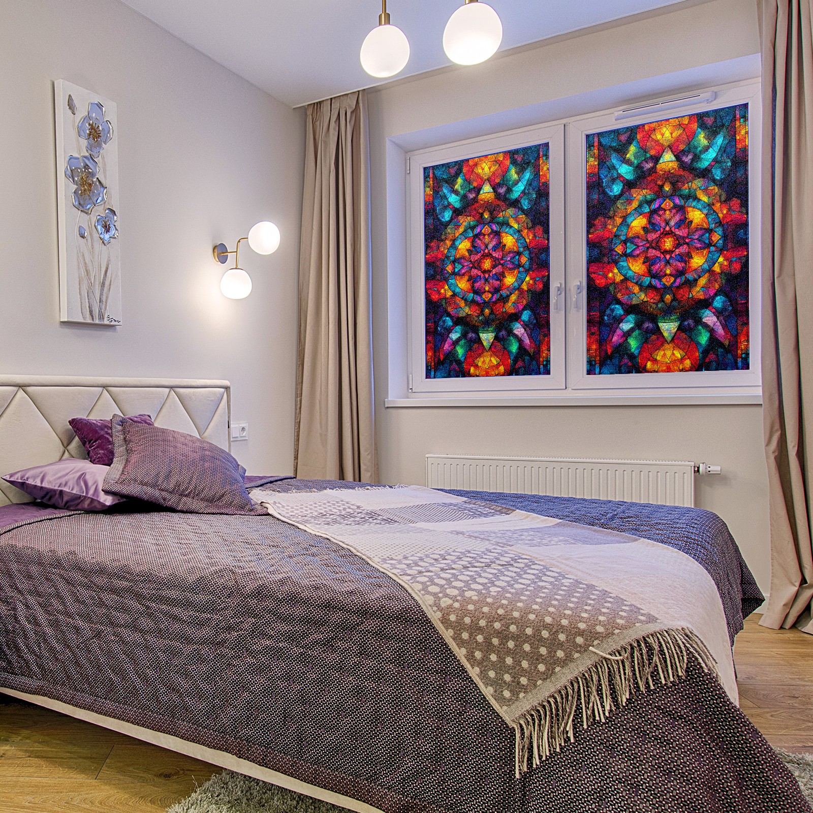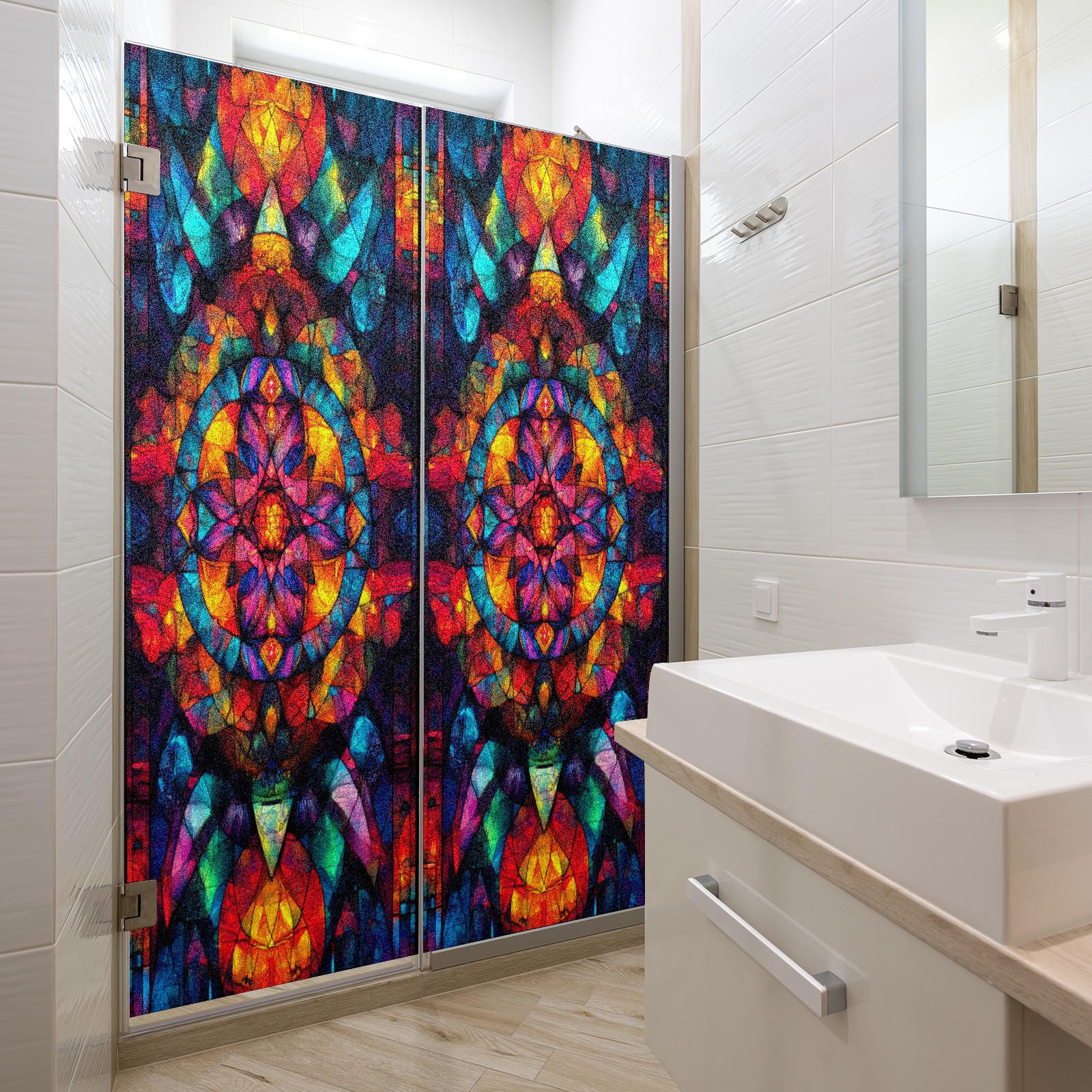 Window Privacy Colored Iris Decorative Window Stickers Colorful Mandala Suitable Home & Office Anti-Sunlight Stickers 35.4x78.7in