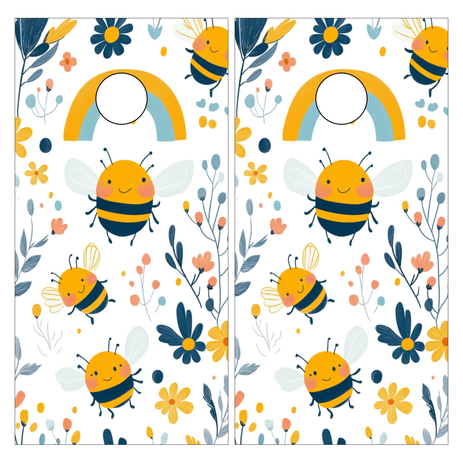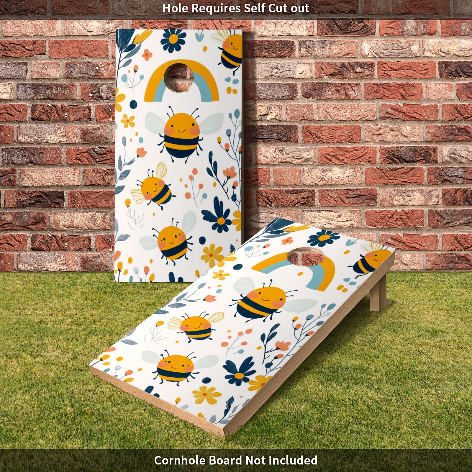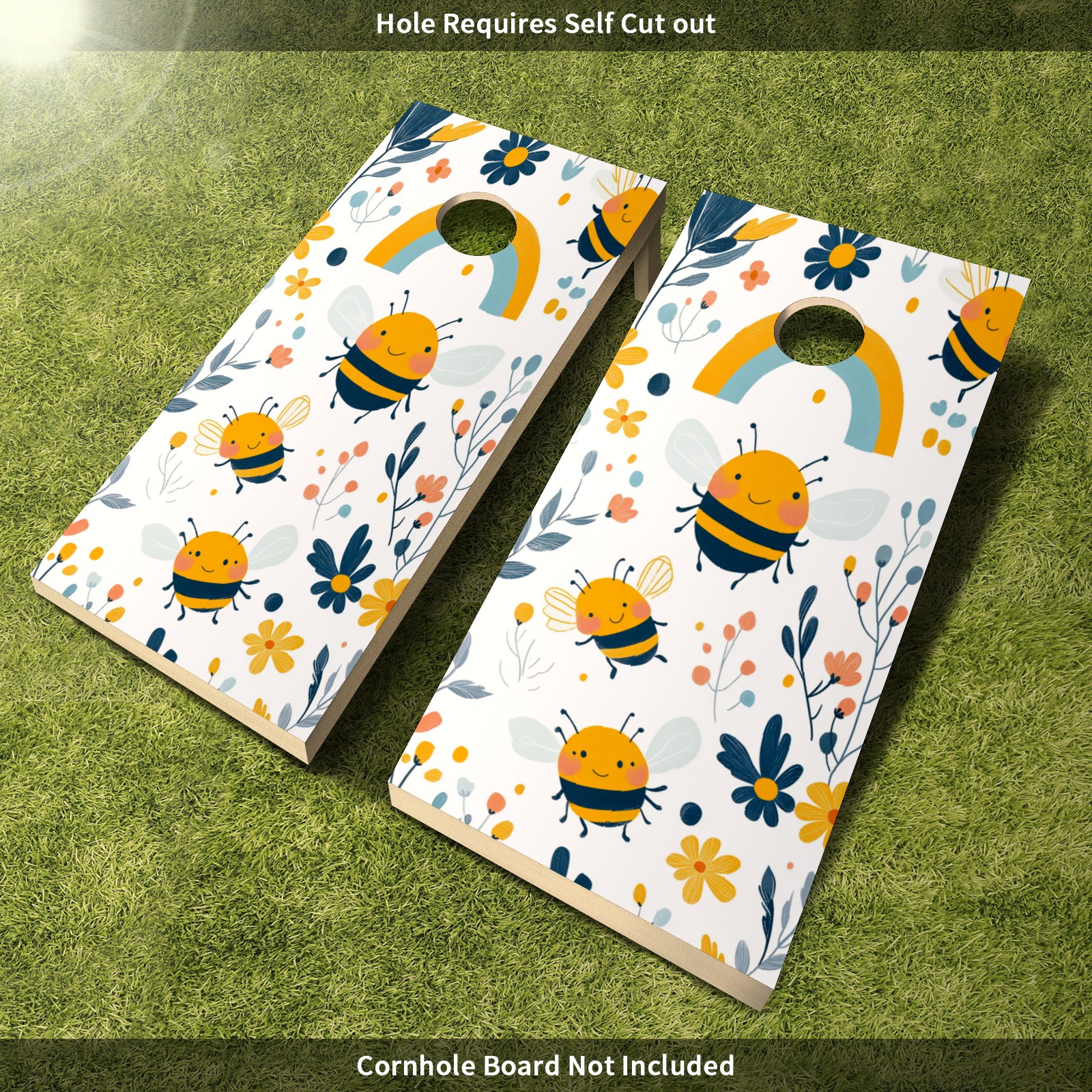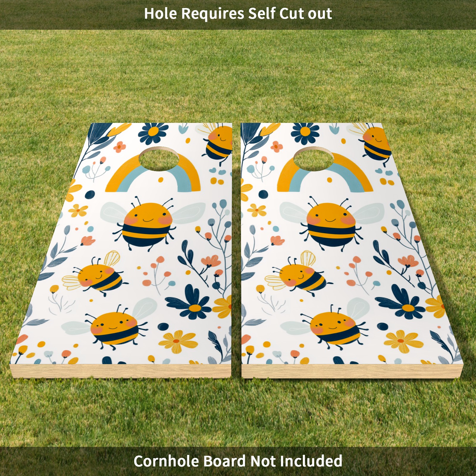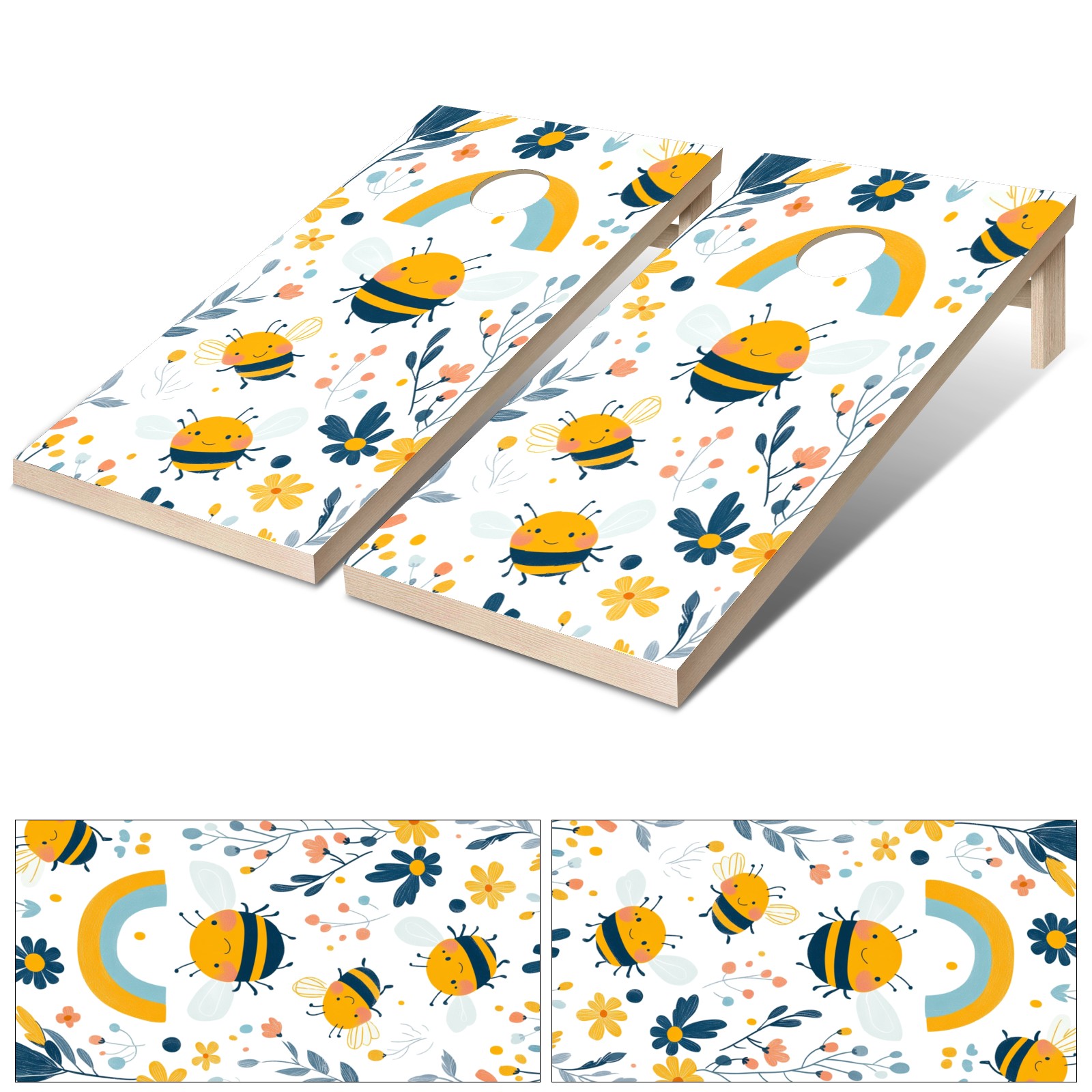 Portable 4x2 Cornhole Set with Two-piece Pack Boards - Cornhole Game Sticker Included - Yard Travel Outdoor Toss Board for Adults Outside Activities Cartoon Bee Pattern