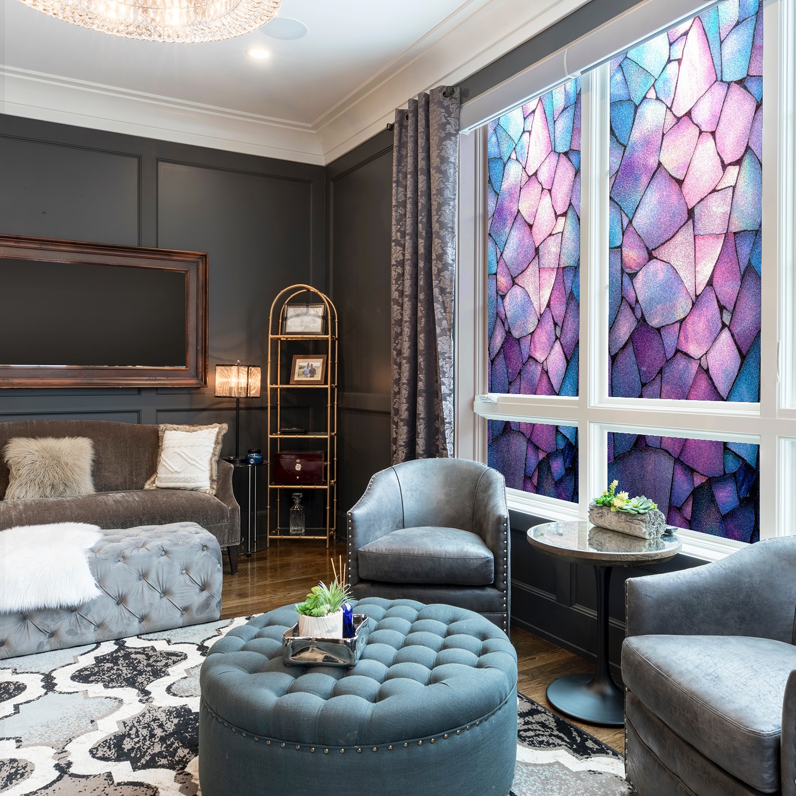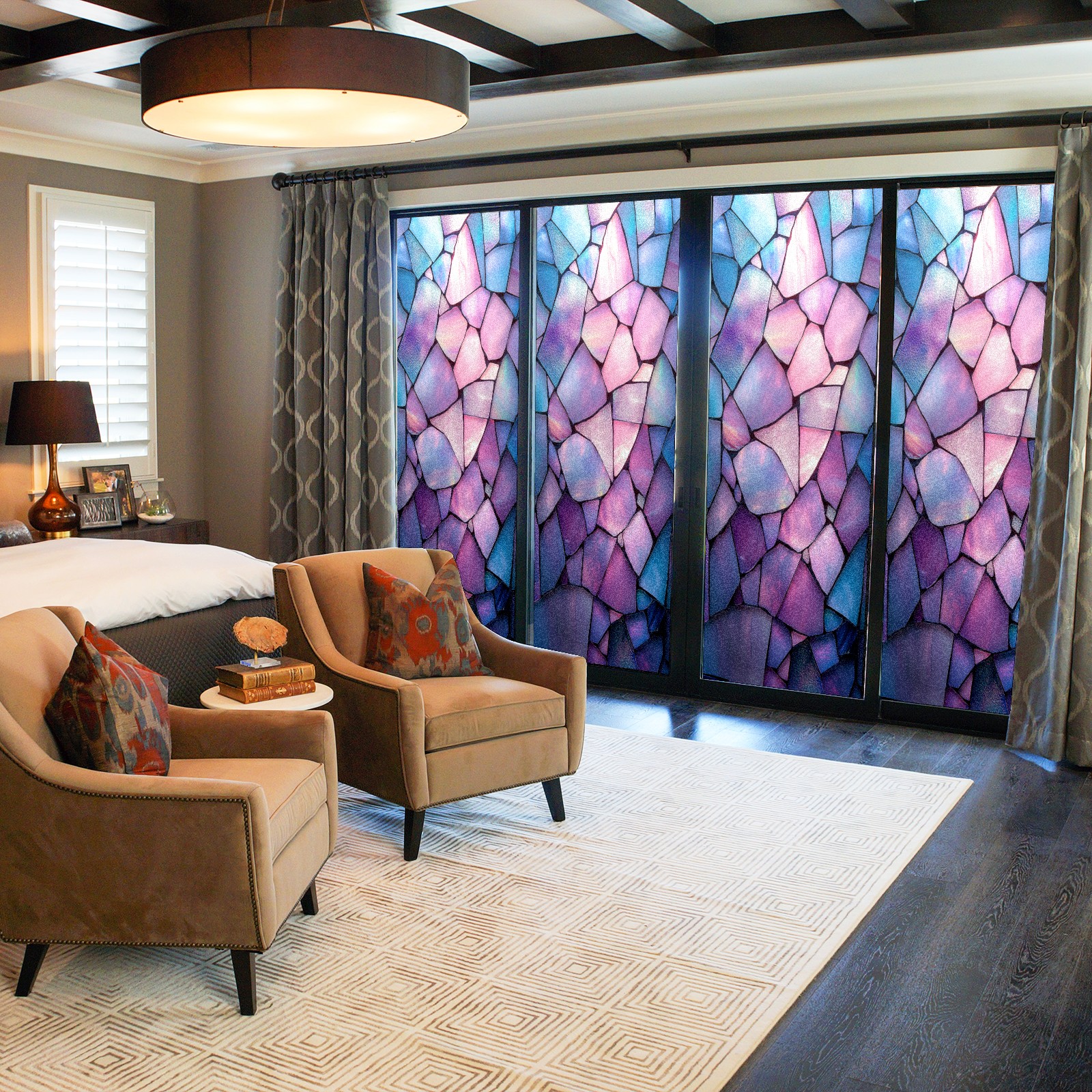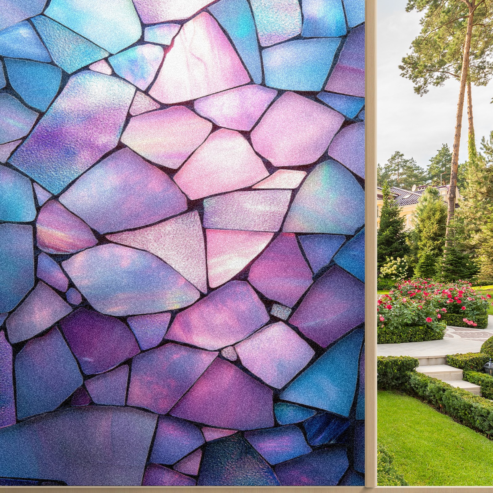 • <p>Our stained glass privacy window film combines daytime privacy with soft, natural light, blocking unwanted views without the need for heavy curtains! Made from premium PET material with a single-sided frosted finish, it blocks 90% of UV rays and 86% of infrared rays, effectively protecting you and your furniture. This window film requires no adhesive, is environmentally friendly, and reusable (leaving no residue after removal). Available in six sizes, it's suitable for sliding doors, bathrooms, living rooms, offices, hotels, and more. It's the ideal choice for creating a bright, private, and secure space!</p>