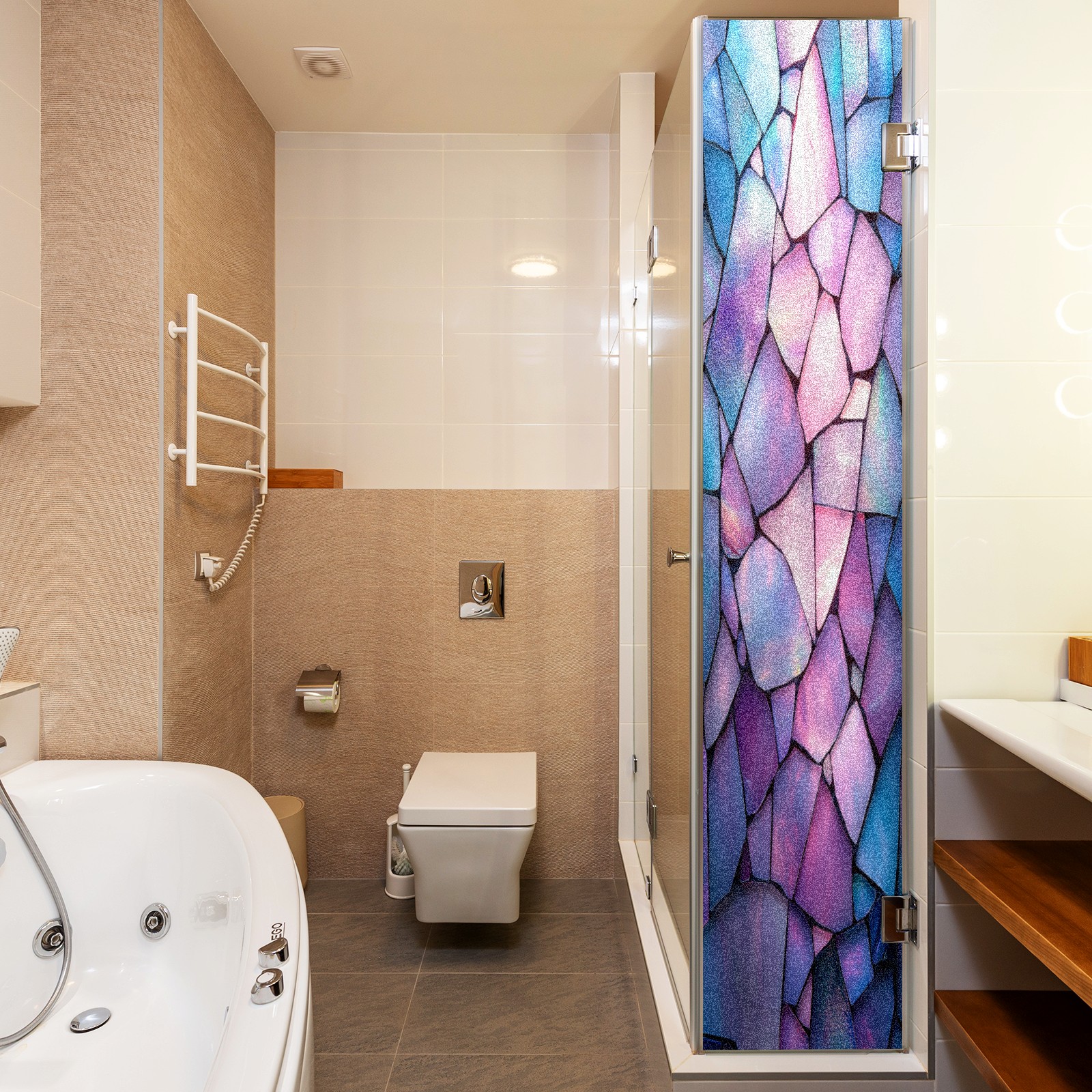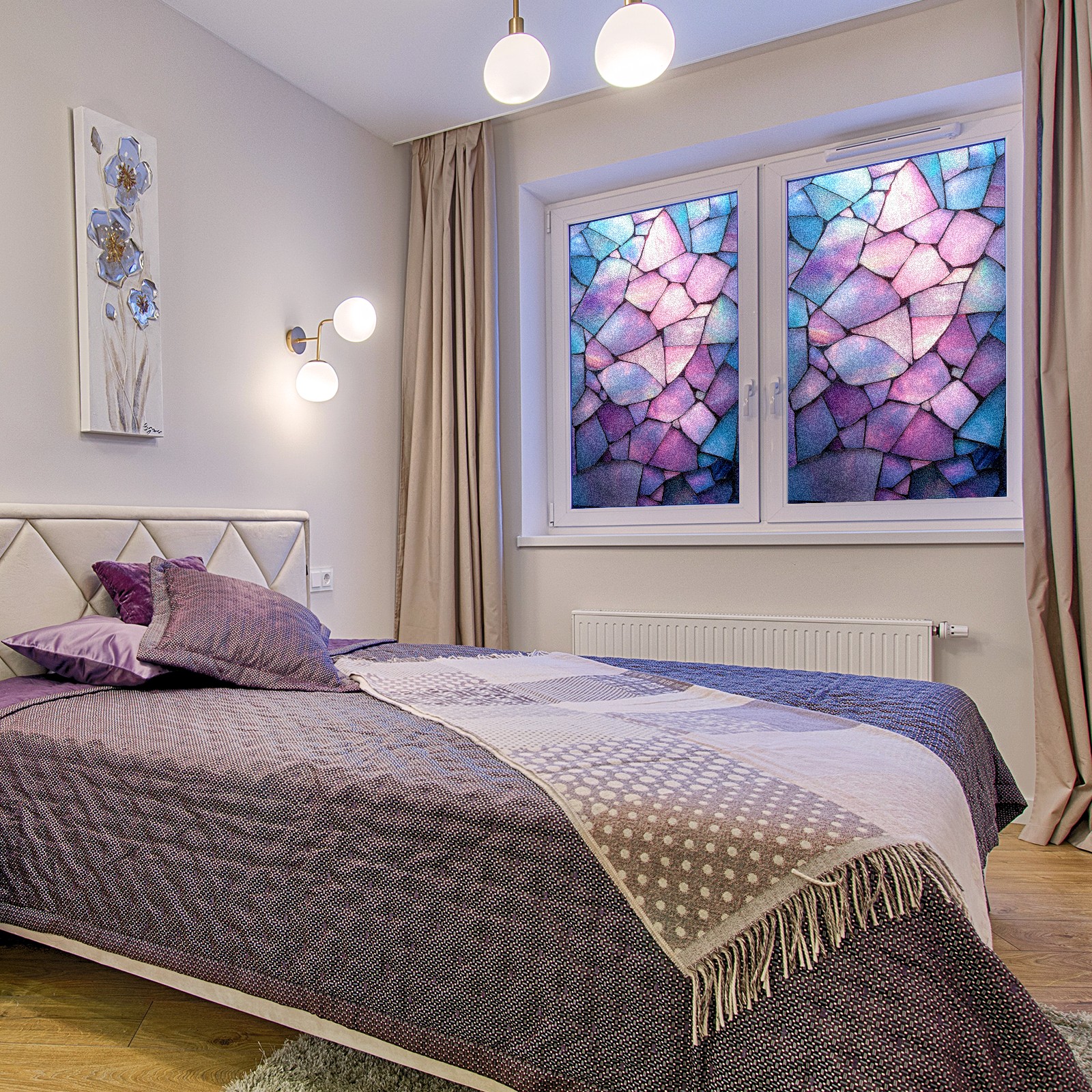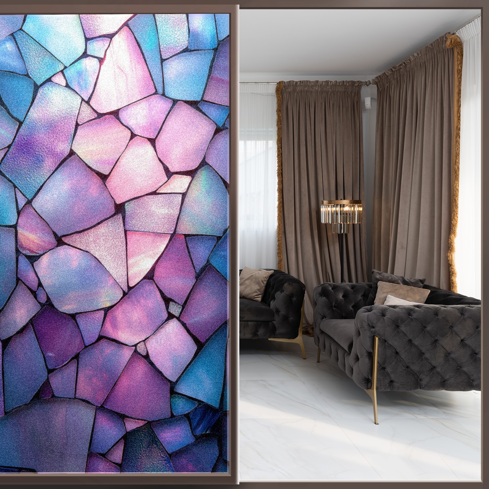 <p>Our stained glass privacy window film combines daytime privacy with soft, natural light, blocking unwanted views without the need for heavy curtains! Made from premium PET material with a single-sided frosted finish, it blocks 90% of UV rays and 86% of infrared rays, effectively protecting you and your furniture. This window film requires no adhesive, is environmentally friendly, and reusable (leaving no residue after removal). Available in six sizes, it's suitable for sliding doors, bathrooms, living rooms, offices, hotels, and more. It's the ideal choice for creating a bright, private, and secure space!</p>