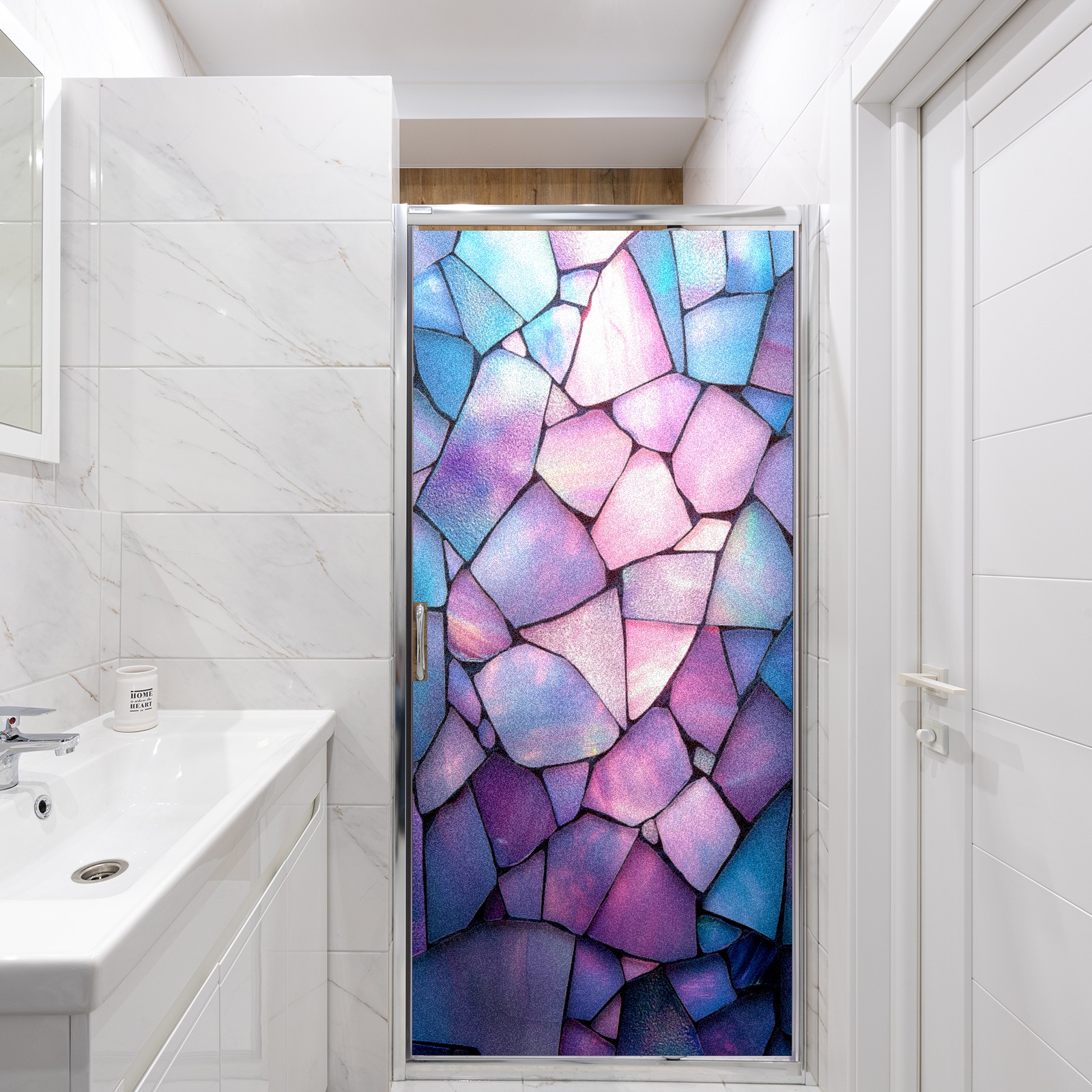 Window Privacy Colored Iris Decorative Window Stickers Amethyst Cracks Suitable Home & Office Anti-Sunlight Stickers 17.7x78.7in