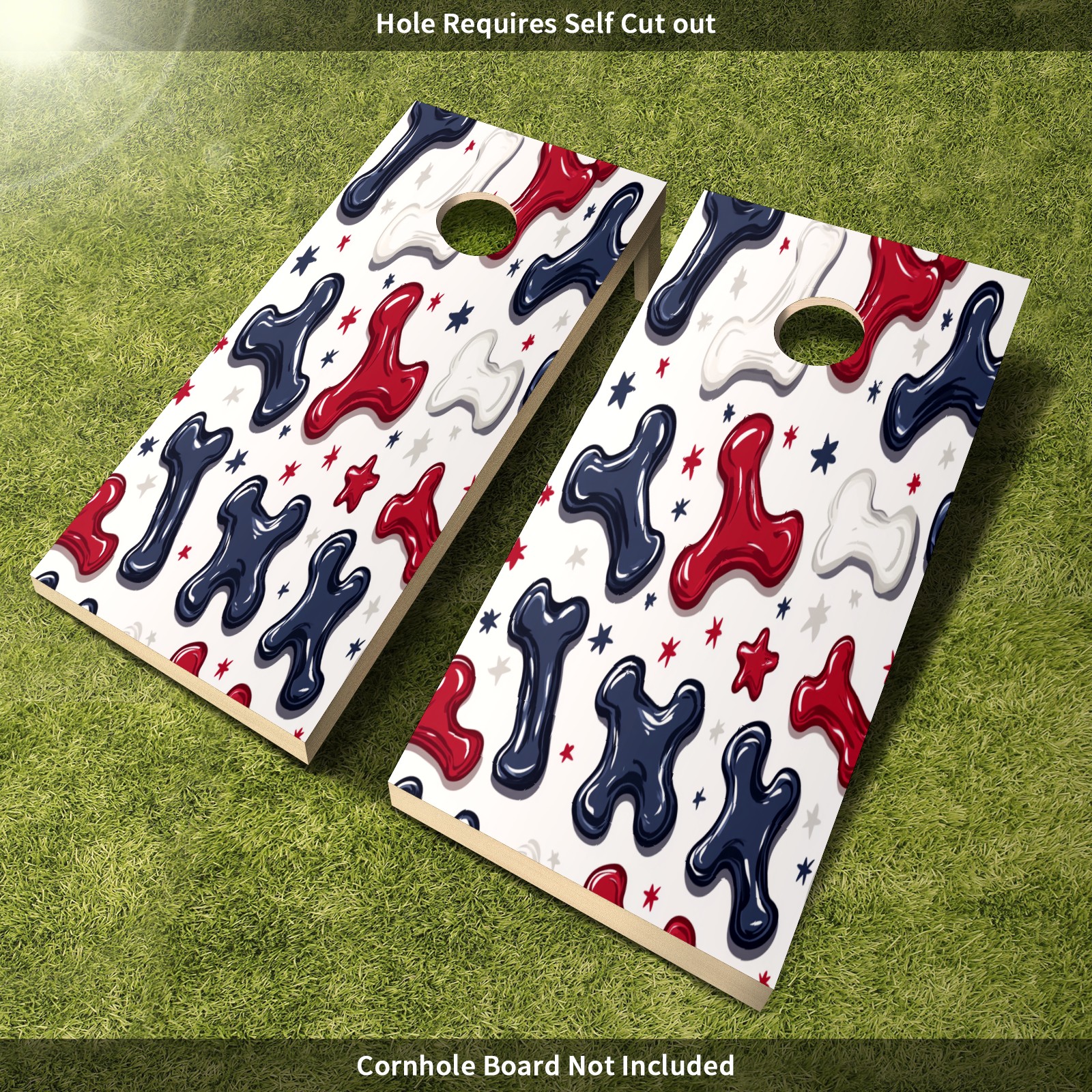 • <p>These corn hole game stickers are made of high-quality PET material with a single-sided printed design. Each pack contains 2 stickers, measuring 61cm x 122cm (24in x 48in/2ft x 4ft), and comes with adhesive backing for easy installation. Specifically designed for decorating the surface of corn hole game boxes, they instantly enhance the gaming experience and visual appeal.</p> <p>Installation is simple and convenient: Before use, please measure the dimensions of your corn hole game box, ensuring the surface is clean and free of dust or rough edges. Simply peel off the adhesive backing and apply directly. The hole opening may need to be cut to size as needed.</p> <p>Suitable for all ages and ideal for various occasions: family events, colleague gatherings, dorm parties, lounge entertainment, bar decorations, beach parties, fraternity and sorority events, holiday celebrations, live concerts, picnics, camping trips, and club entertainment, etc.</p>