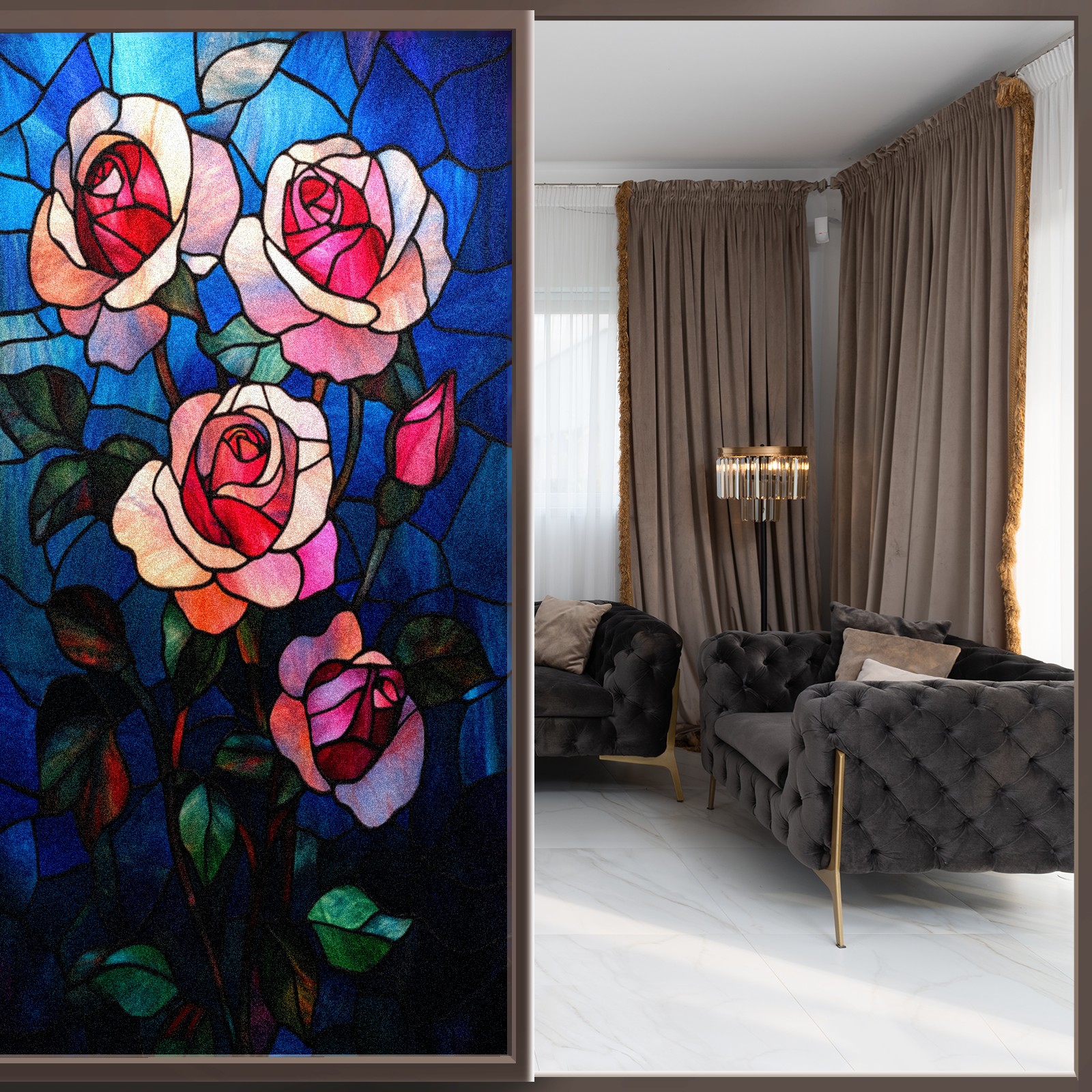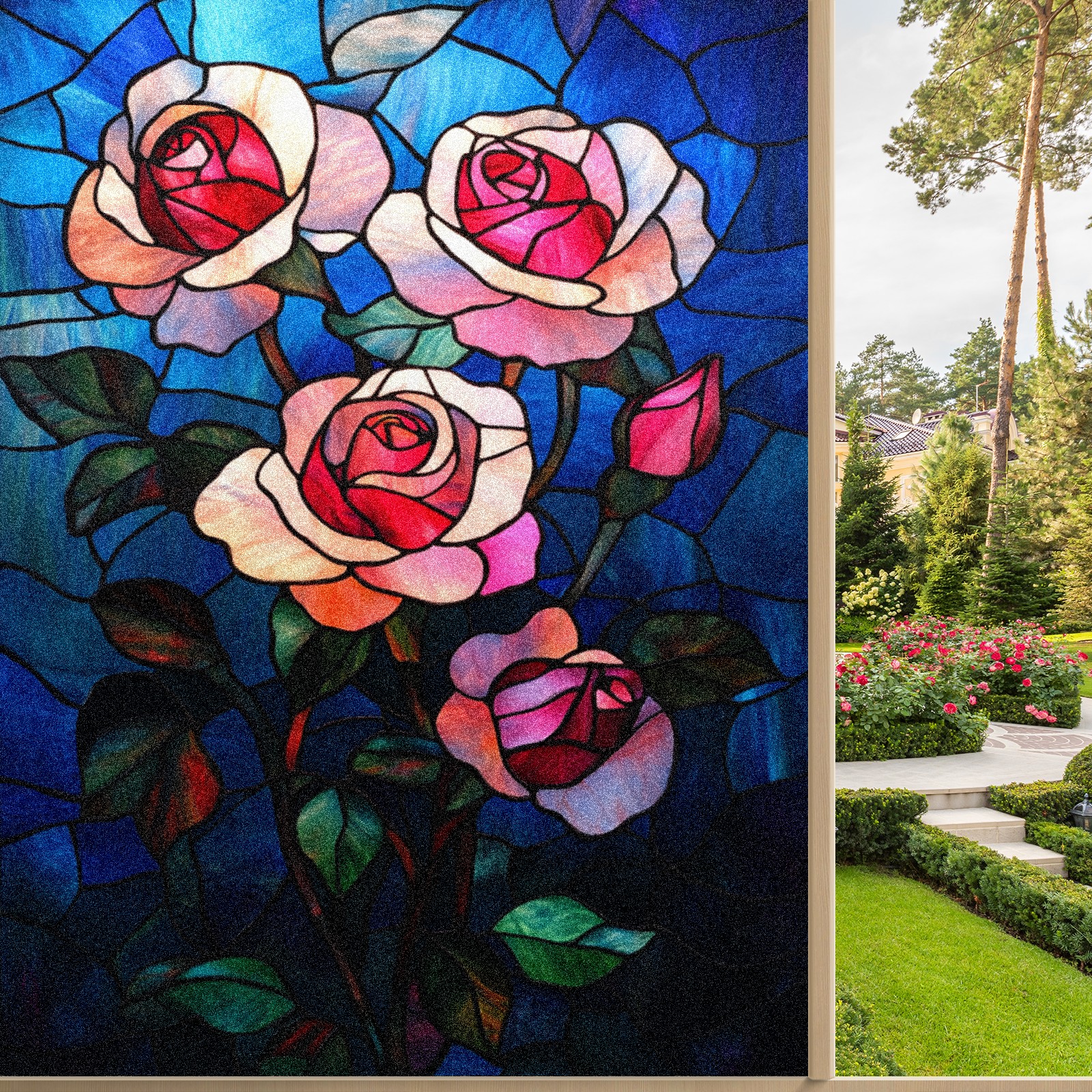 <p>Our stained glass privacy window film combines daytime privacy with soft, natural light, blocking unwanted views without the need for heavy curtains! Made from premium PET material with a single-sided frosted finish, it blocks 90% of UV rays and 86% of infrared rays, effectively protecting you and your furniture. This window film requires no adhesive, is environmentally friendly, and reusable (leaving no residue after removal). Available in six sizes, it's suitable for sliding doors, bathrooms, living rooms, offices, hotels, and more. It's the ideal choice for creating a bright, private, and secure space!</p>