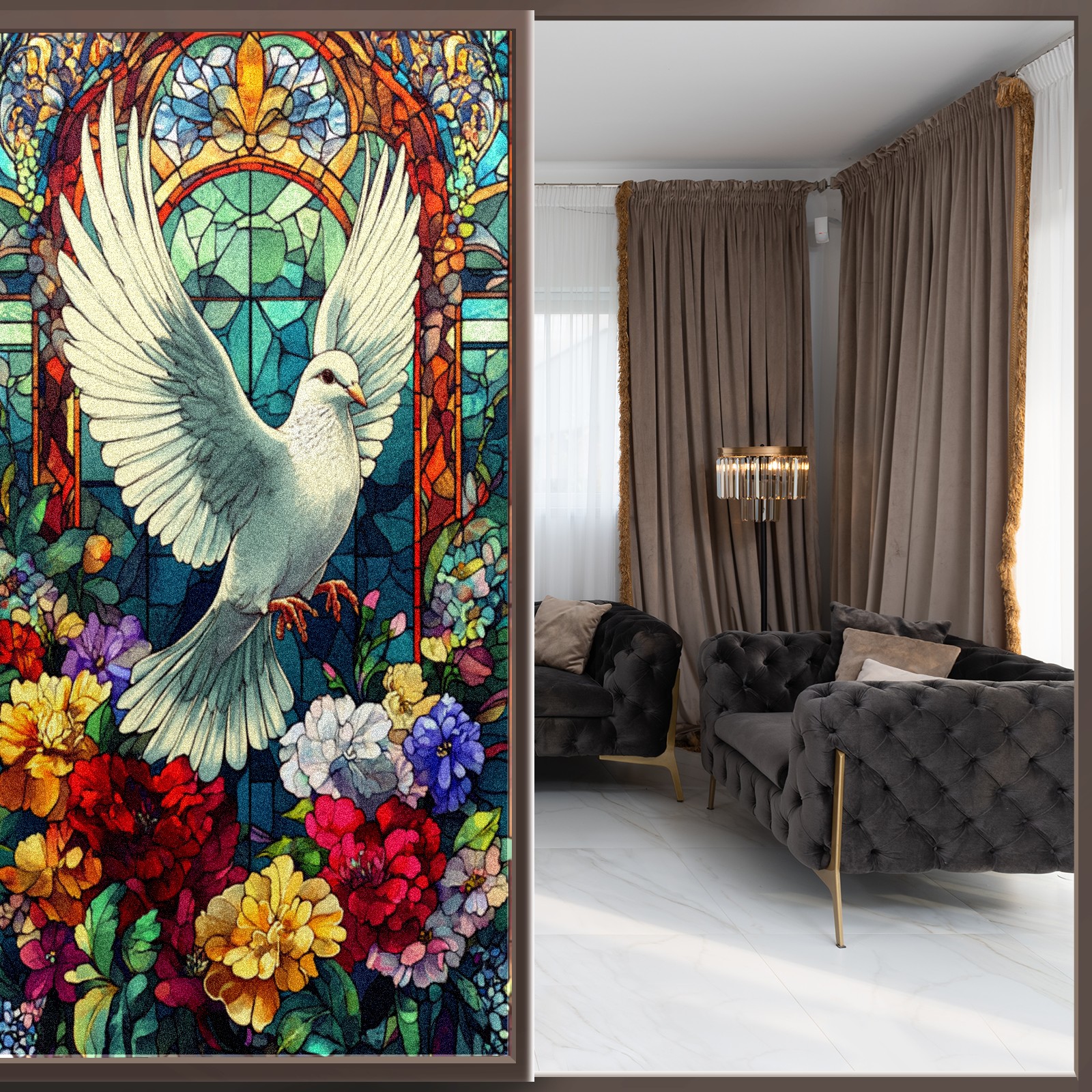 <p>Our stained glass privacy window film combines daytime privacy with soft, natural light, blocking unwanted views without the need for heavy curtains! Made from premium PET material with a single-sided frosted finish, it blocks 90% of UV rays and 86% of infrared rays, effectively protecting you and your furniture. This window film requires no adhesive, is environmentally friendly, and reusable (leaving no residue after removal). Available in six sizes, it's suitable for sliding doors, bathrooms, living rooms, offices, hotels, and more. It's the ideal choice for creating a bright, private, and secure space!</p>