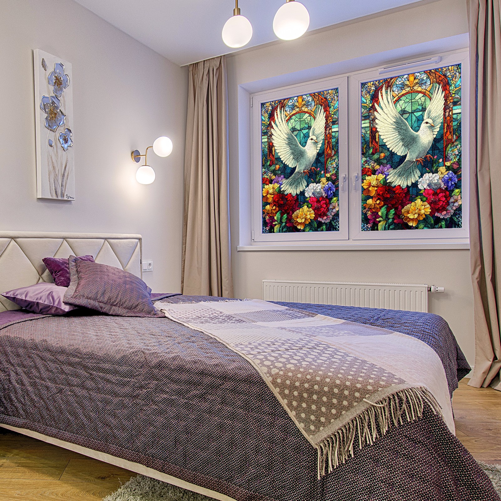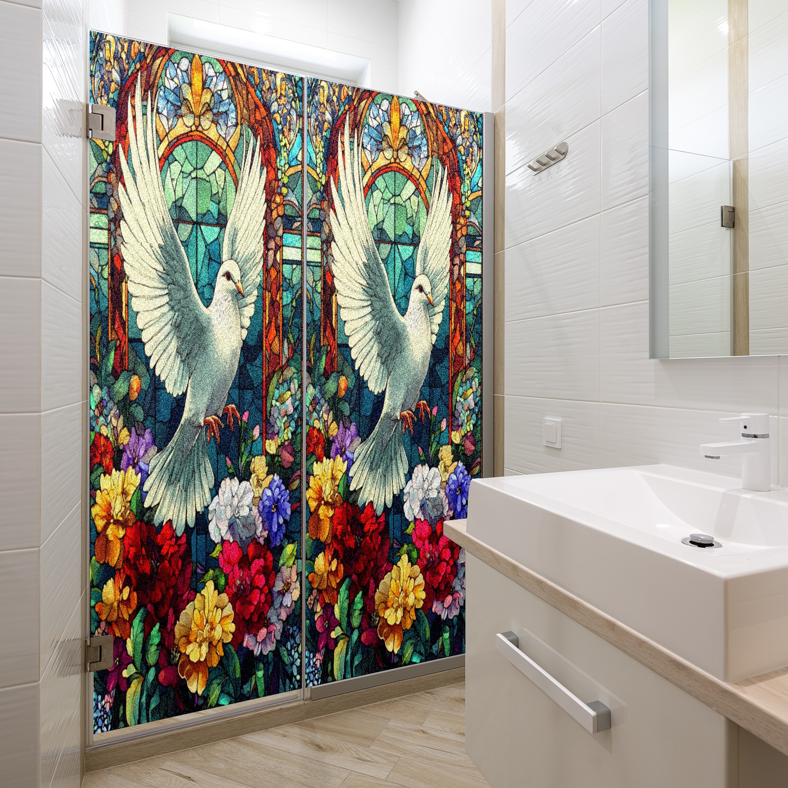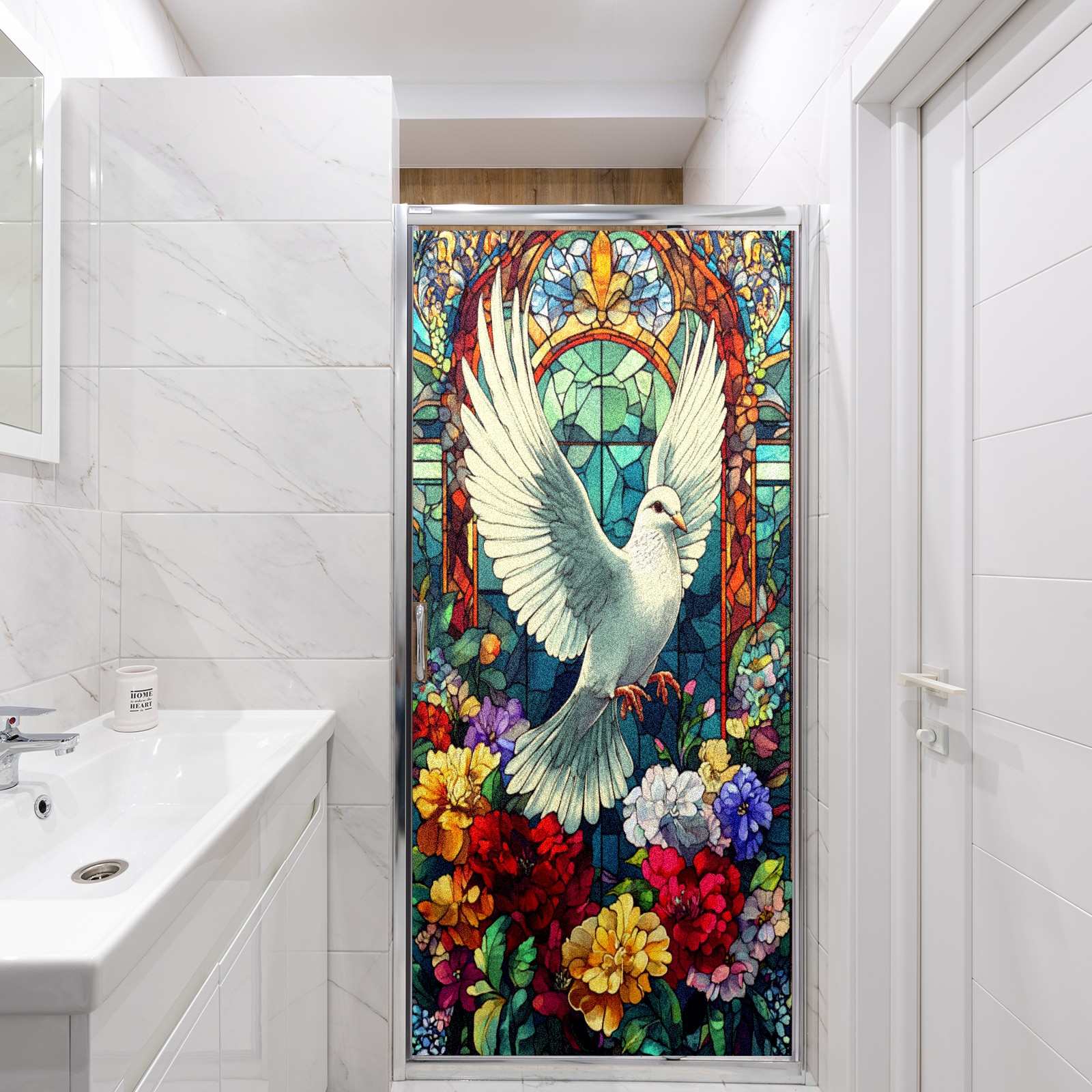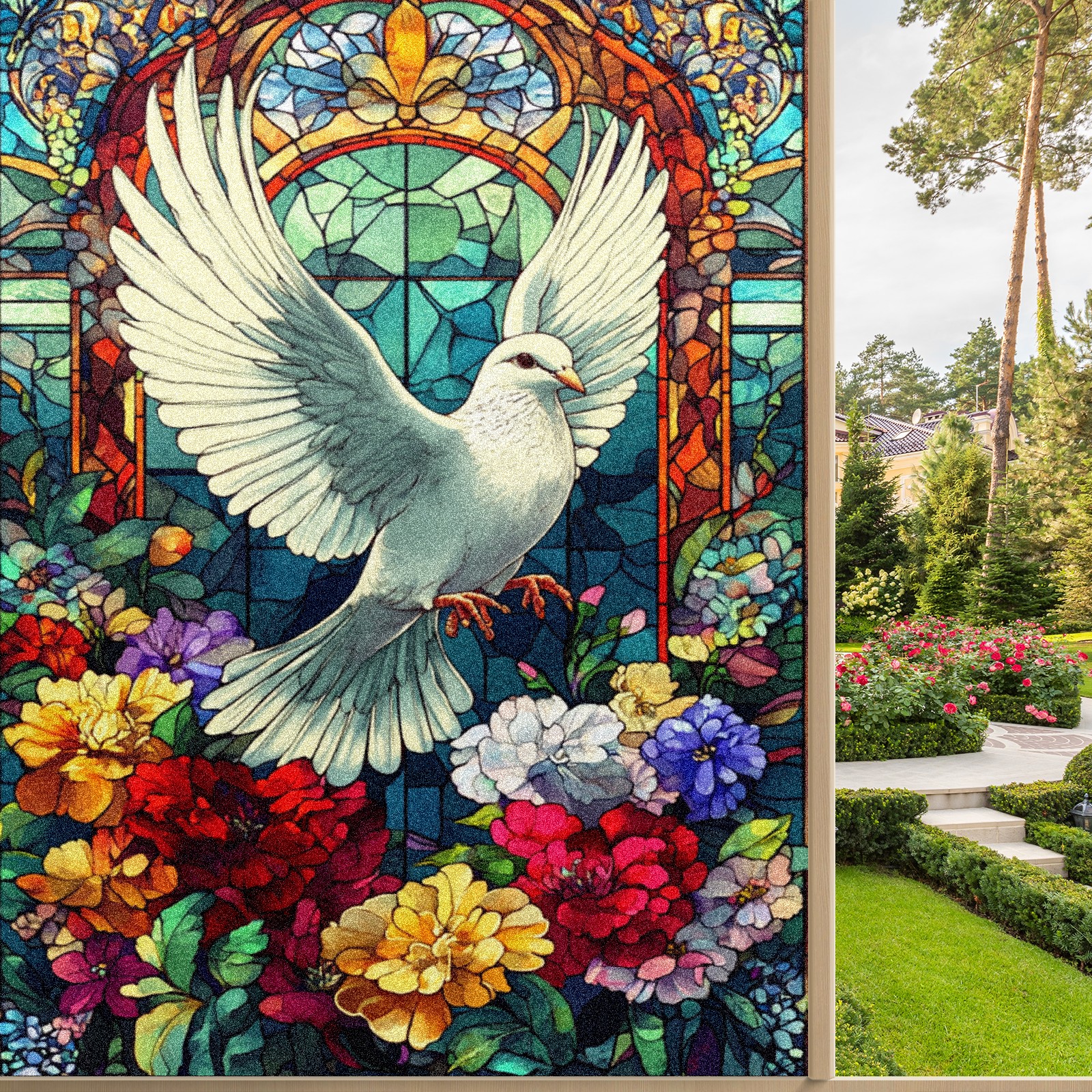 Window Privacy Colored Iris Decorative Window Stickers White Doves Among Flowers 1 Suitable Home & Office Anti-Sunlight Stickers 23.6x35.4in