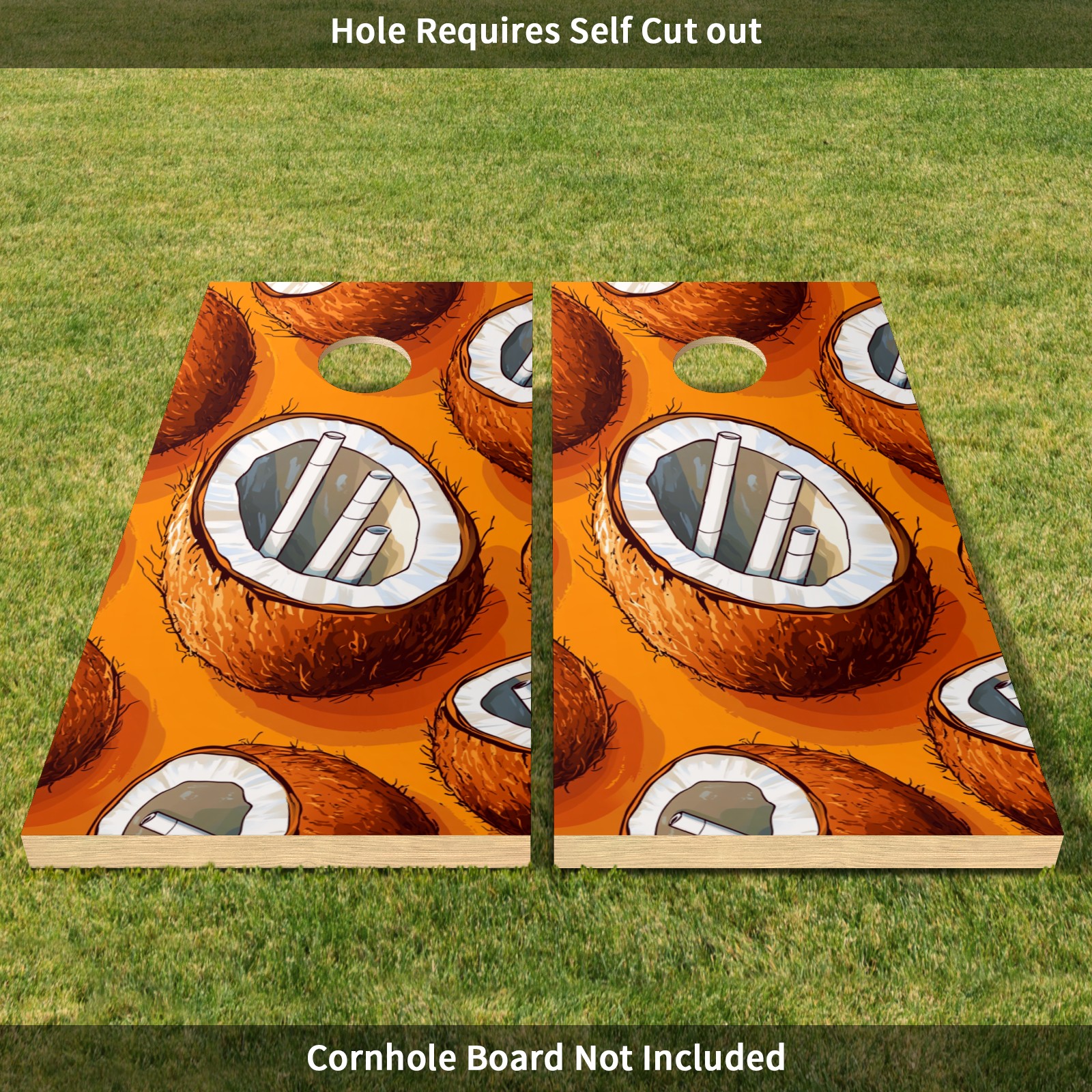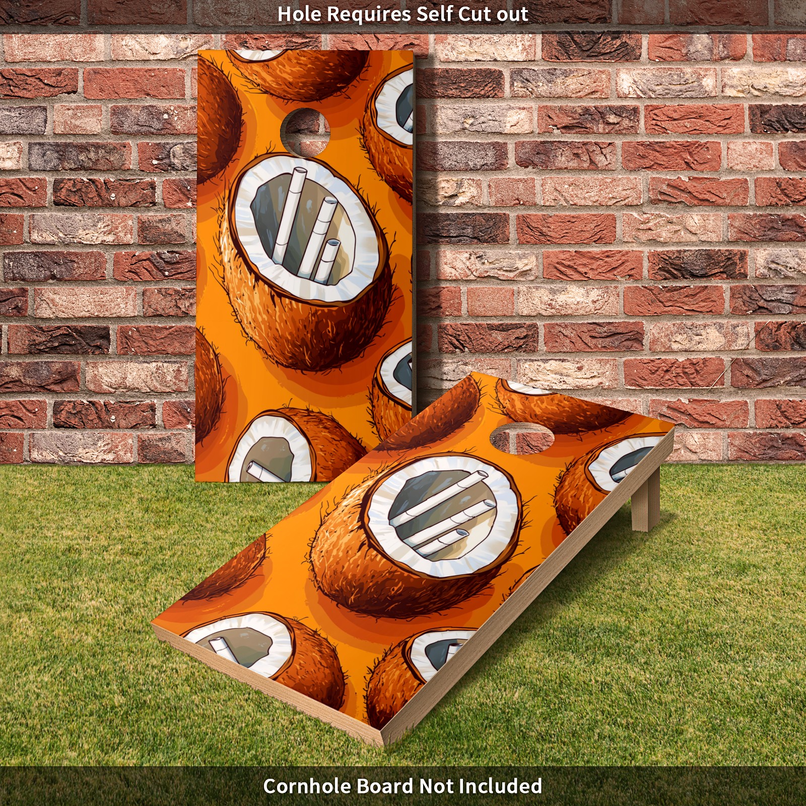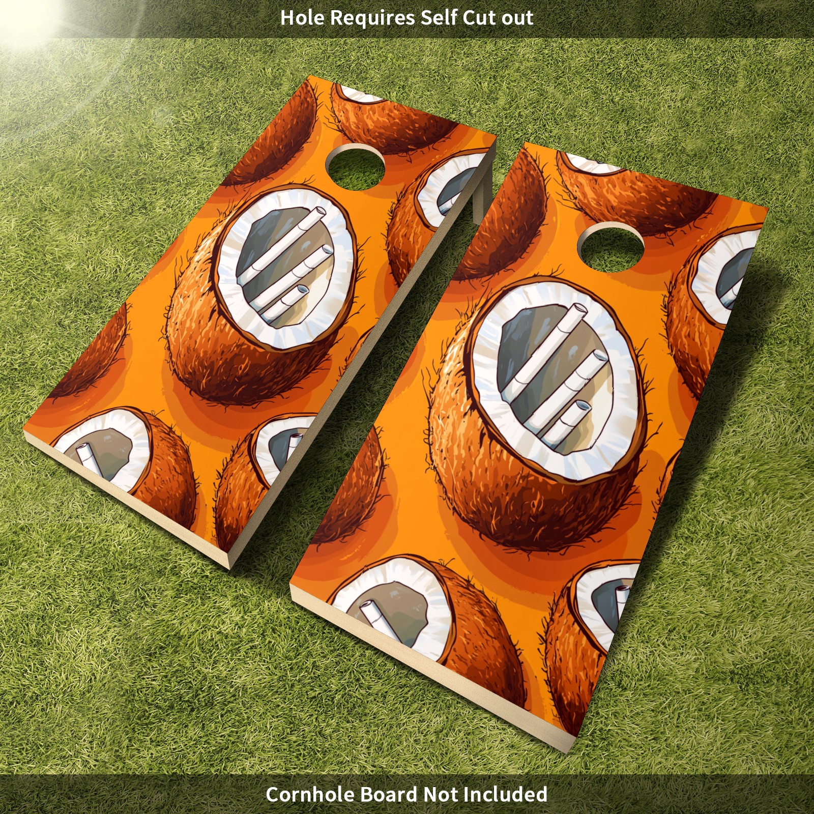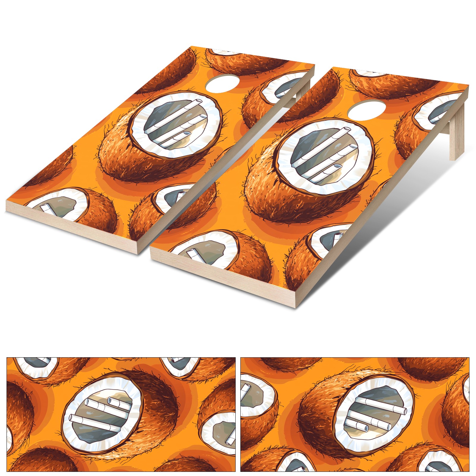 Portable 4x2 Cornhole Set with Two-piece Pack Boards - Cornhole Game Sticker Included - Yard Travel Outdoor Toss Board for Adults Outside Activities Retro Coconut Pattern