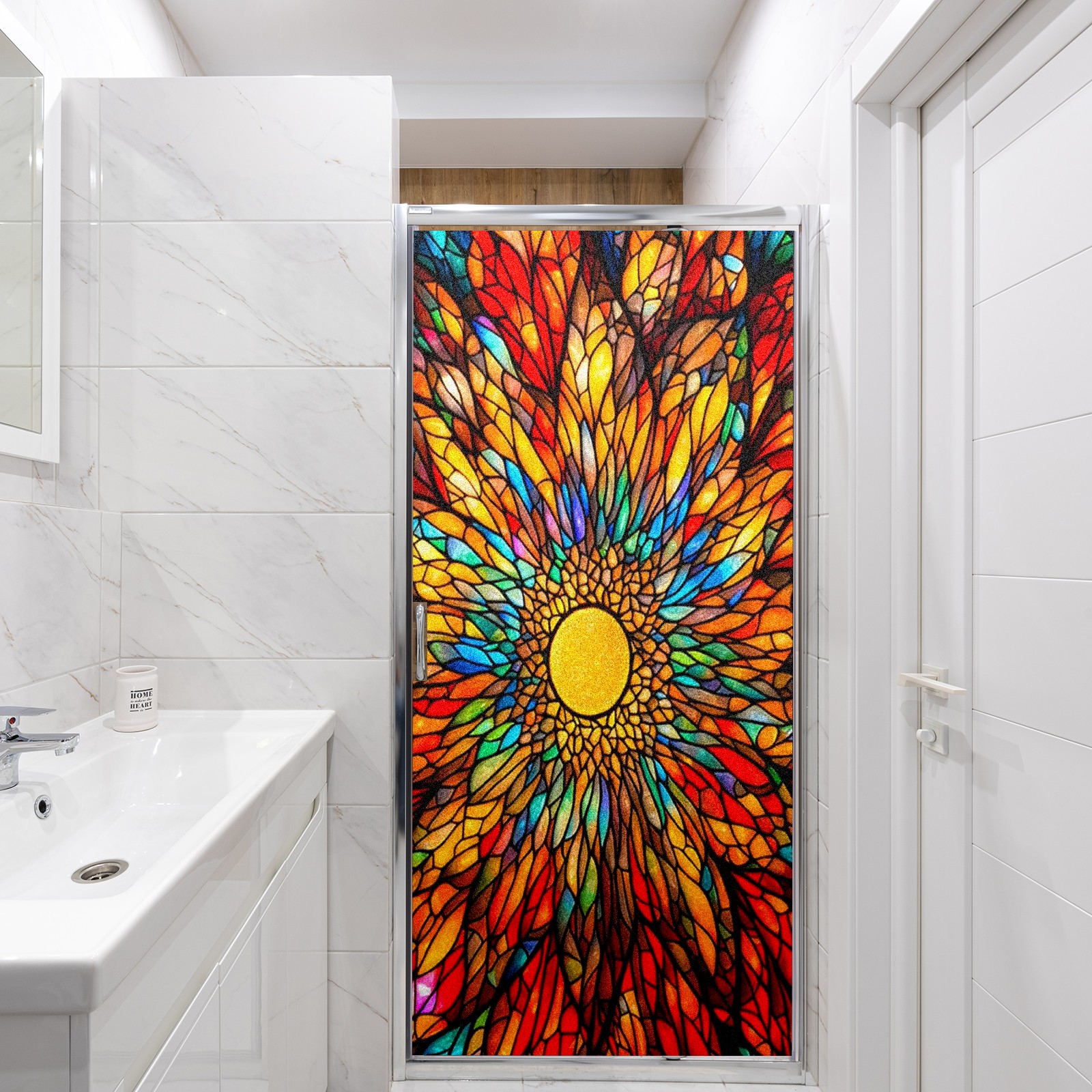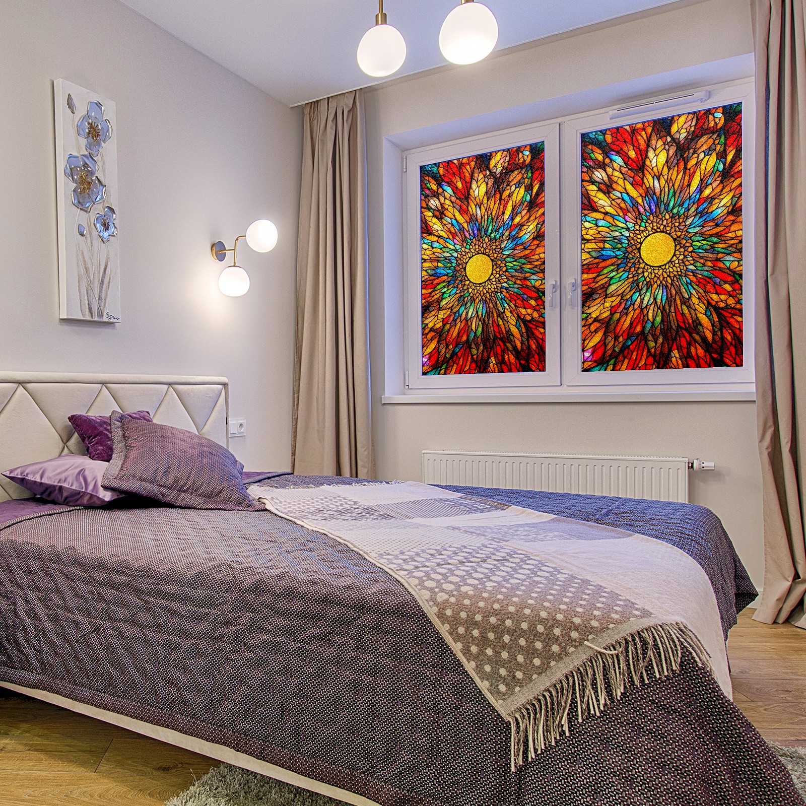 Window Privacy Colored Iris Decorative Window Stickers Colorful Sun Suitable Home & Office Anti-Sunlight Stickers 35.4x78.7in