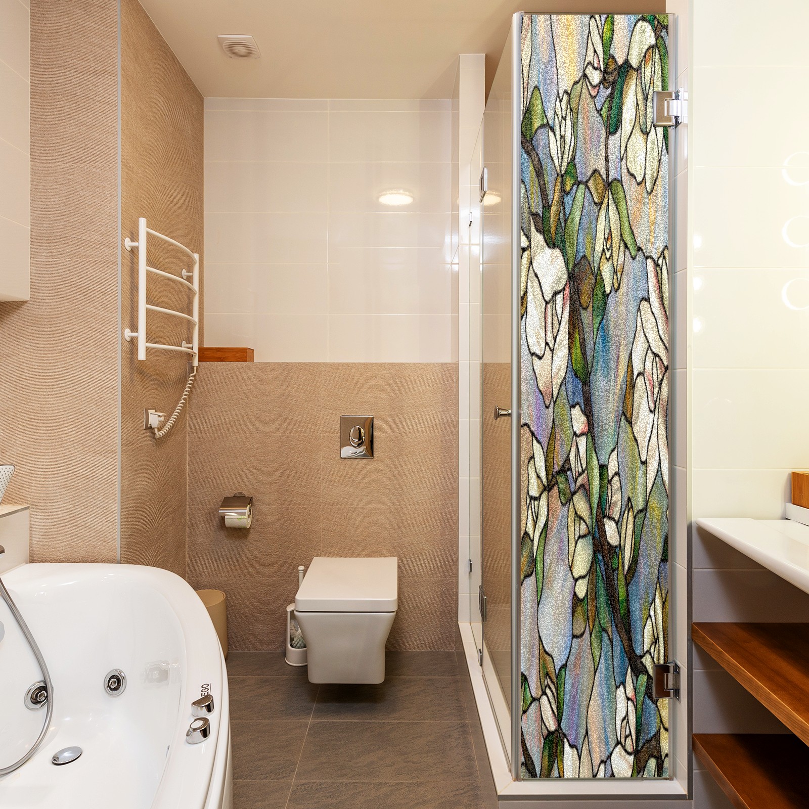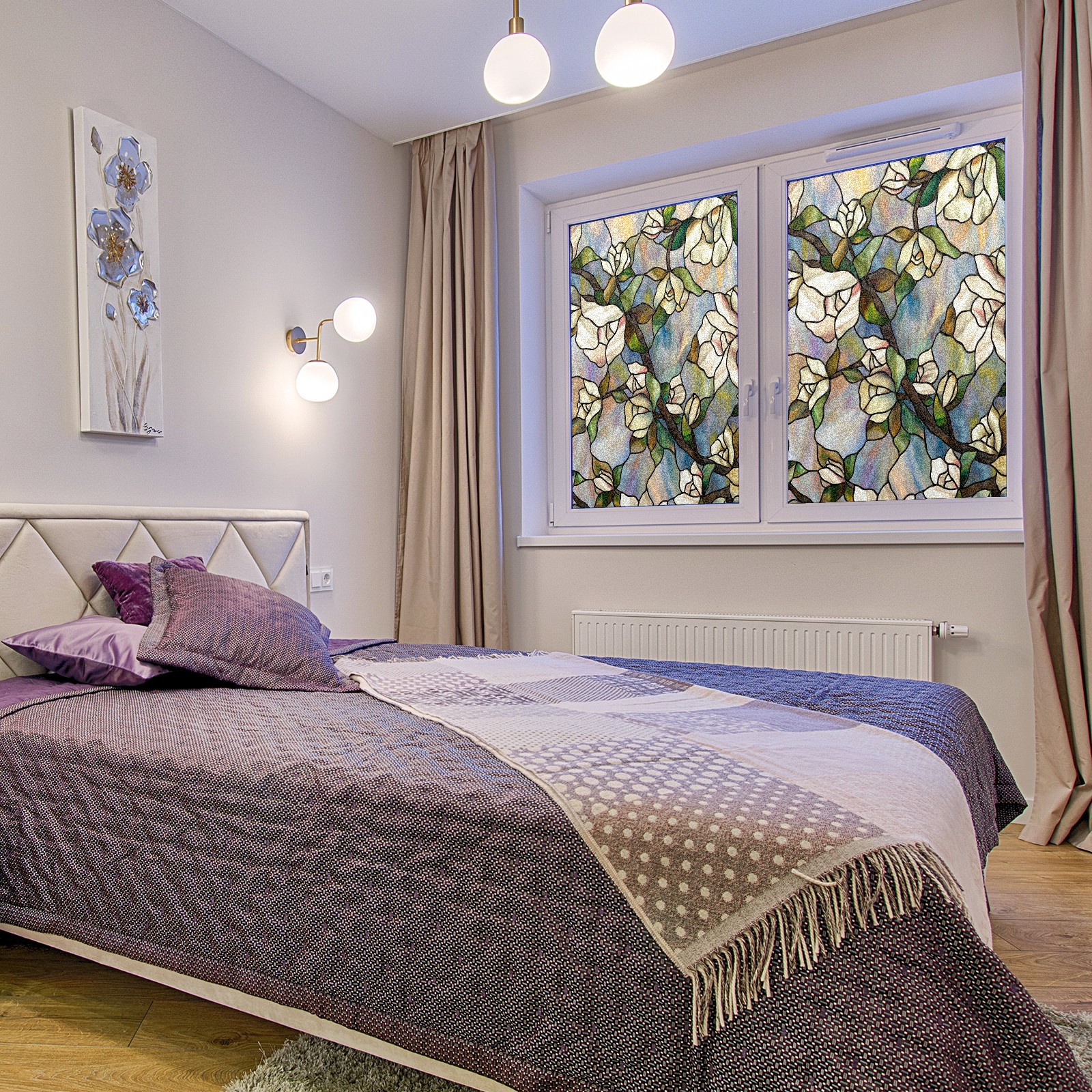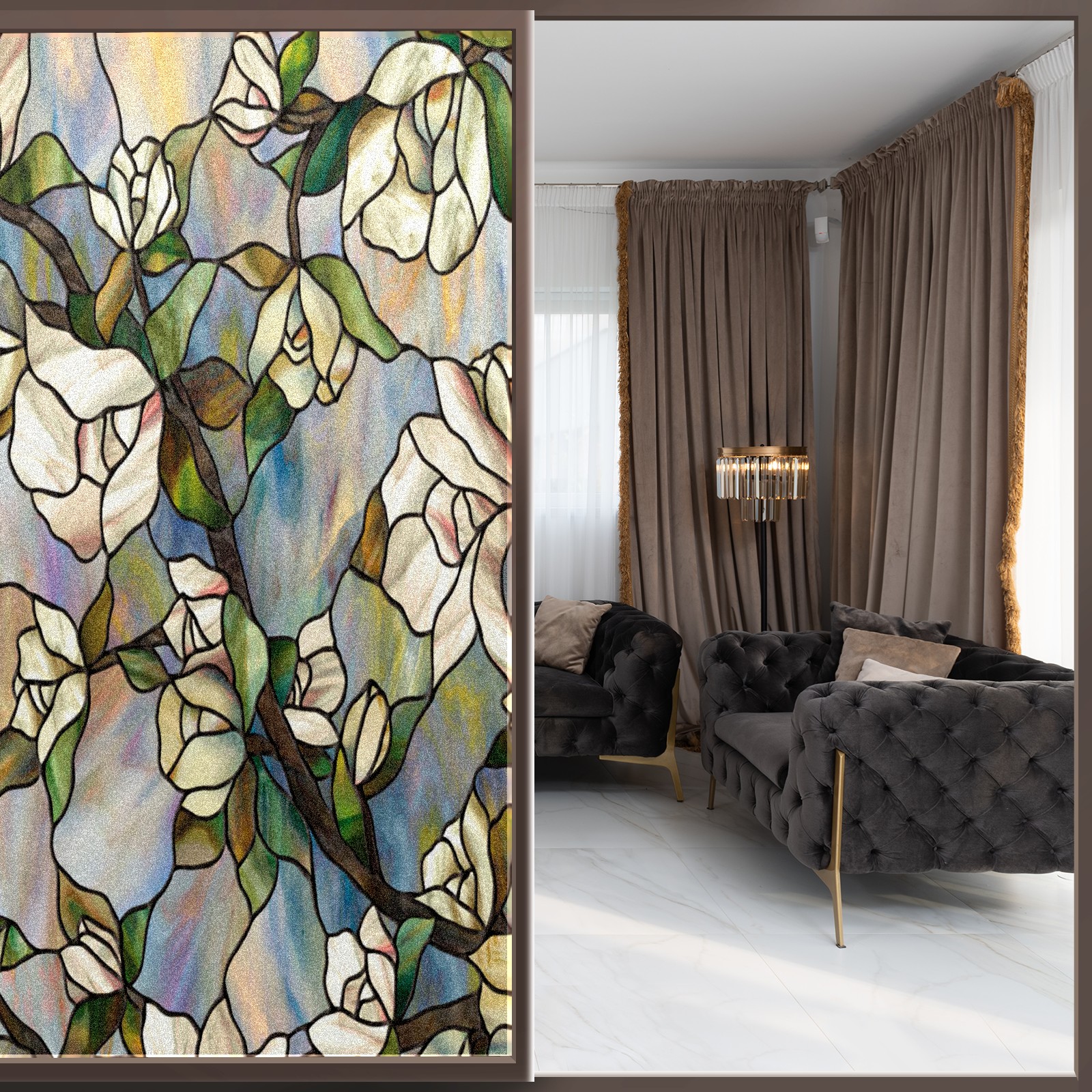 <p>Our stained glass privacy window film combines daytime privacy with soft, natural light, blocking unwanted views without the need for heavy curtains! Made from premium PET material with a single-sided frosted finish, it blocks 90% of UV rays and 86% of infrared rays, effectively protecting you and your furniture. This window film requires no adhesive, is environmentally friendly, and reusable (leaving no residue after removal). Available in six sizes, it's suitable for sliding doors, bathrooms, living rooms, offices, hotels, and more. It's the ideal choice for creating a bright, private, and secure space!</p>