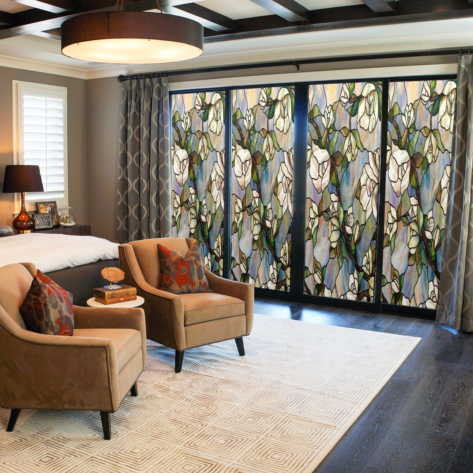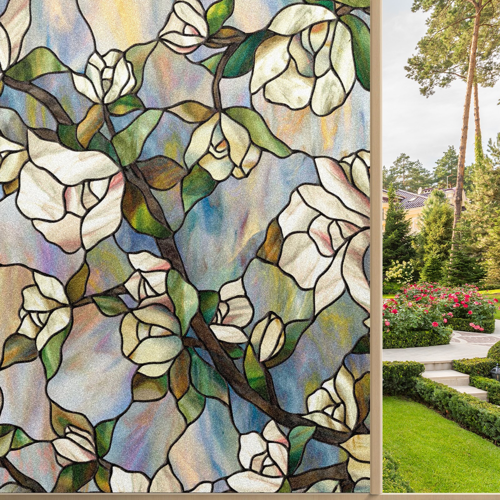 • <p>Our stained glass privacy window film combines daytime privacy with soft, natural light, blocking unwanted views without the need for heavy curtains! Made from premium PET material with a single-sided frosted finish, it blocks 90% of UV rays and 86% of infrared rays, effectively protecting you and your furniture. This window film requires no adhesive, is environmentally friendly, and reusable (leaving no residue after removal). Available in six sizes, it's suitable for sliding doors, bathrooms, living rooms, offices, hotels, and more. It's the ideal choice for creating a bright, private, and secure space!</p>