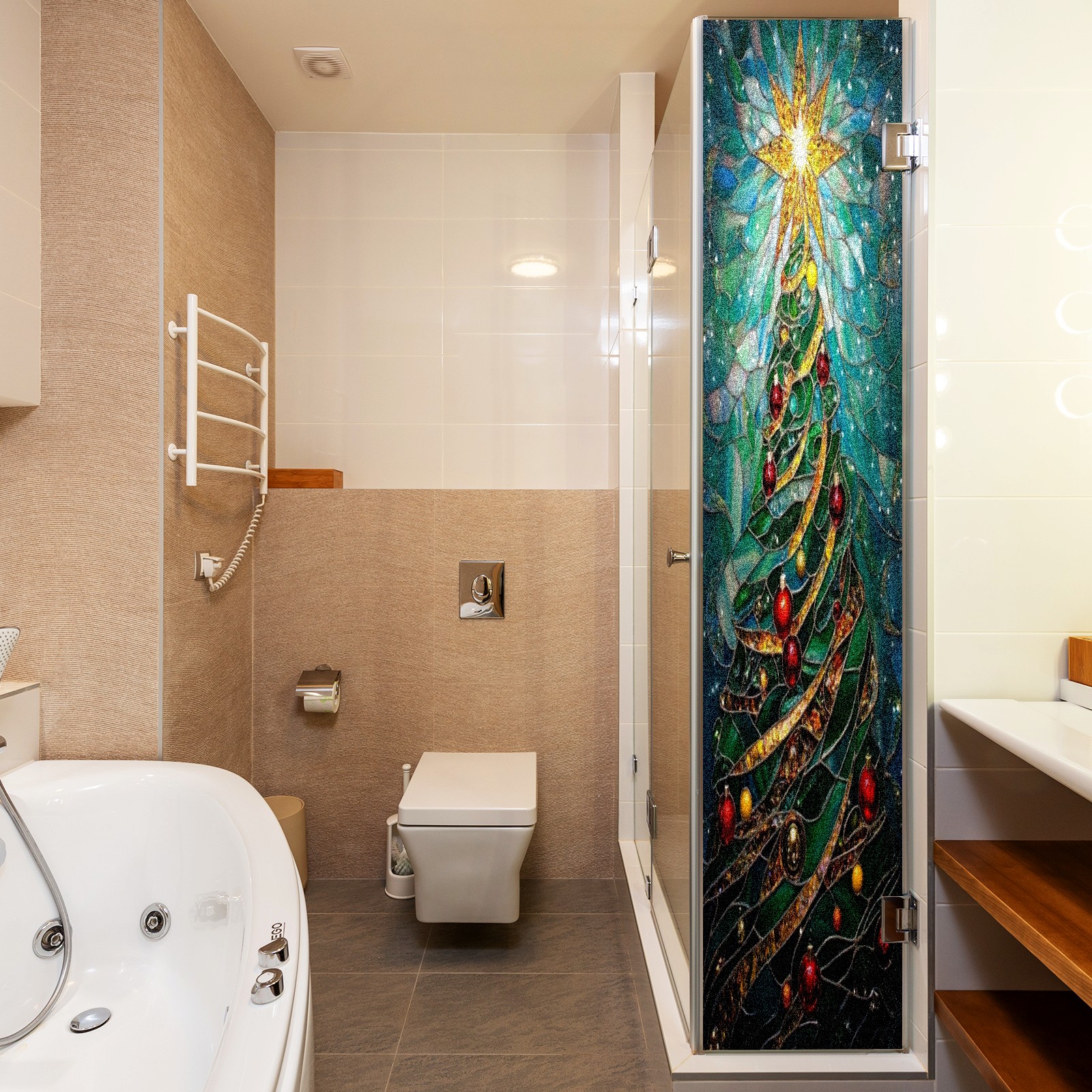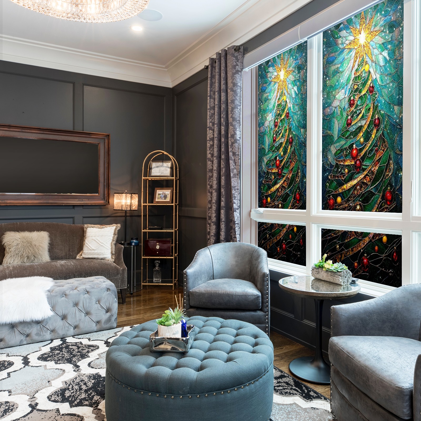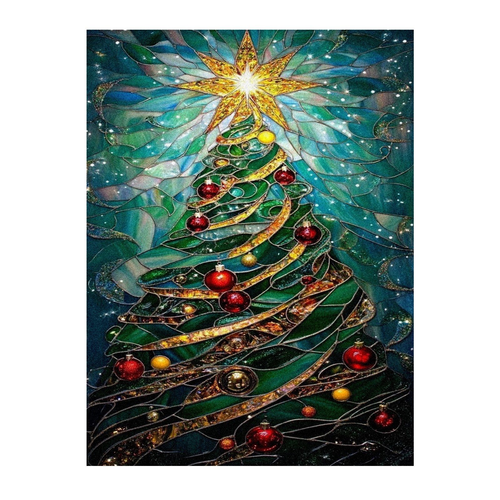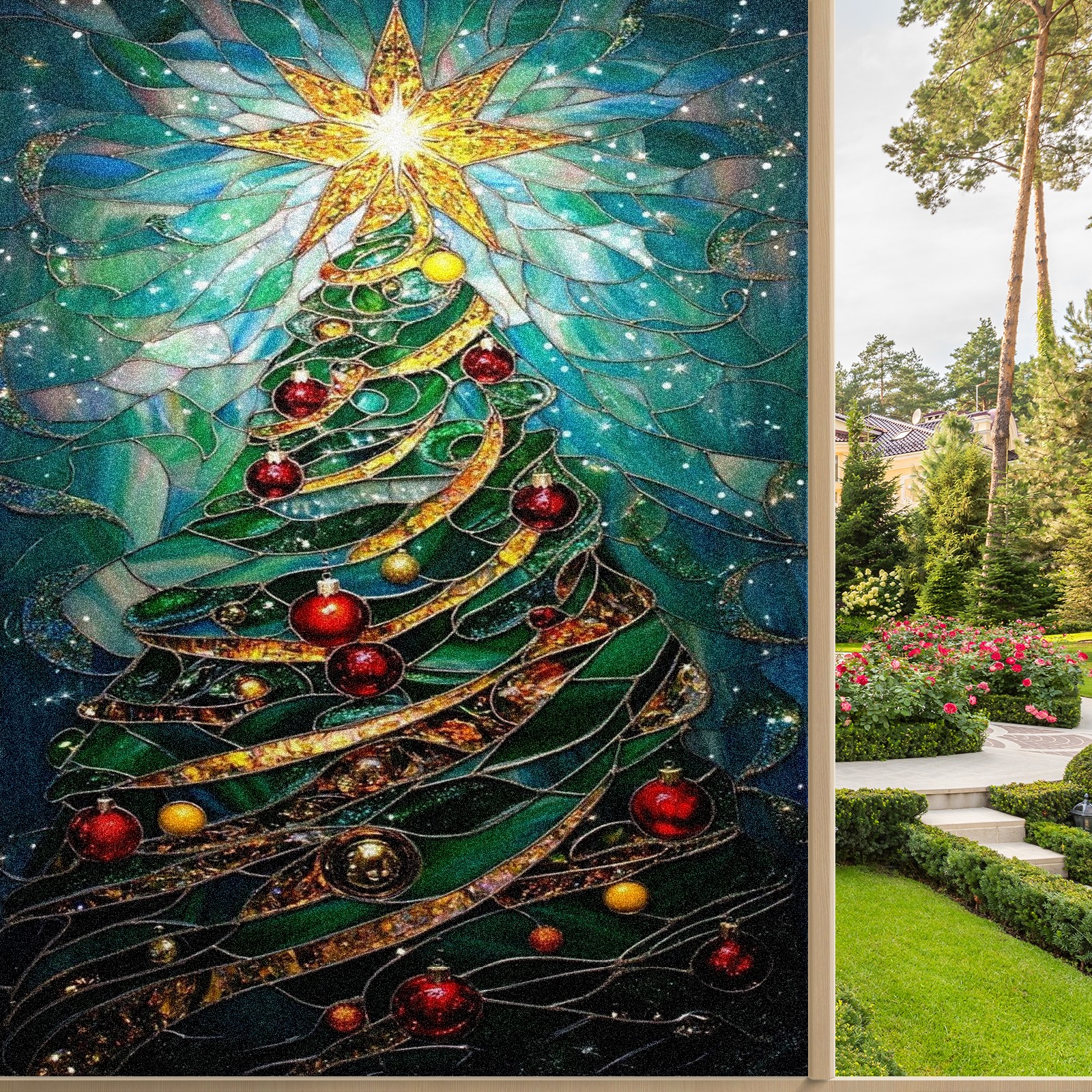 Window Privacy Colored Iris Decorative Window Stickers Green Christmas Tree Suitable Home & Office Anti-Sunlight Stickers 23.6x47.2in