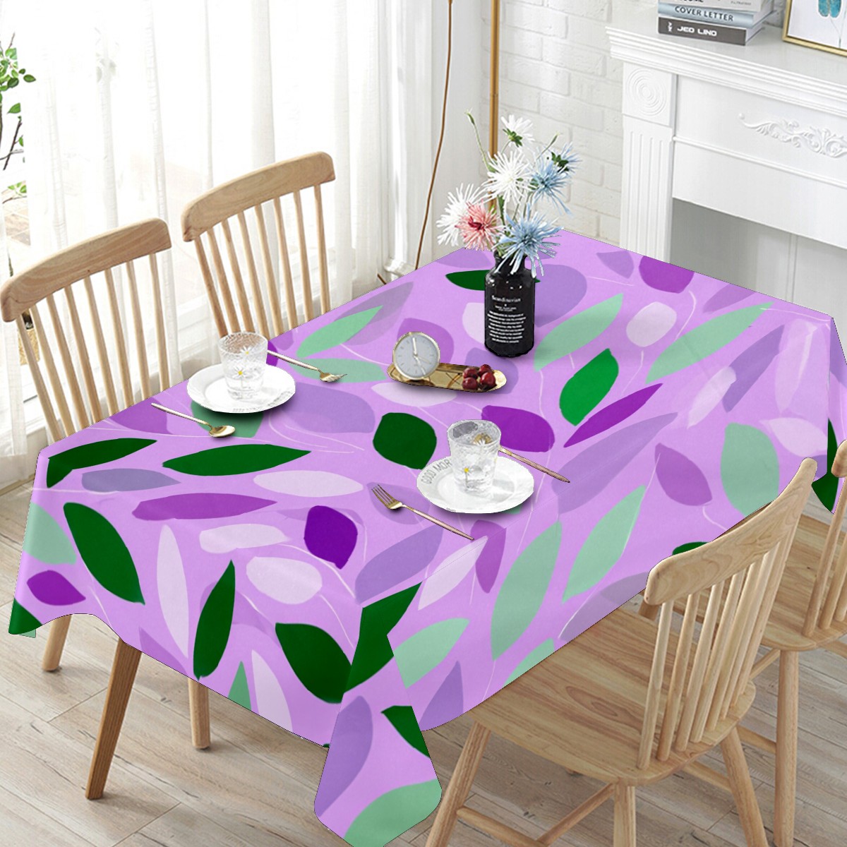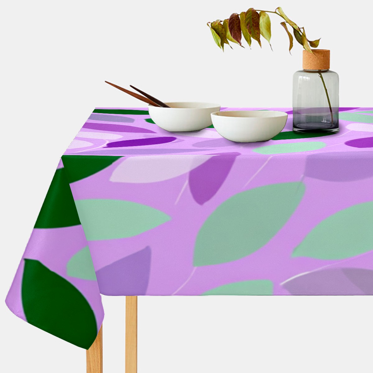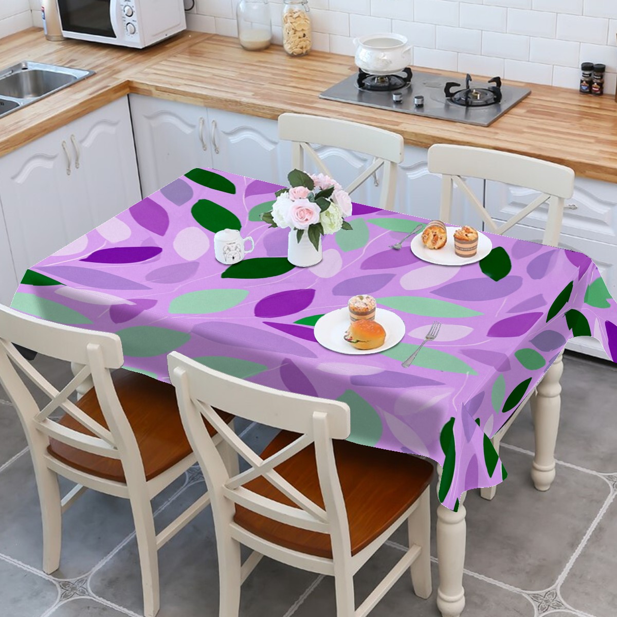 Fresh Leaf Patch Purple Tablecloth - Polyester Wrinkle-Resistant Table Cover | Durable, Stain-Resistant Tablecloth for Dining Room, Outdoor Patio, Picnic & Party