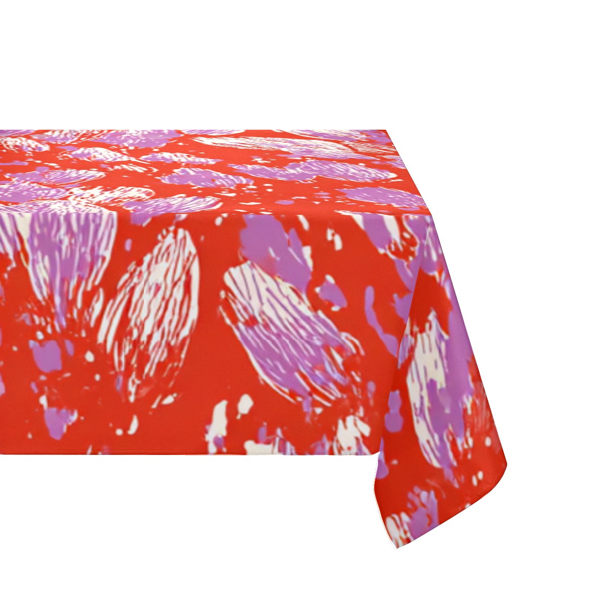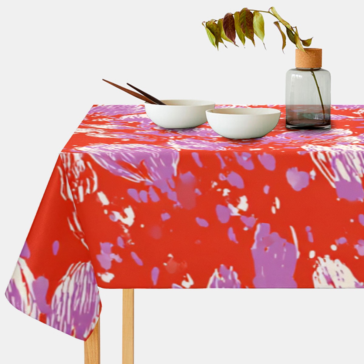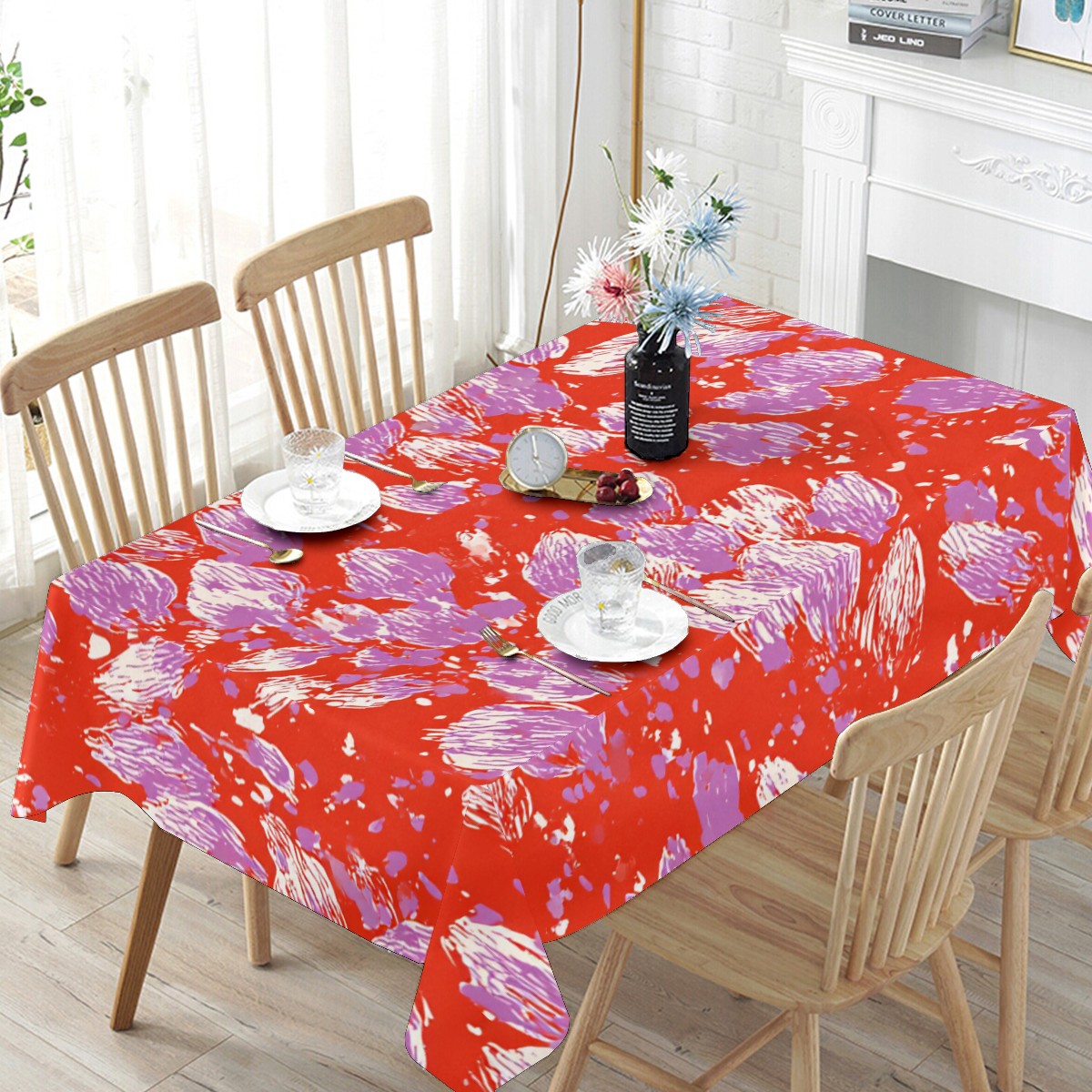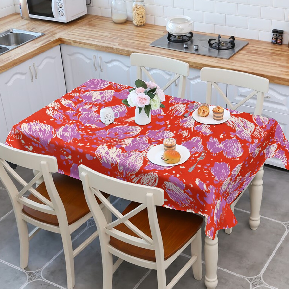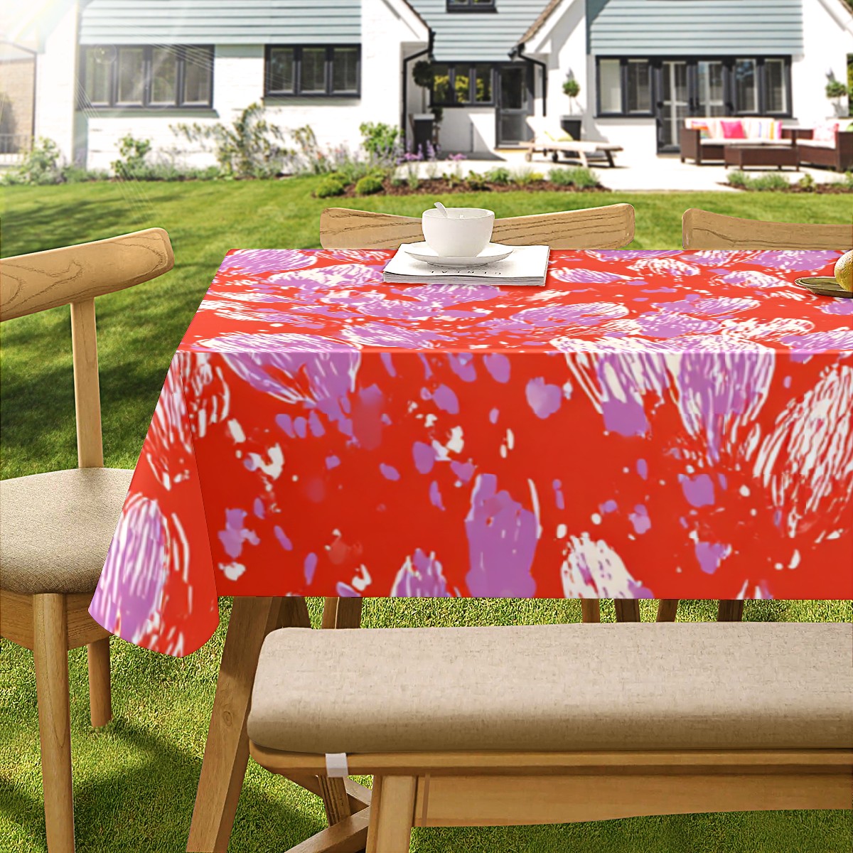 Vibrant Purple Flower Red Tablecloth - Polyester Wrinkle-Resistant Table Cover | Durable, Stain-Resistant Tablecloth for Dining Room, Outdoor Patio, Picnic & Party