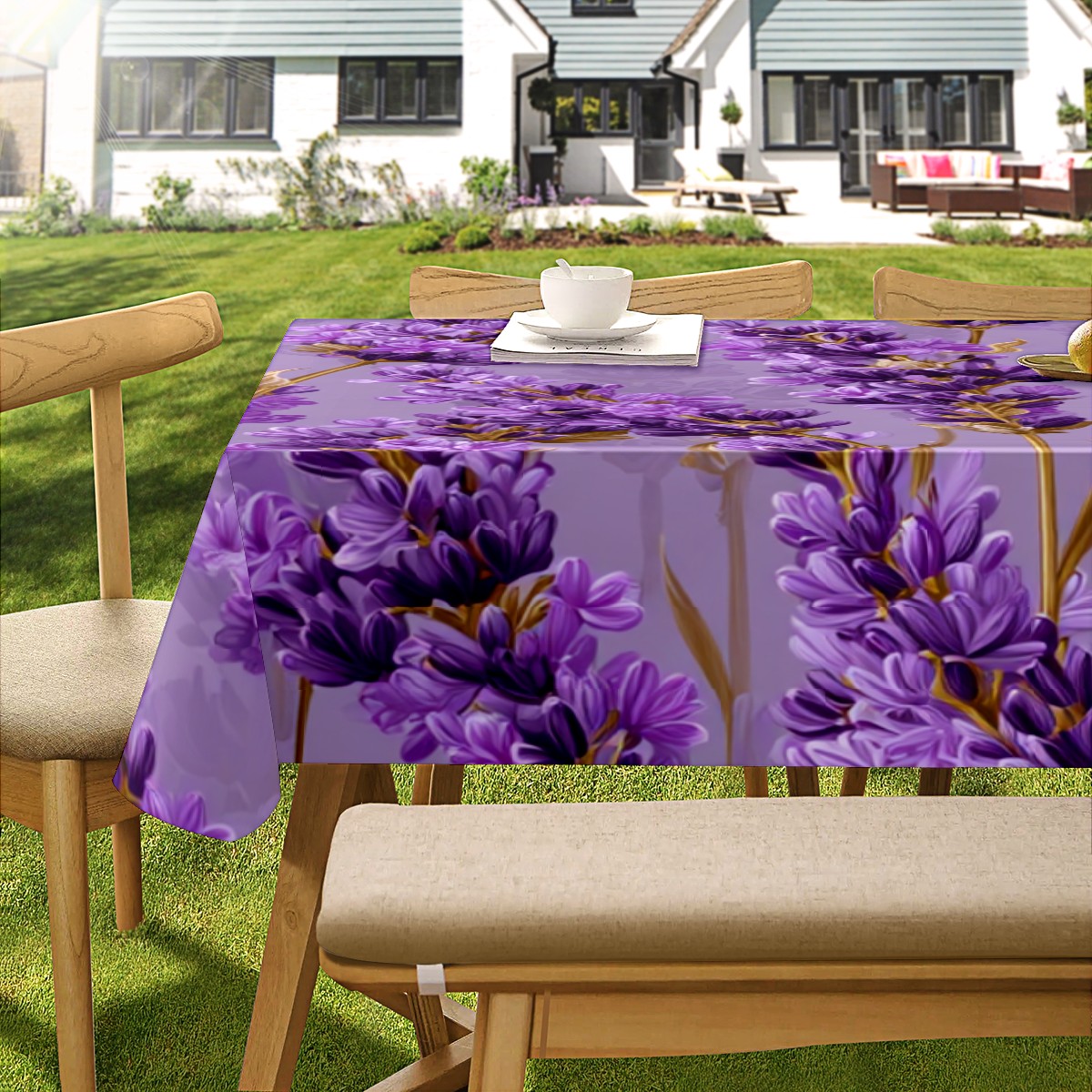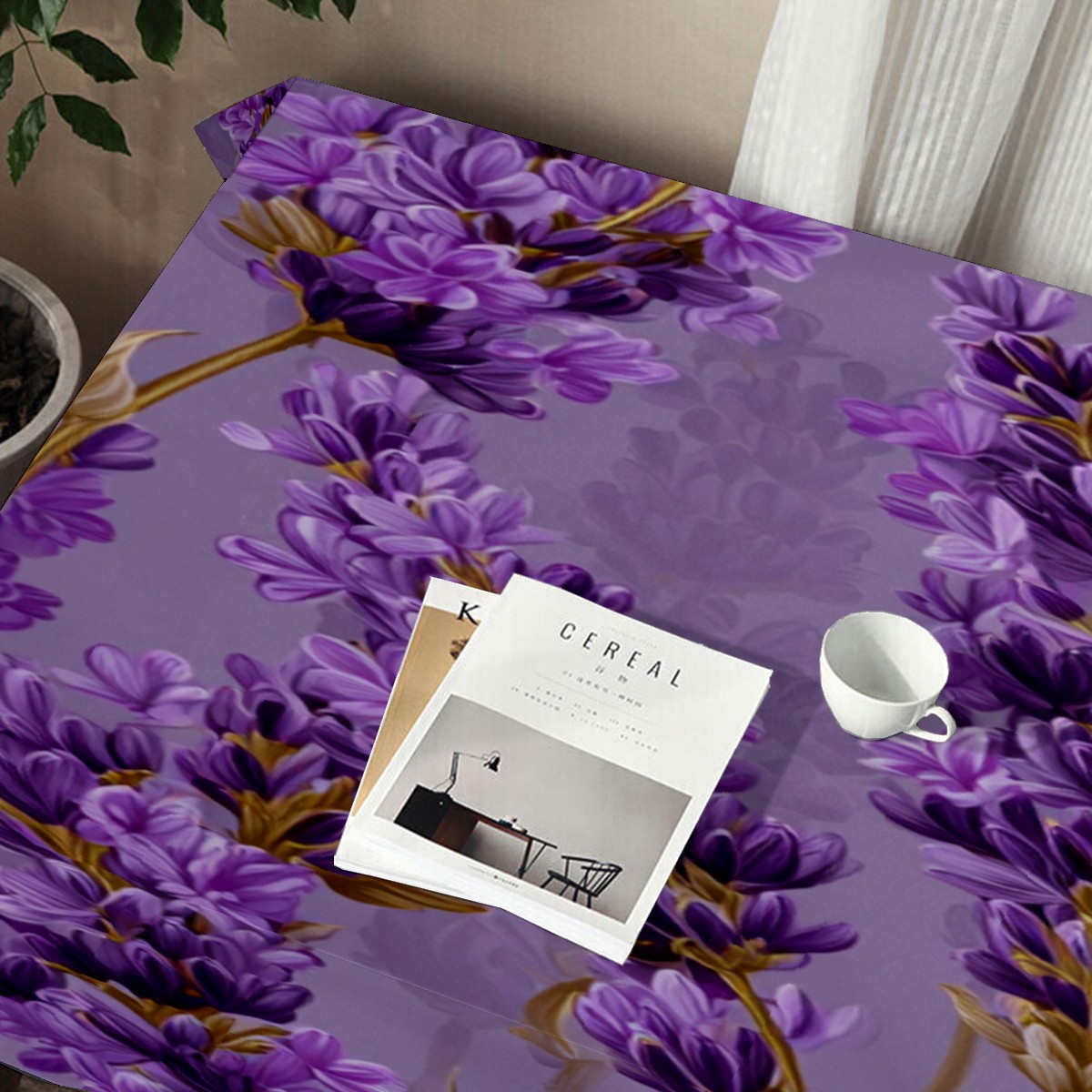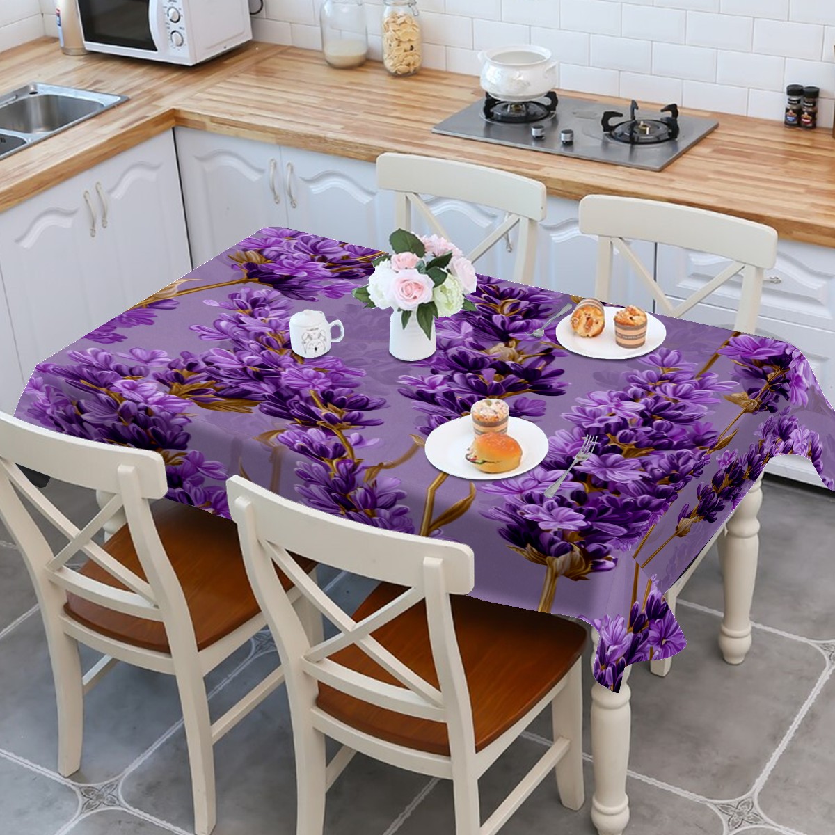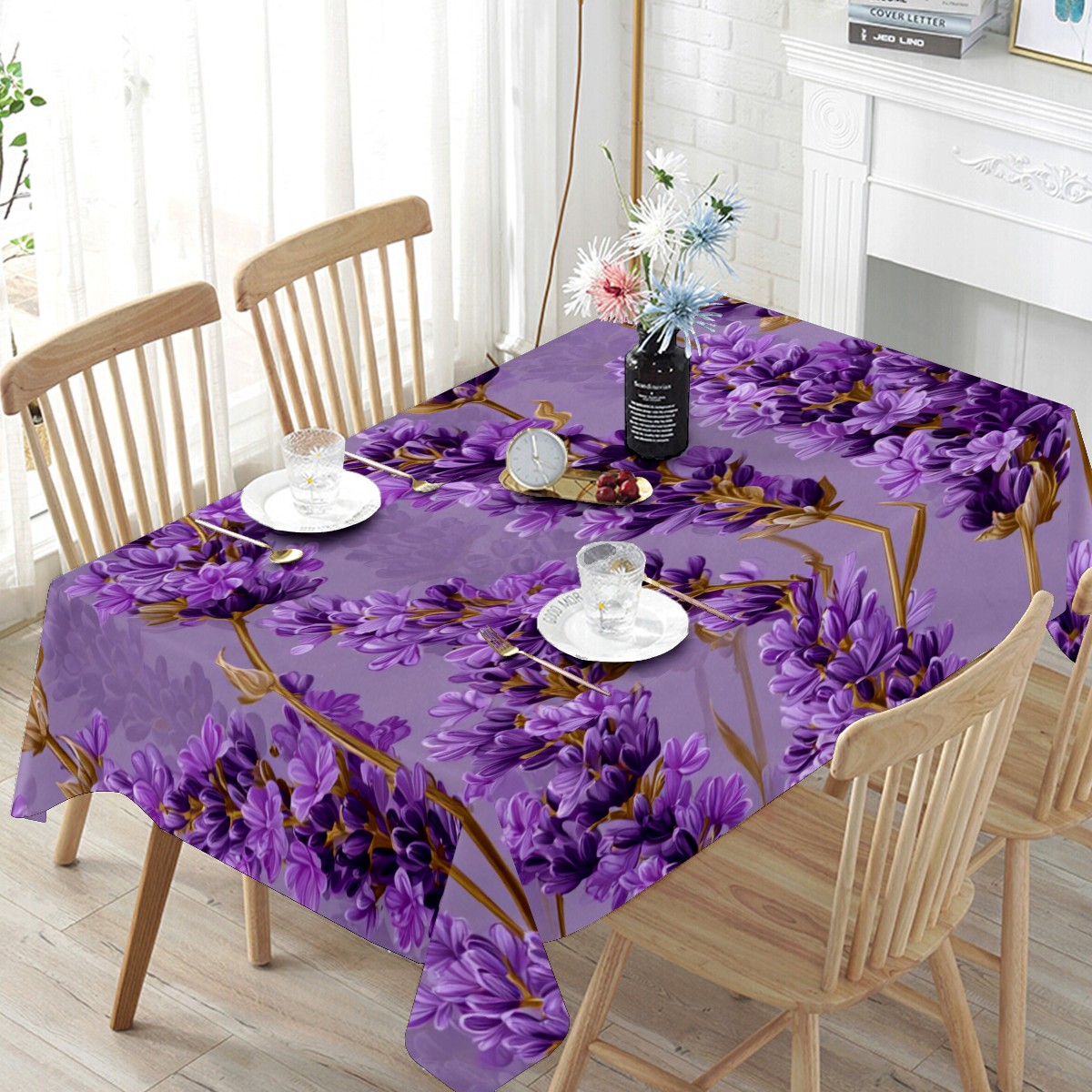 Romantic Lavender Purple Tablecloth - Polyester Wrinkle-Resistant Table Cover | Durable, Stain-Resistant Tablecloth for Dining Room, Outdoor Patio, Picnic & Party