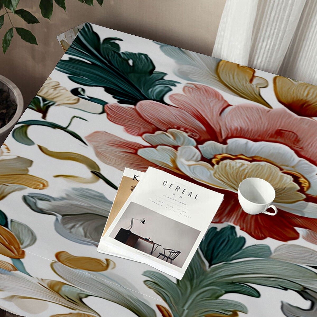 Vintage Flower Beige Tablecloth - Polyester Wrinkle-Resistant Table Cover | Durable, Stain-Resistant Tablecloth for Dining Room, Outdoor Patio, Picnic & Party
