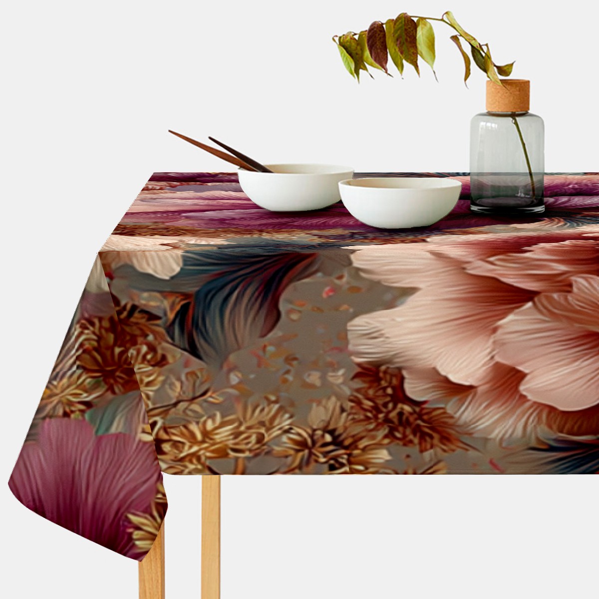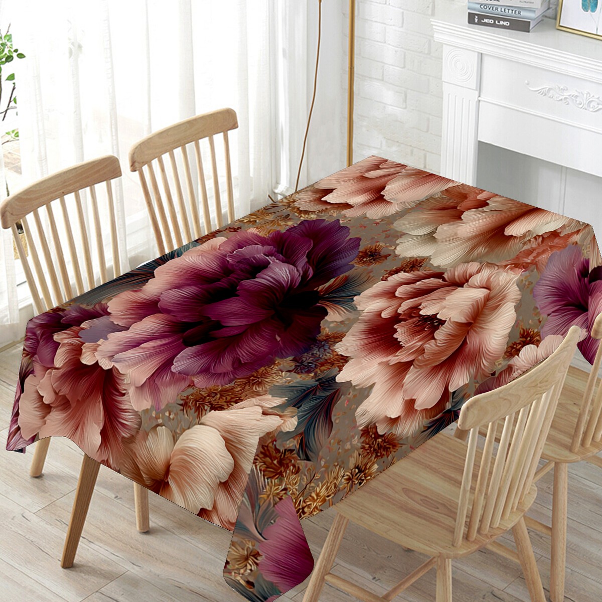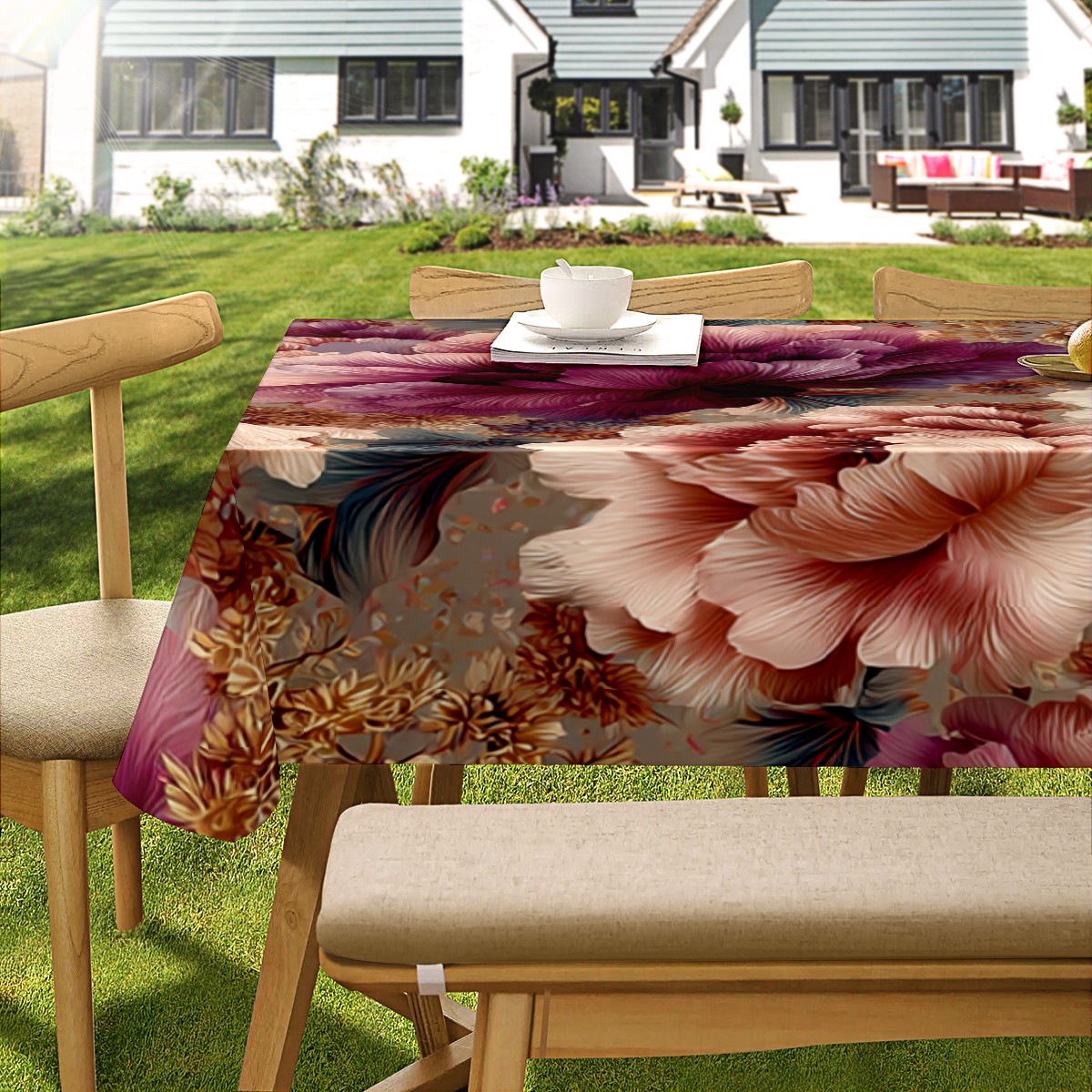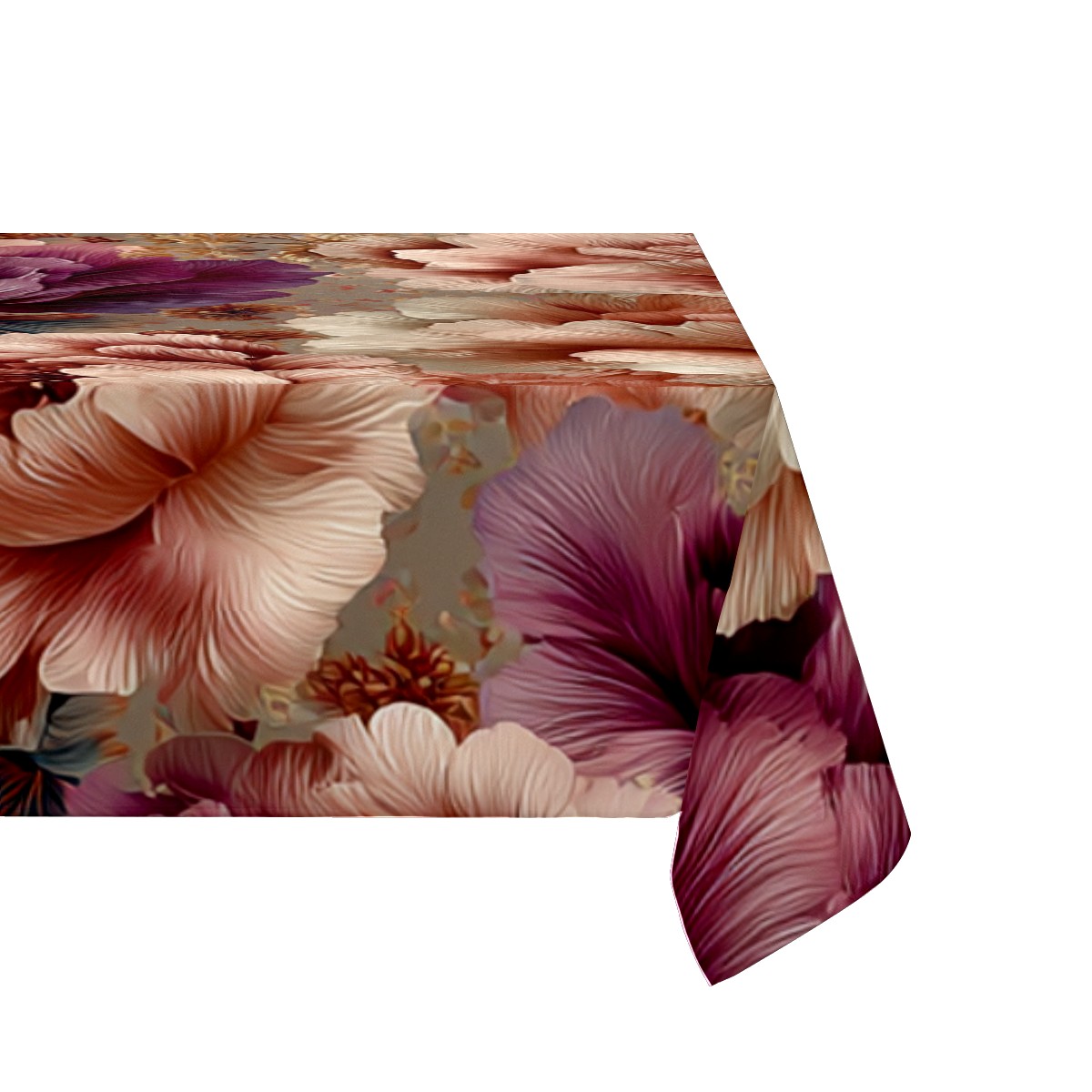 Gentle Purple Flower Pink Tablecloth - Polyester Wrinkle-Resistant Table Cover | Durable, Stain-Resistant Tablecloth for Dining Room, Outdoor Patio, Picnic & Party
