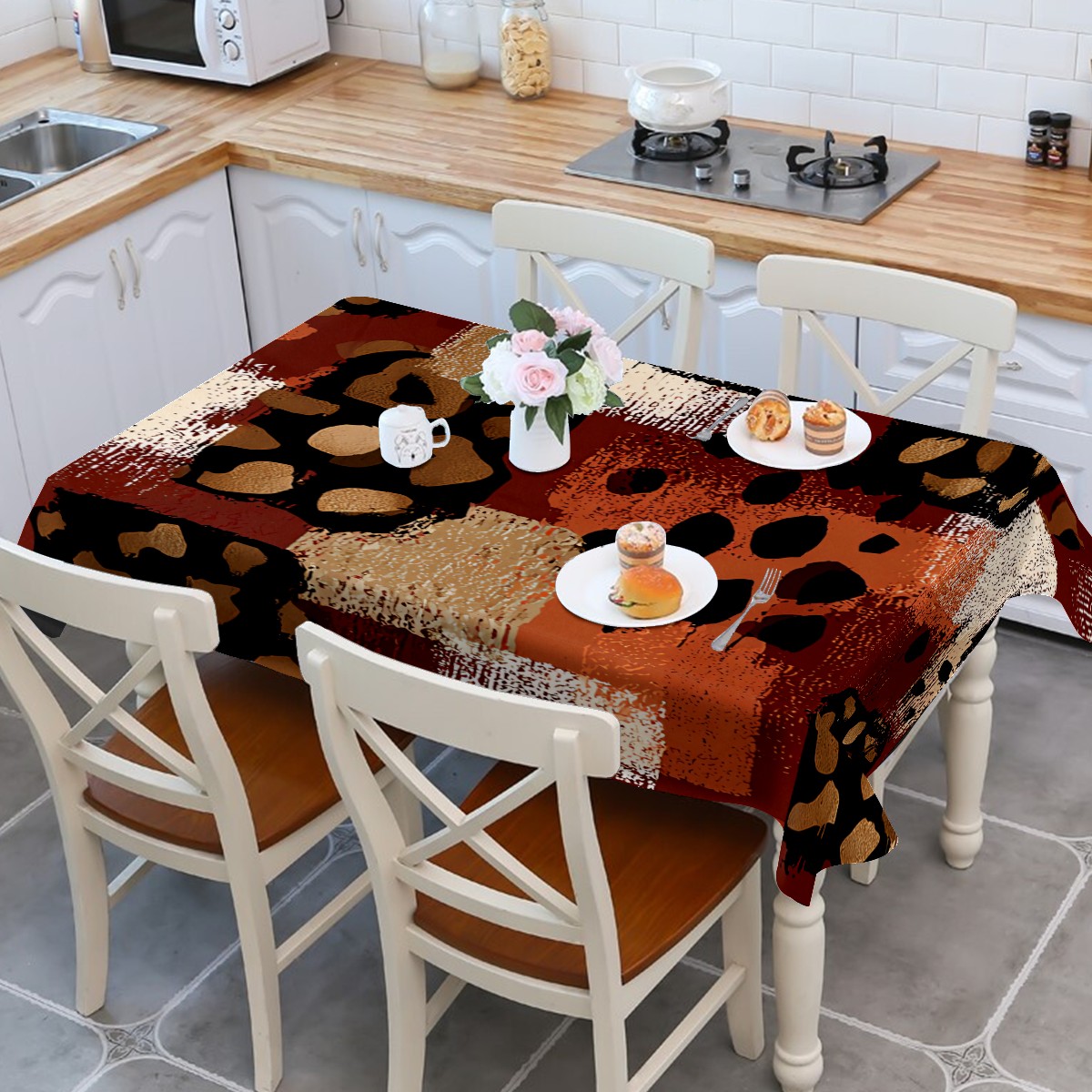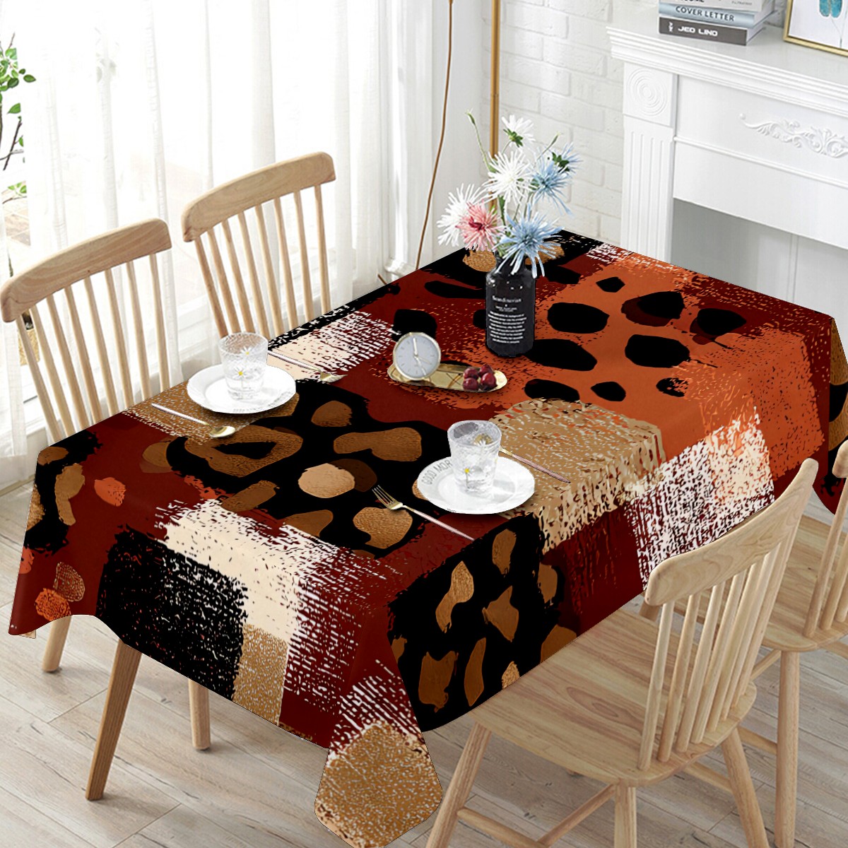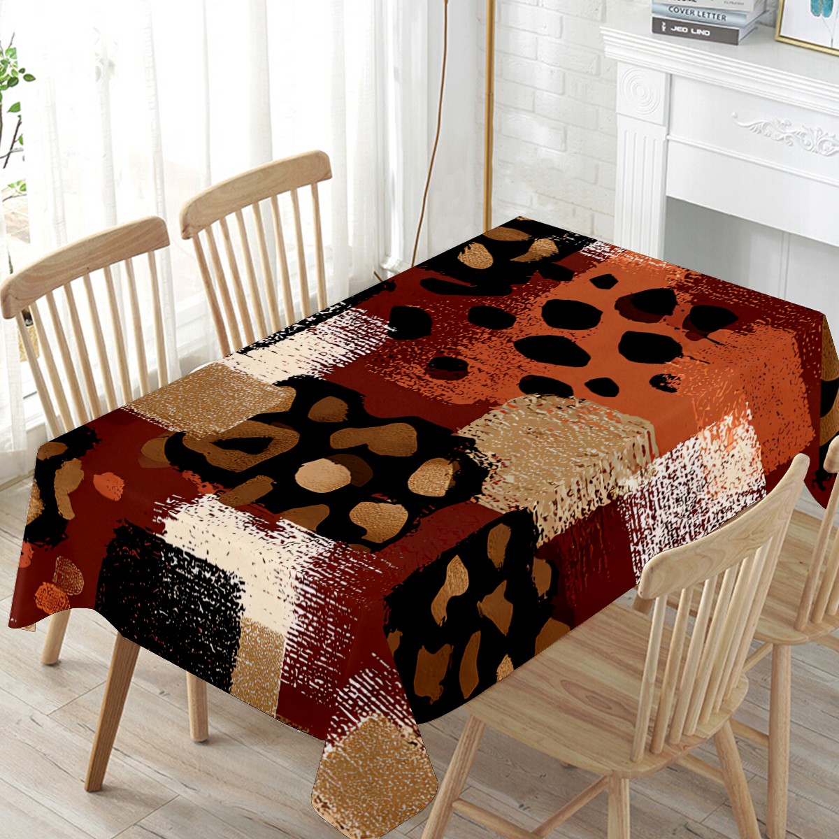 Artistic Collage Leopard Brown Tablecloth - Polyester Wrinkle-Resistant Table Cover | Durable, Stain-Resistant Tablecloth for Dining Room, Outdoor Patio, Picnic & Party