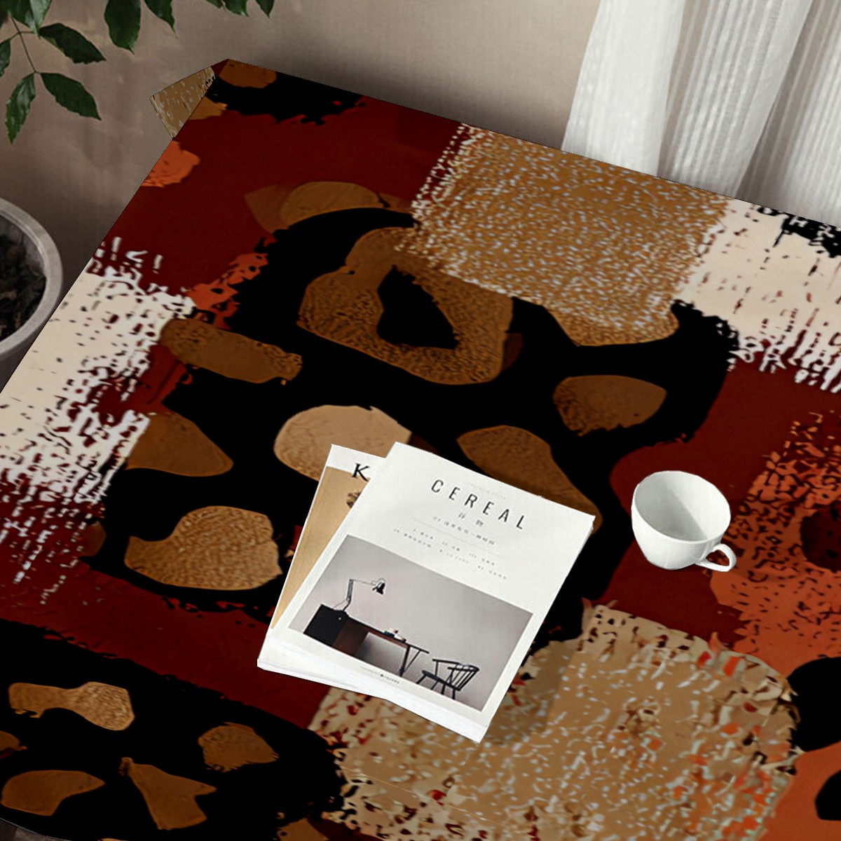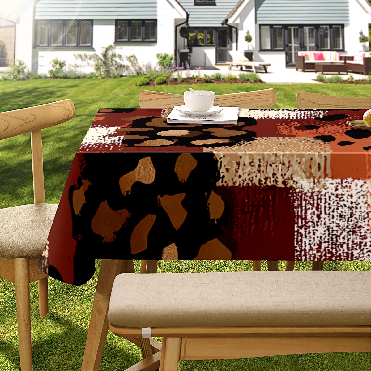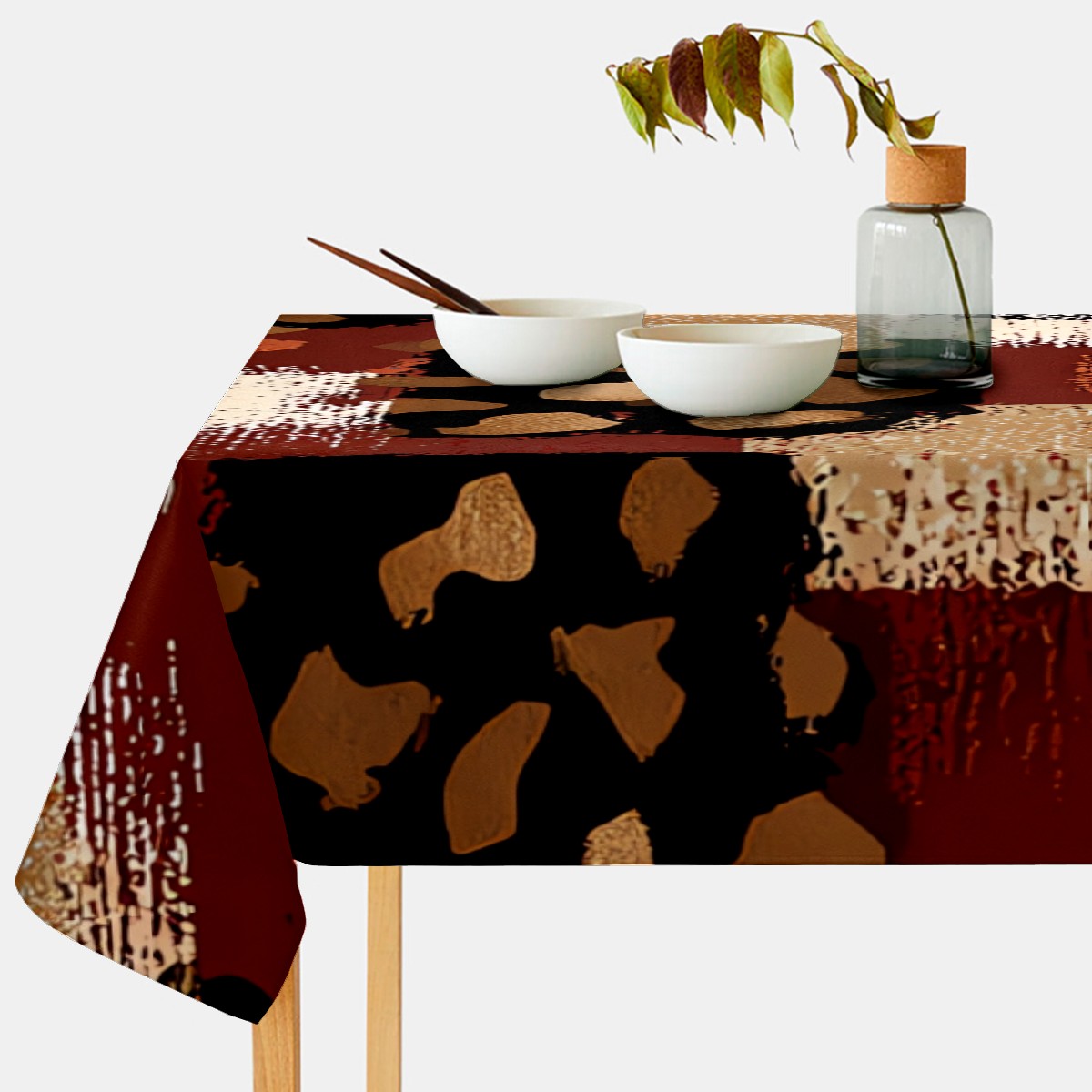 Artistic Collage Leopard Brown Tablecloth - Polyester Wrinkle-Resistant Table Cover | Durable, Stain-Resistant Tablecloth for Dining Room, Outdoor Patio, Picnic & Party