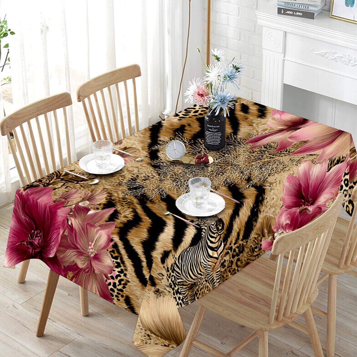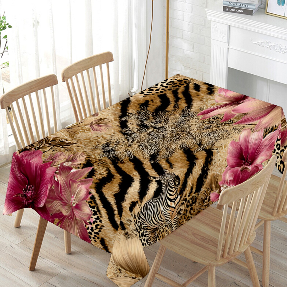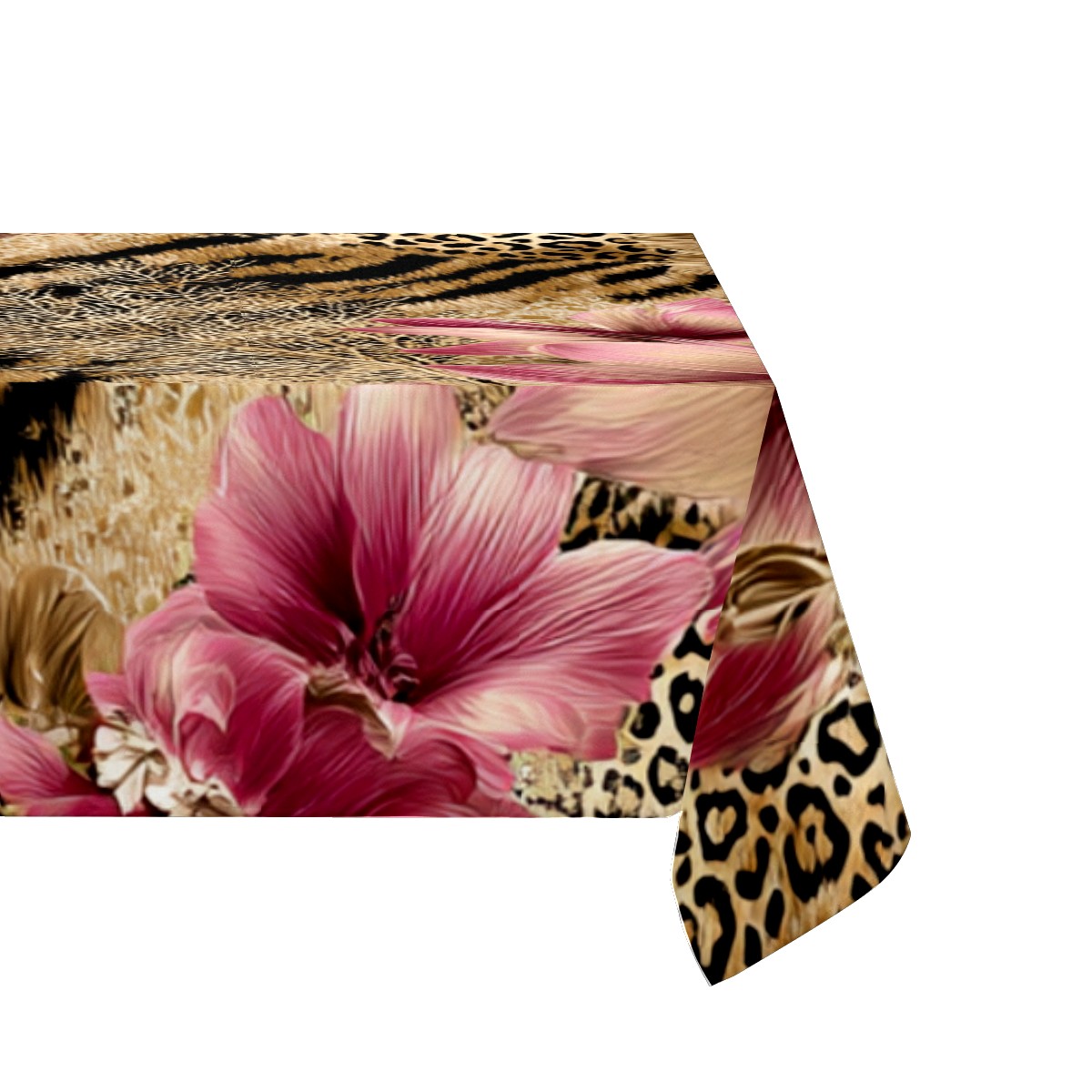 Romantic Flower Tiger Pink Tablecloth - Polyester Wrinkle-Resistant Table Cover | Durable, Stain-Resistant Tablecloth for Dining Room, Outdoor Patio, Picnic & Party