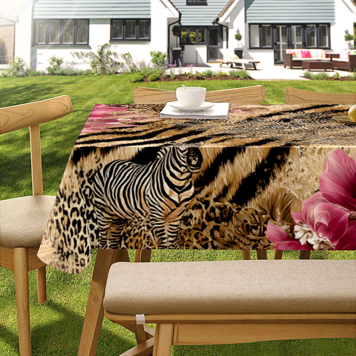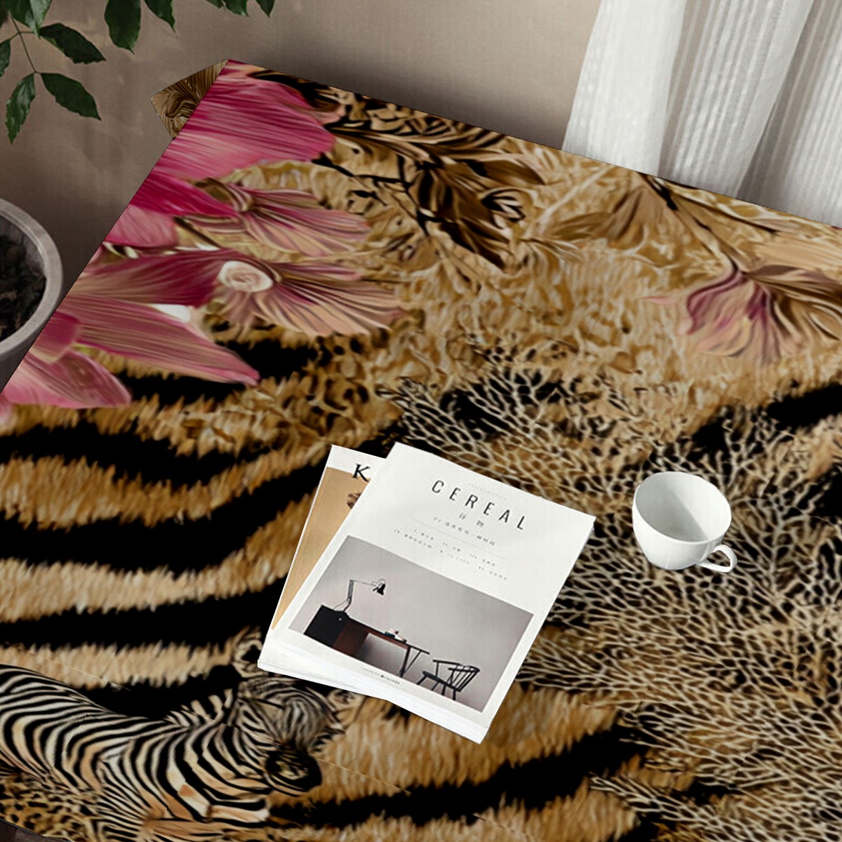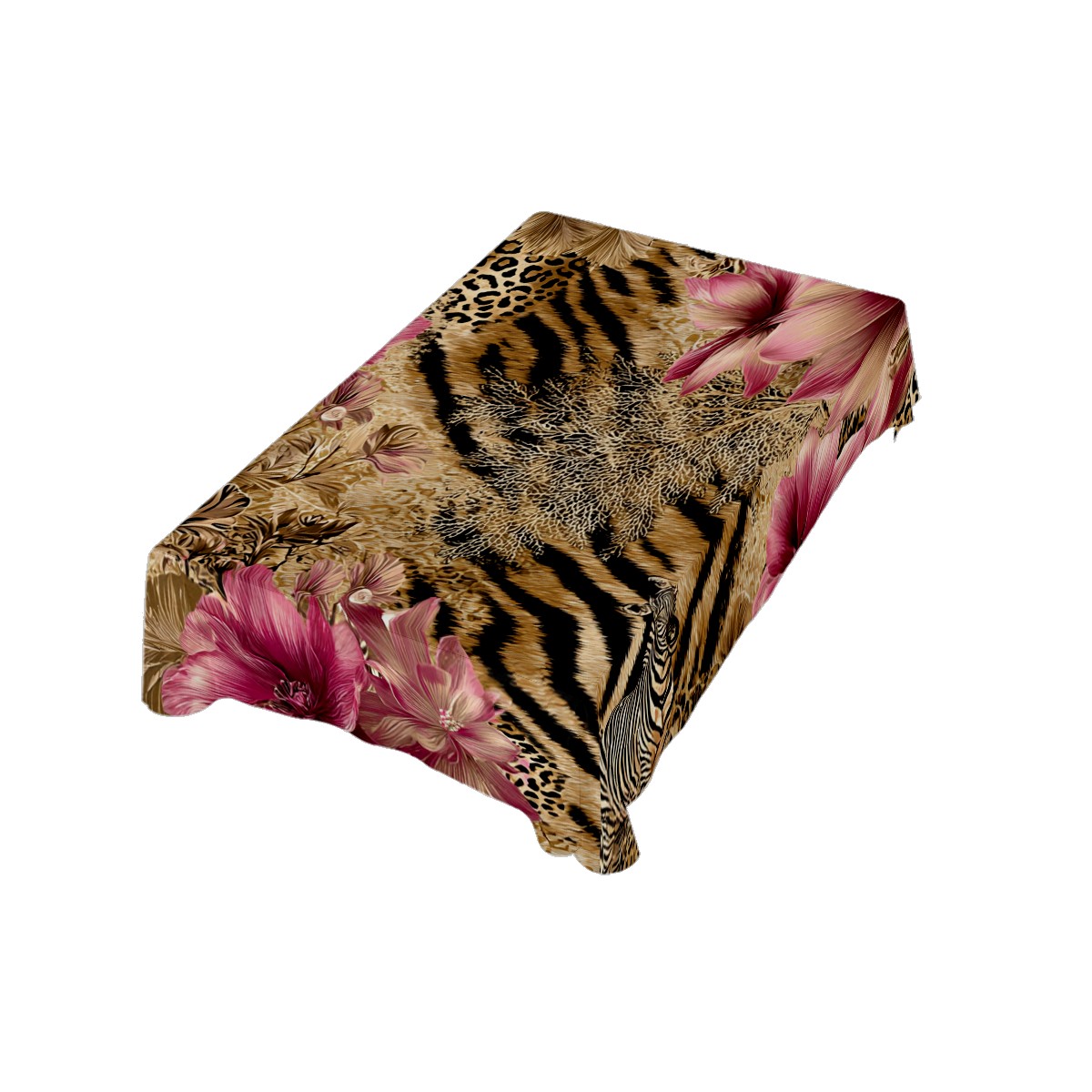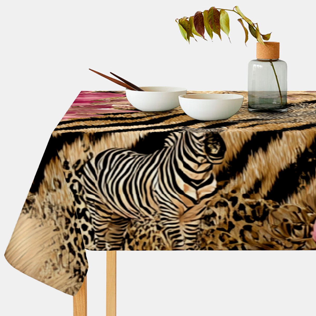 Romantic Flower Tiger Pink Tablecloth - Polyester Wrinkle-Resistant Table Cover | Durable, Stain-Resistant Tablecloth for Dining Room, Outdoor Patio, Picnic & Party