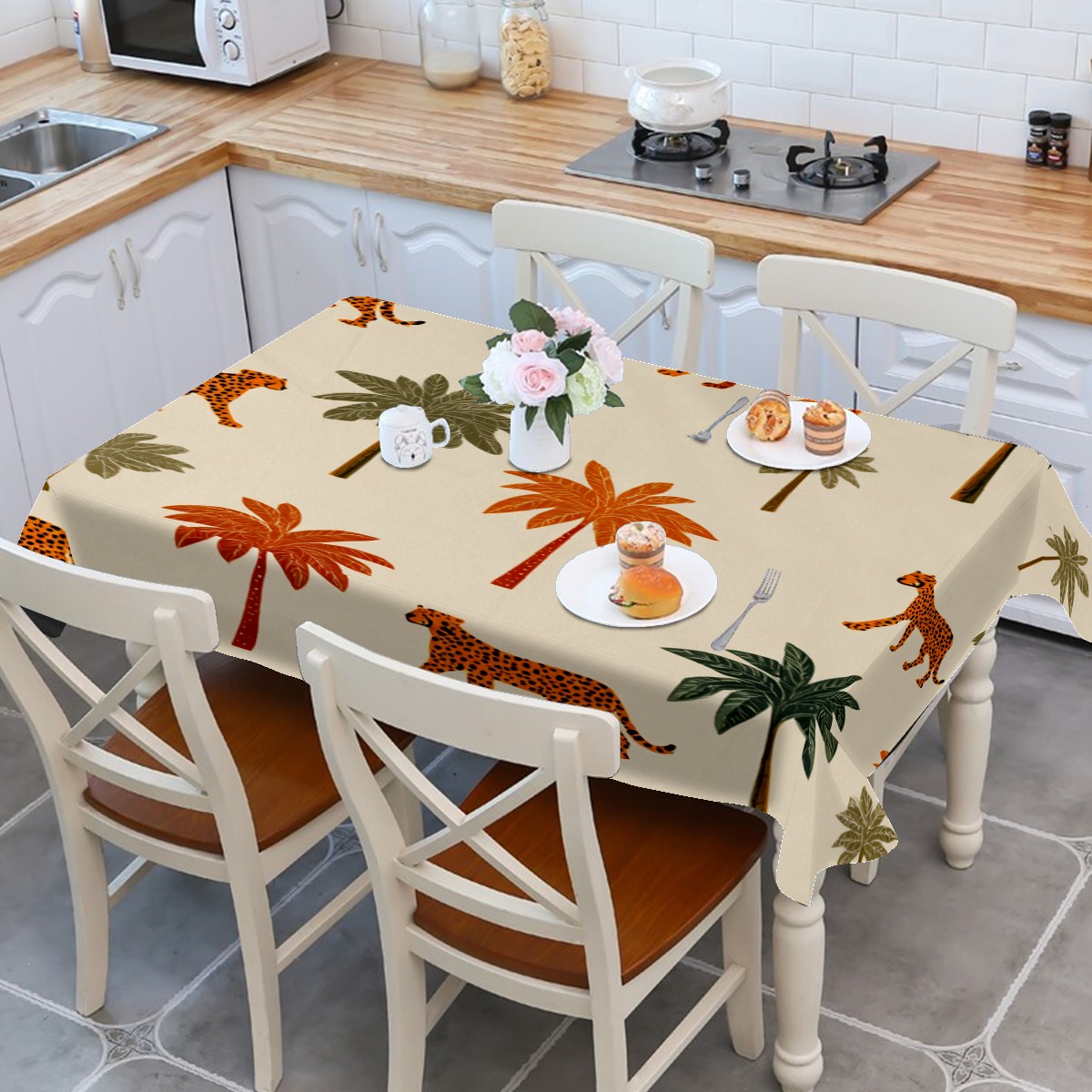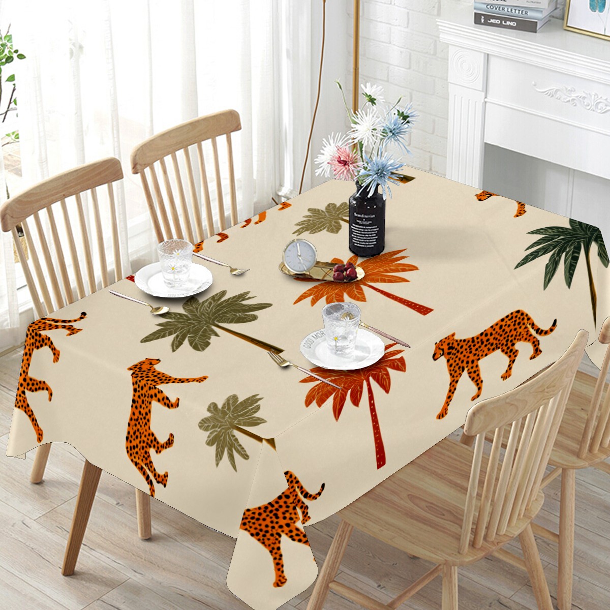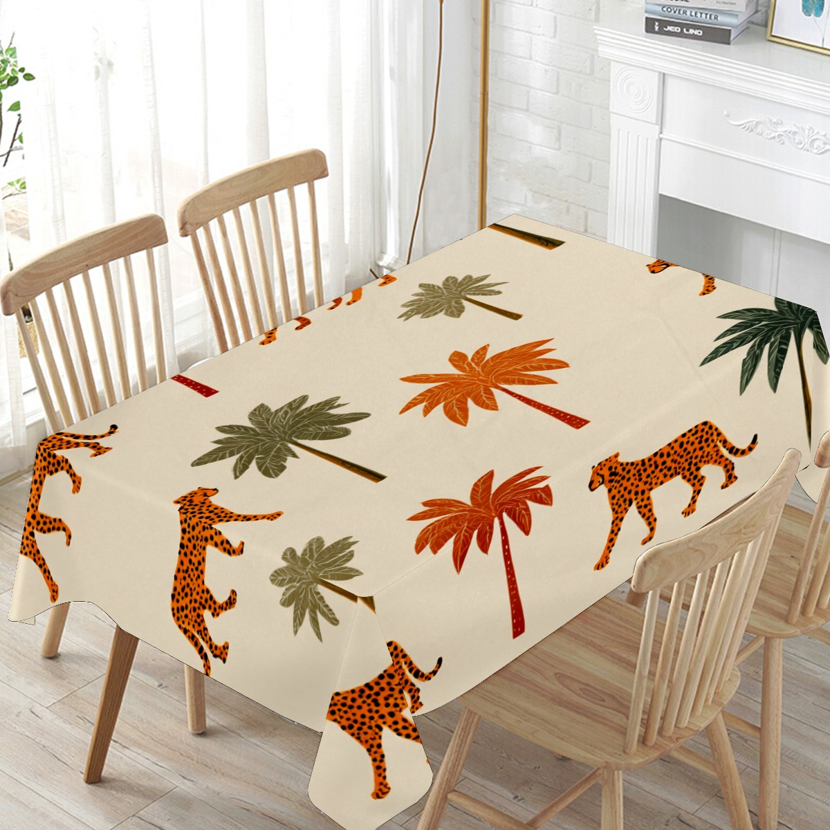 Tropical Palm Leopard Brown Tablecloth - Polyester Wrinkle-Resistant Table Cover | Durable, Stain-Resistant Tablecloth for Dining Room, Outdoor Patio, Picnic & Party