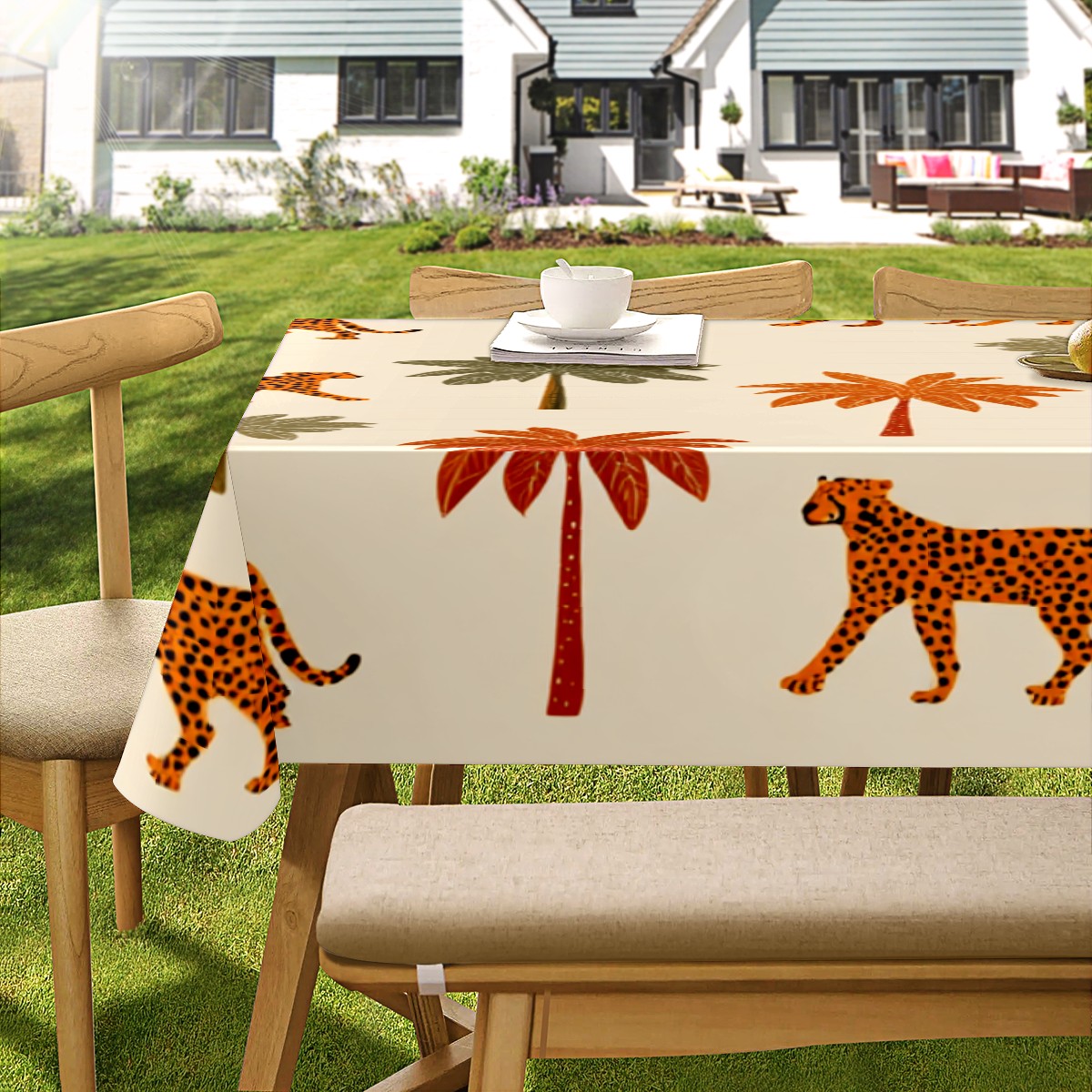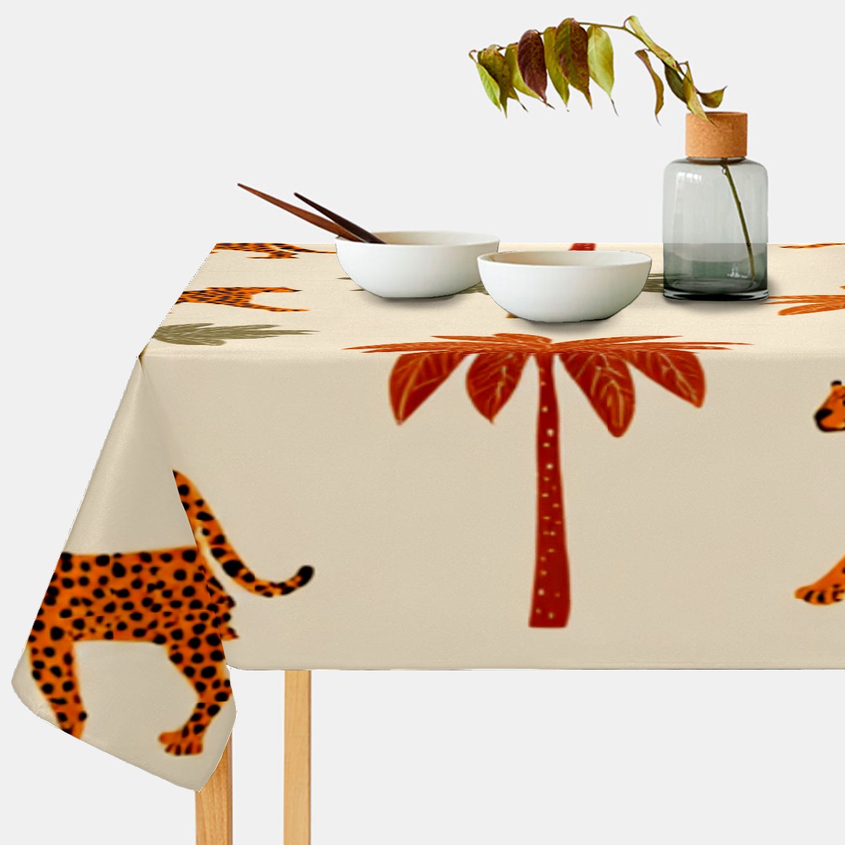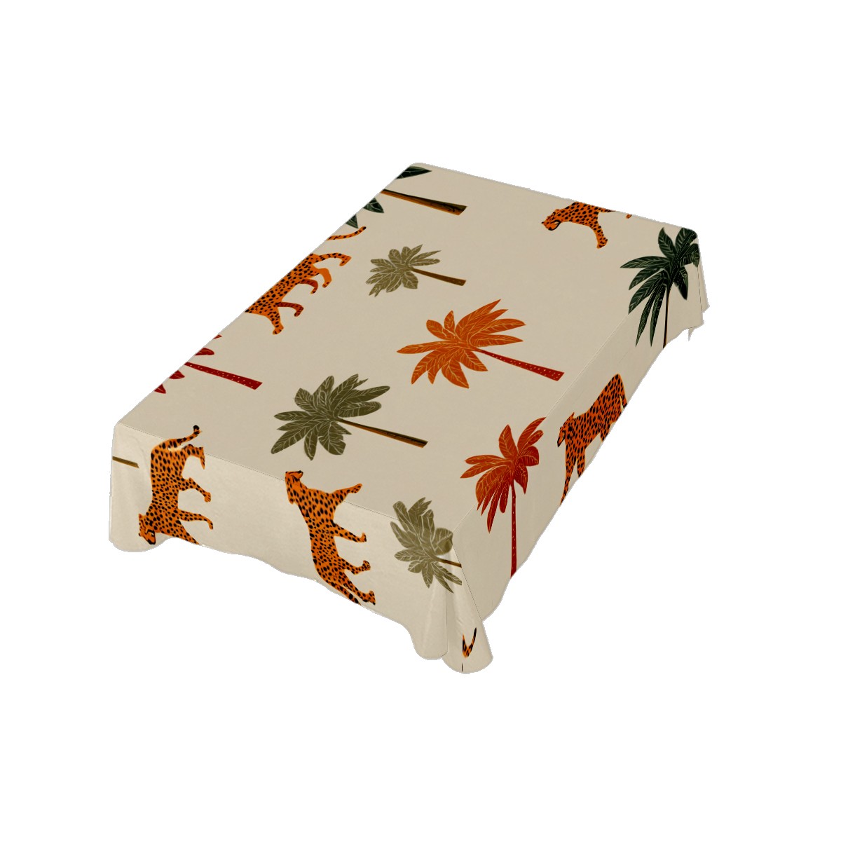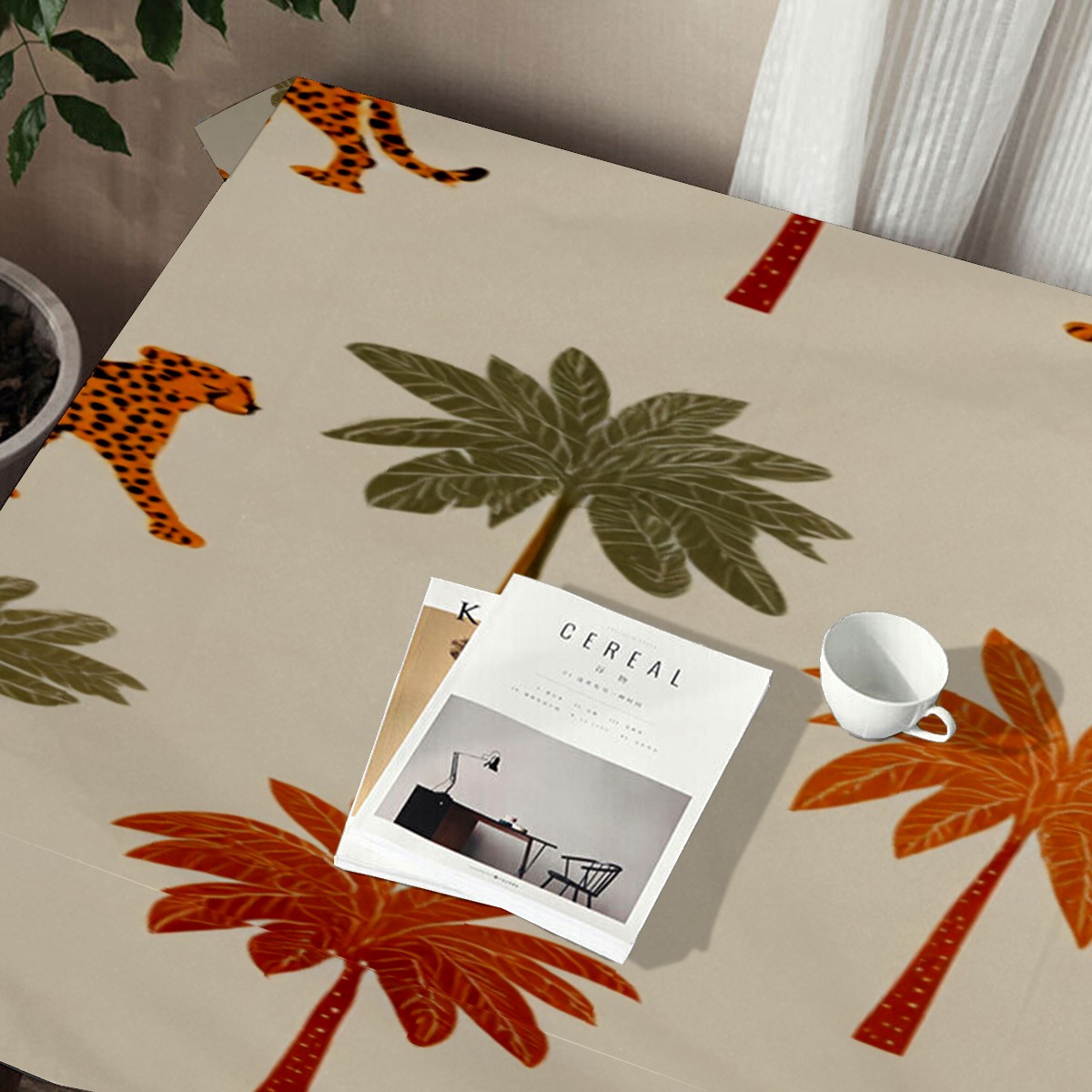 Tropical Palm Leopard Brown Tablecloth - Polyester Wrinkle-Resistant Table Cover | Durable, Stain-Resistant Tablecloth for Dining Room, Outdoor Patio, Picnic & Party
