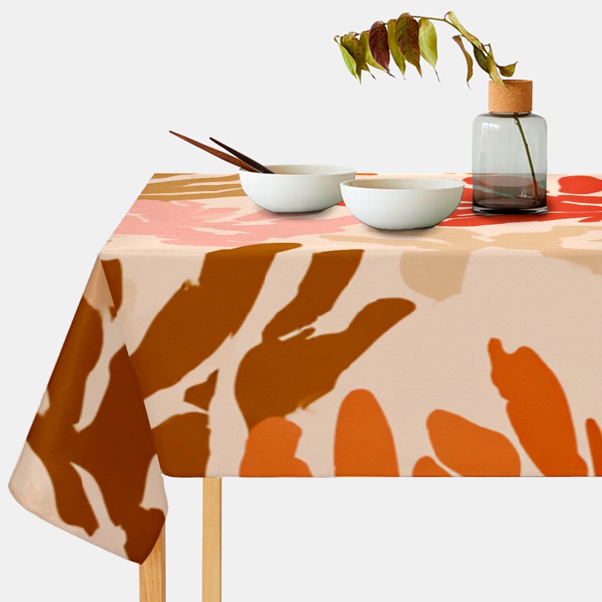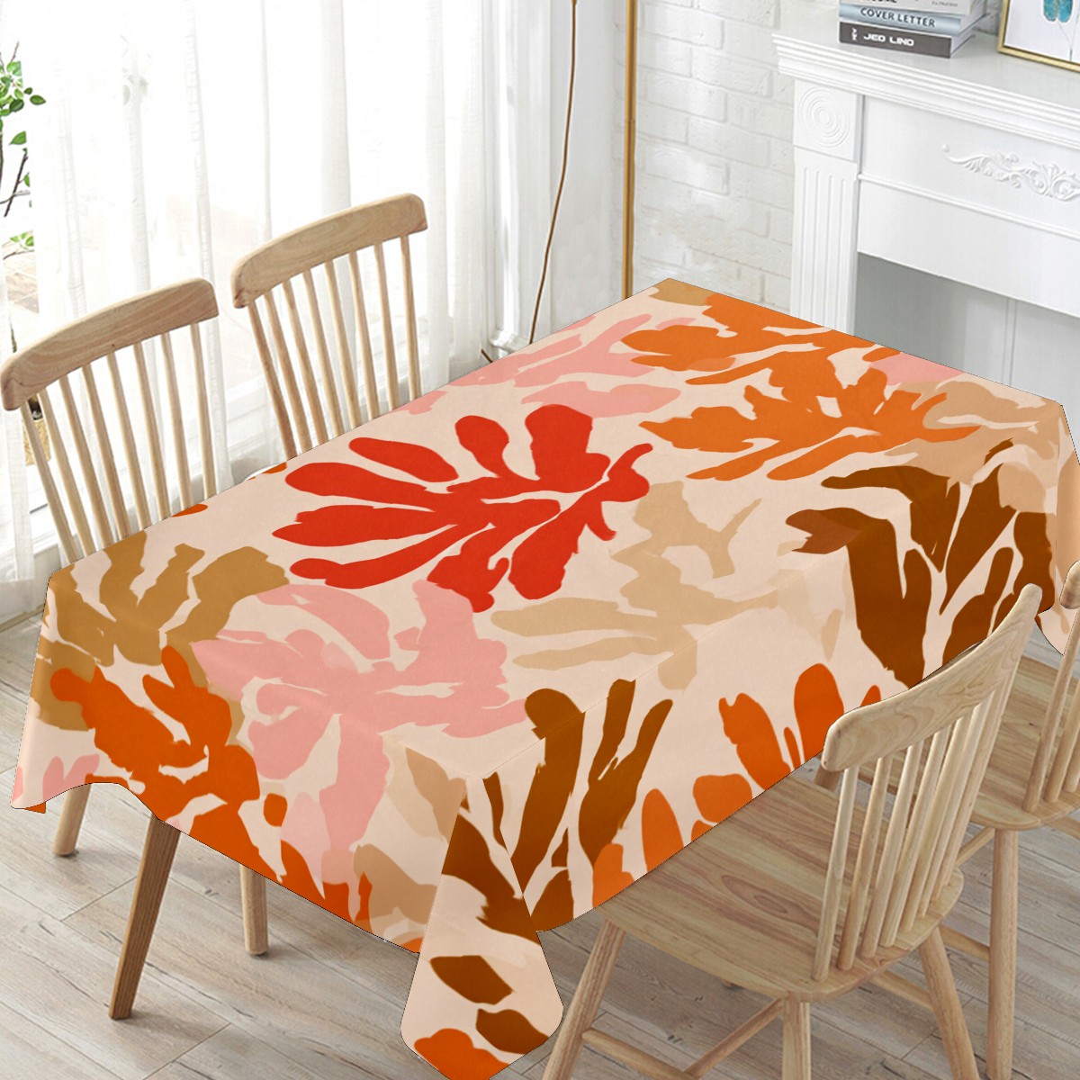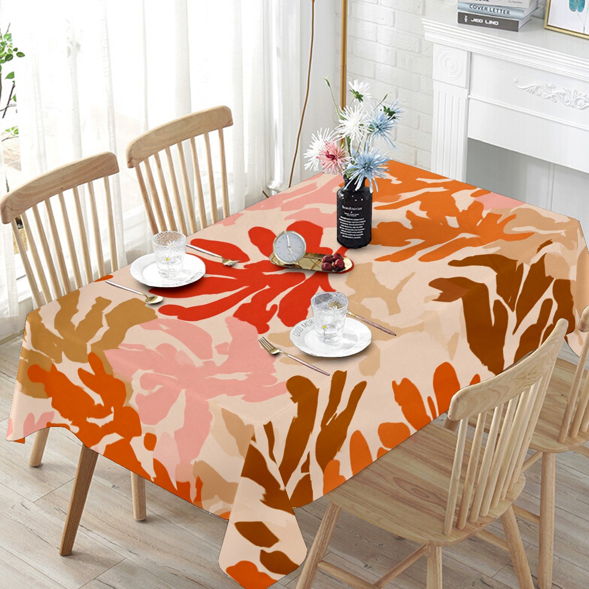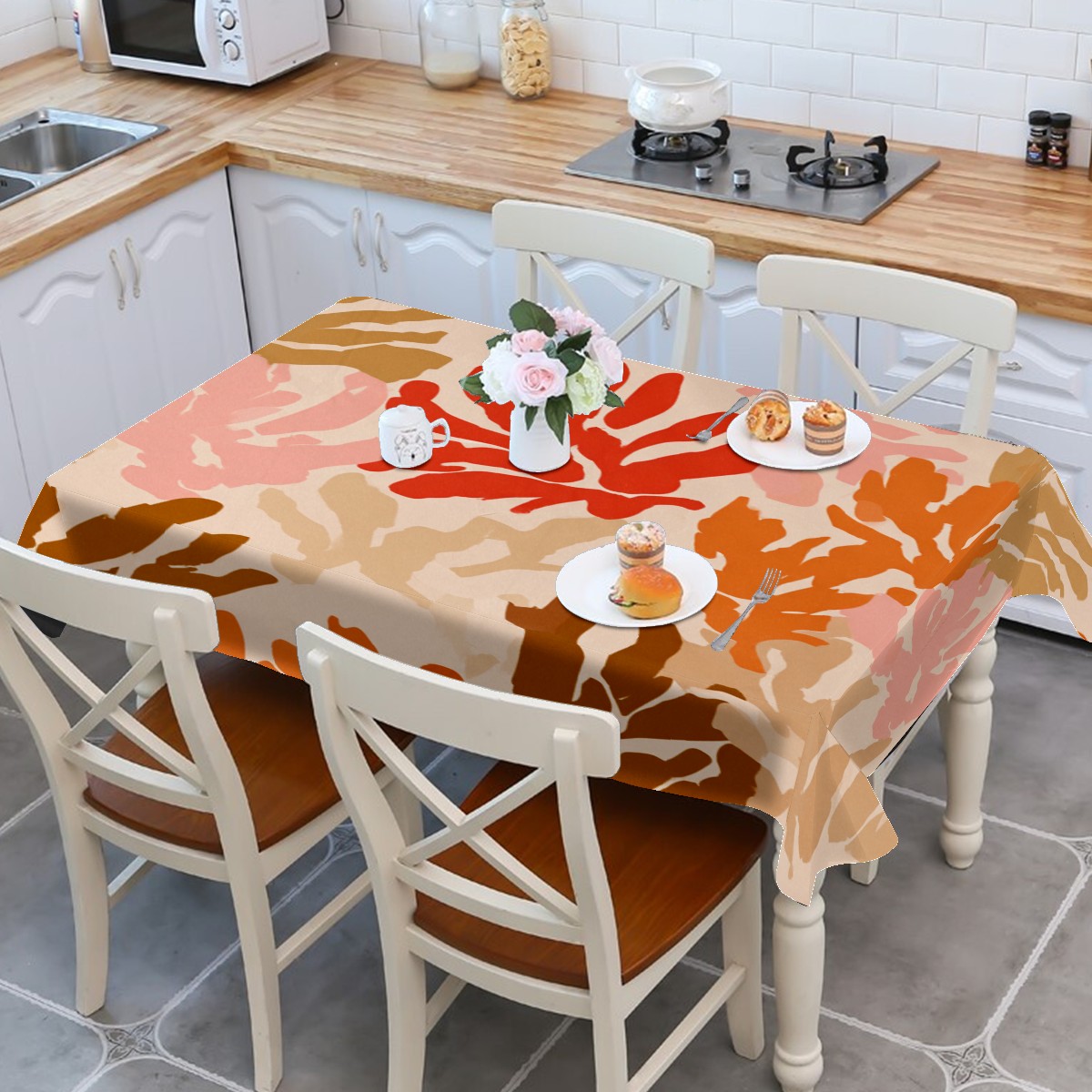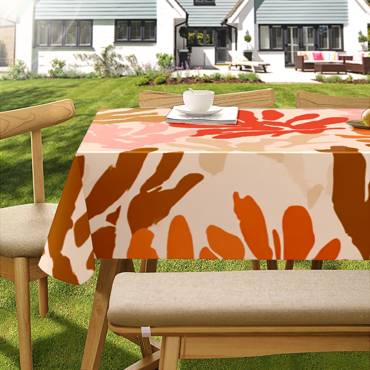 Gentle Leaf Pattern Orange Tablecloth - Polyester Wrinkle-Resistant Table Cover | Durable, Stain-Resistant Tablecloth for Dining Room, Outdoor Patio, Picnic & Party