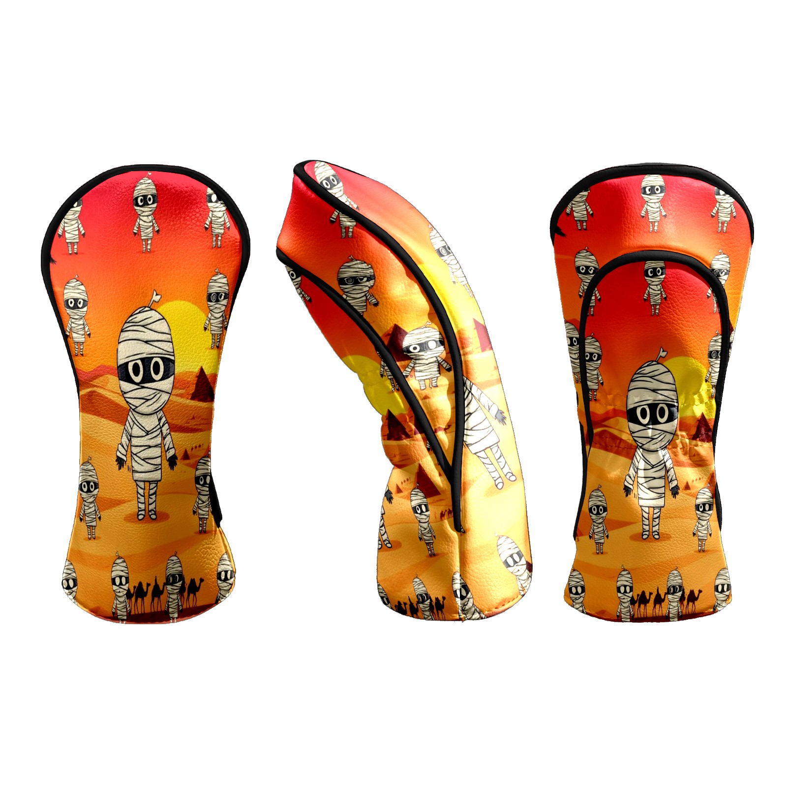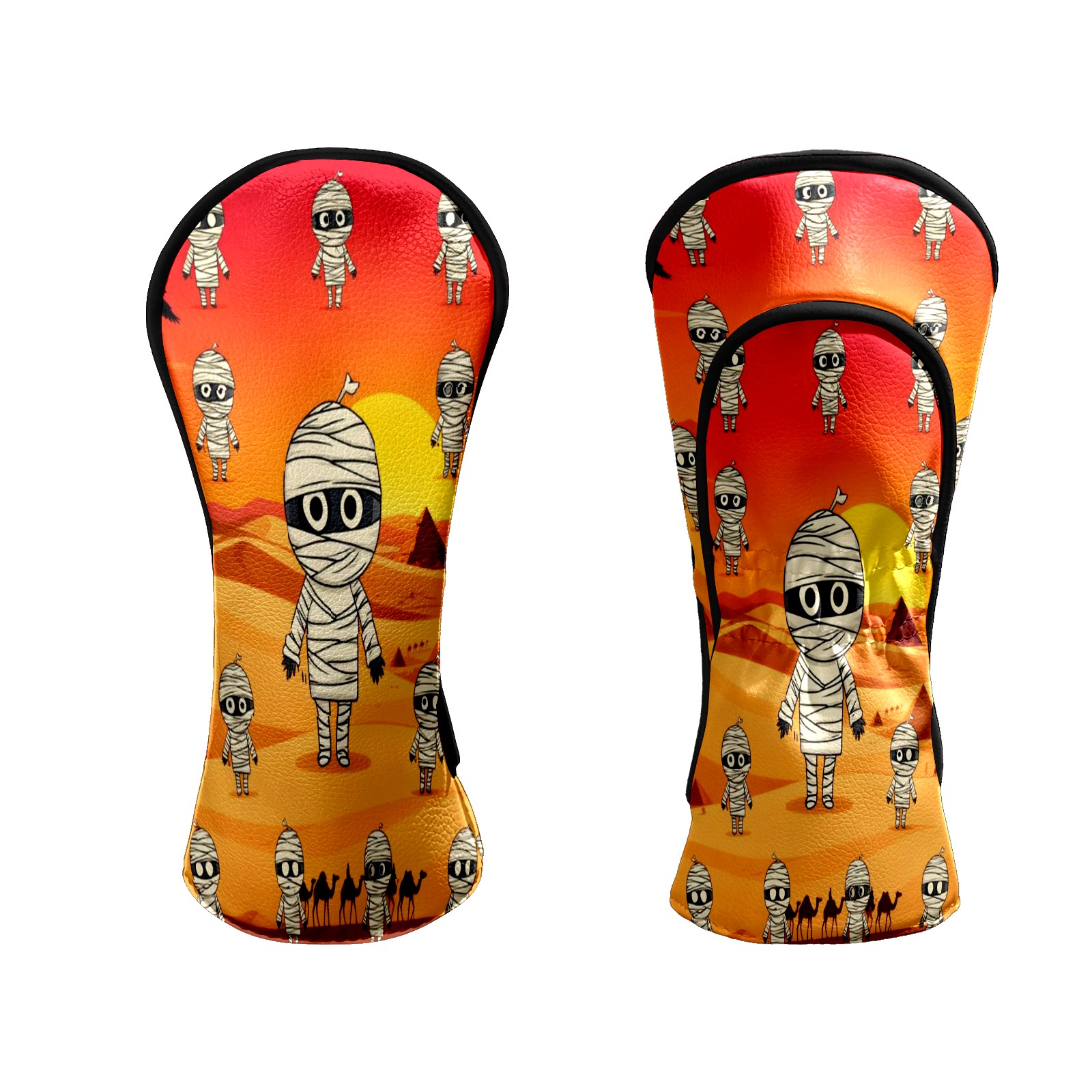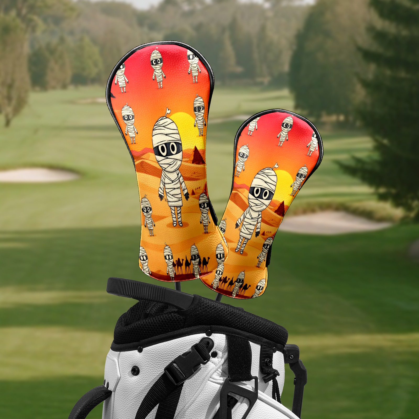 Golf Club Head Covers - Funny Mummy Orange Driver Fairway Headcover, Premium PU Leather, Protective Velvet Lining, Secure Elastic Band, Fits All Golf Brands, Perfect Gift for Golfers Men Women
