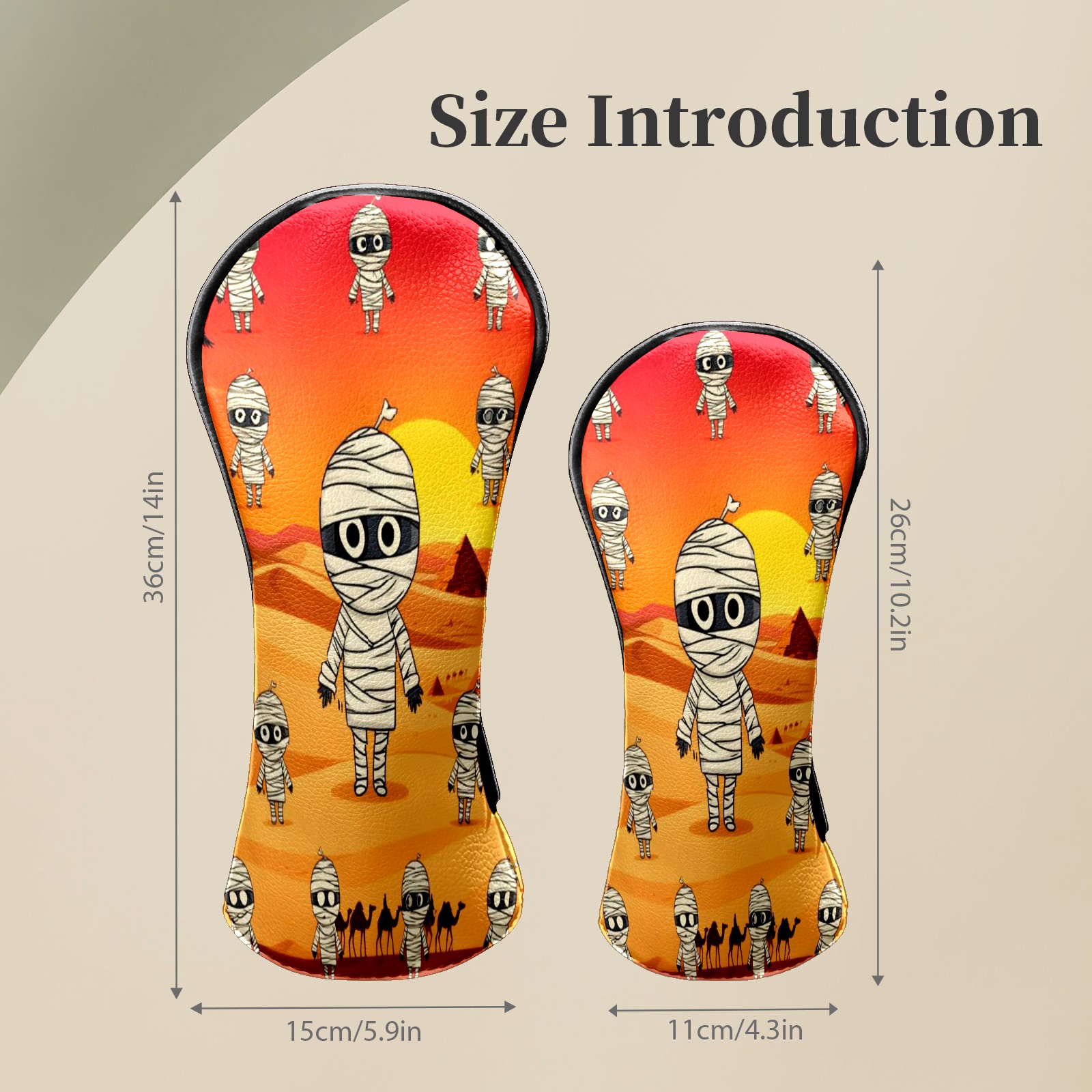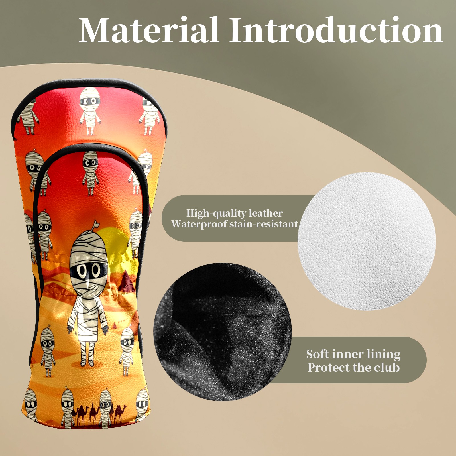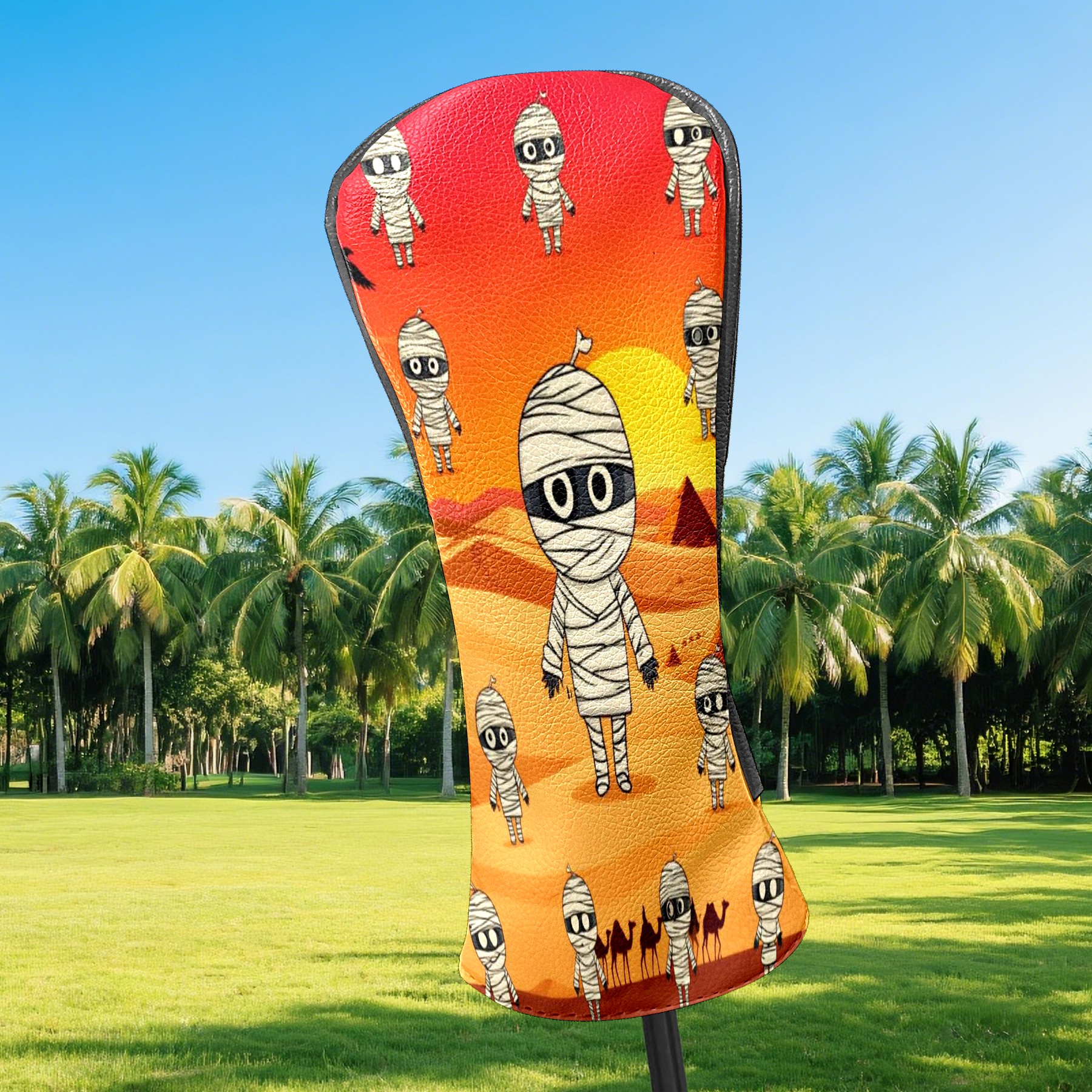 Golf Club Head Covers - Funny Mummy Orange Driver Fairway Headcover, Premium PU Leather, Protective Velvet Lining, Secure Elastic Band, Fits All Golf Brands, Perfect Gift for Golfers Men Women